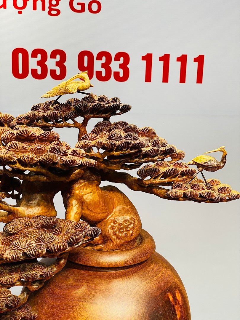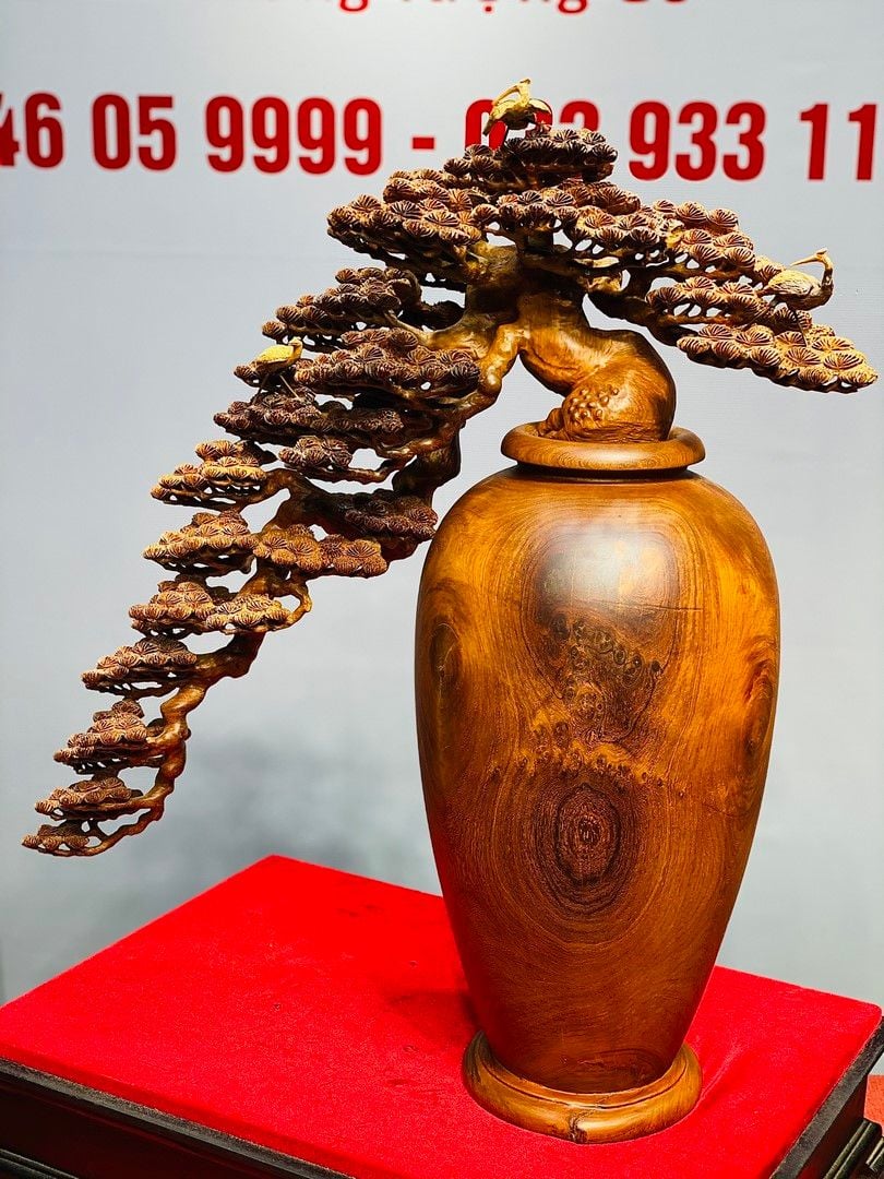 Bình tùng hạc gỗ hương.