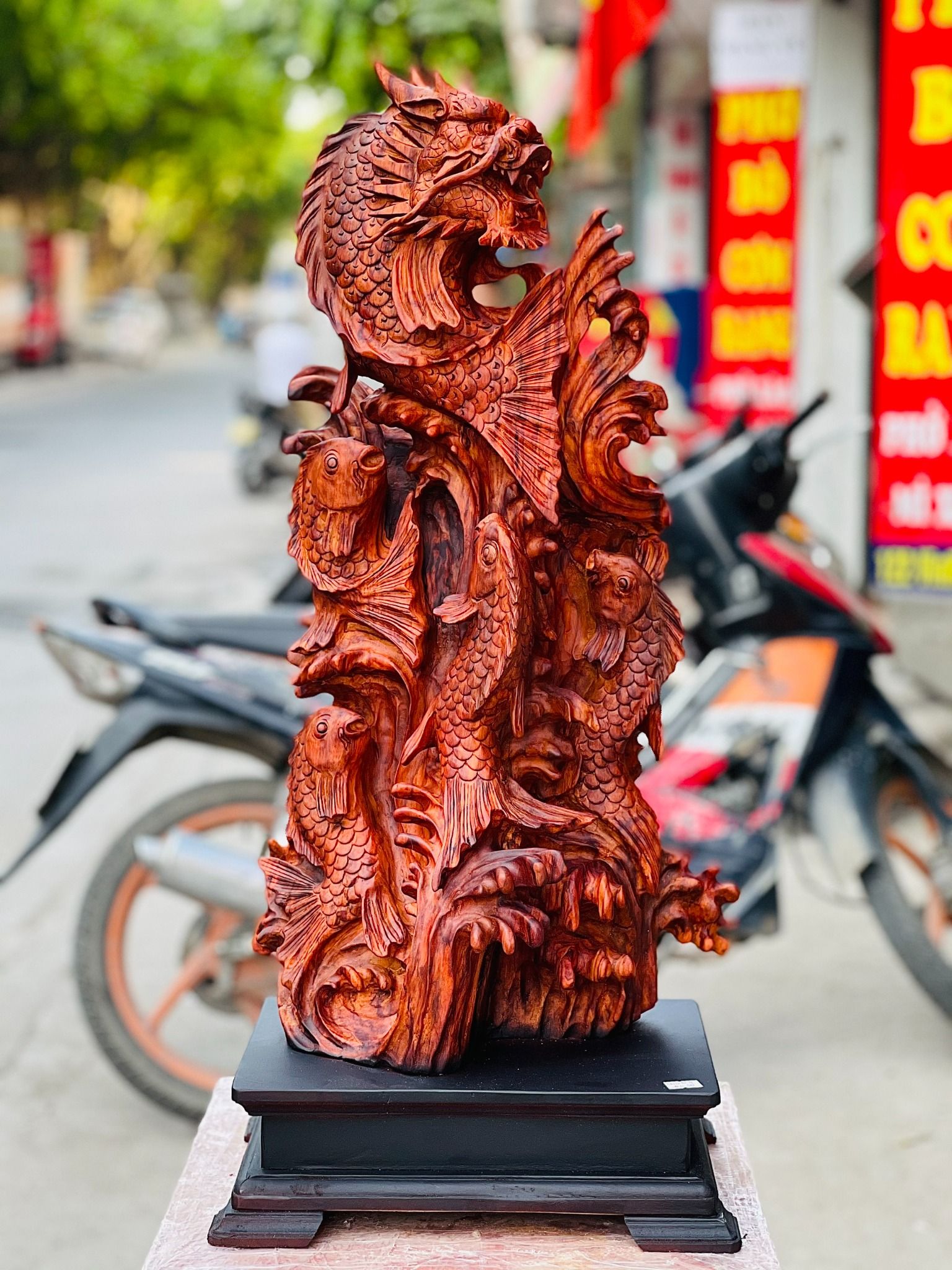 Bởi vậy, trưng tượng Cá Chép hóa Rồng trong nhà đem đến công việc hanh thông, học hành thi cử thuận lợi, sức khỏe dồi dào, may mắn và tài lộc trong kinh doanh và buôn bán.
