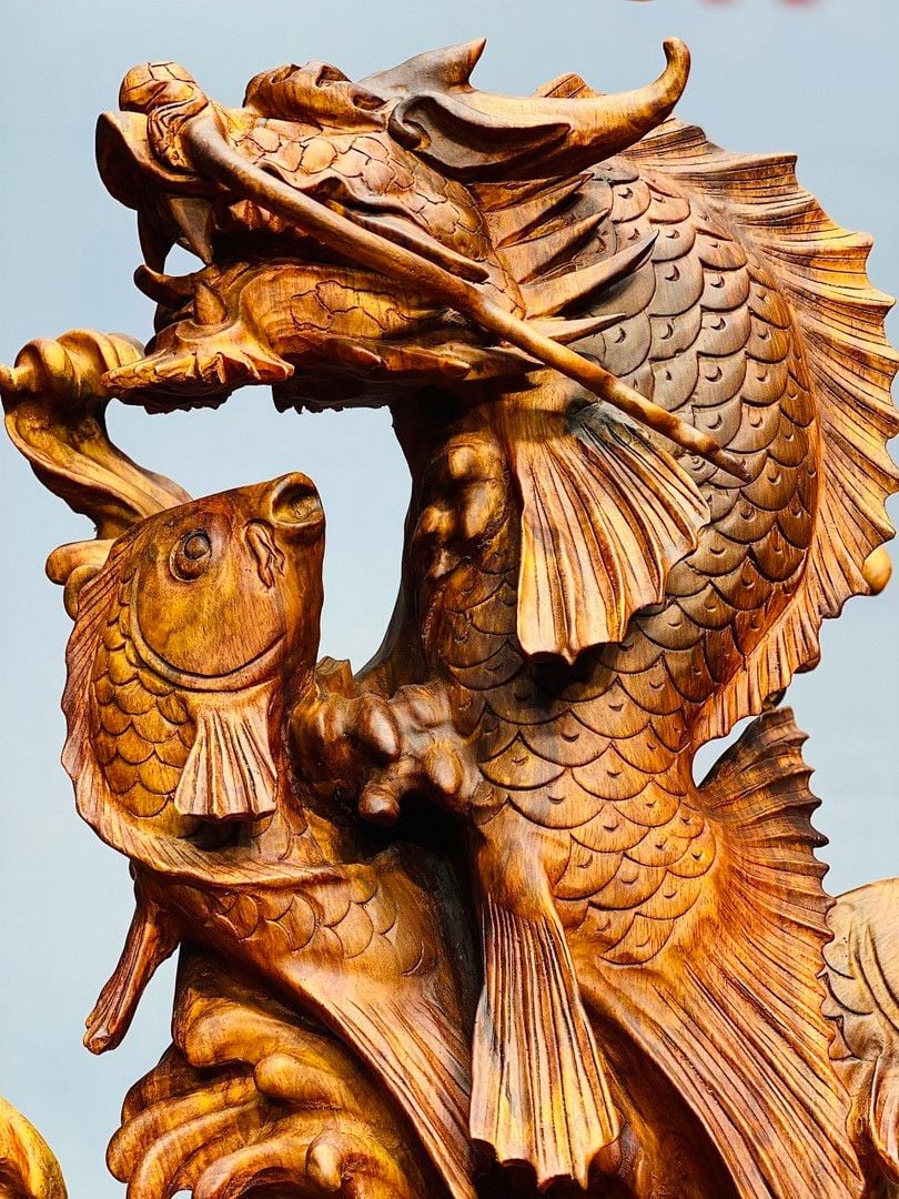 Cá Chép Hóa Rồng Gỗ Sưa