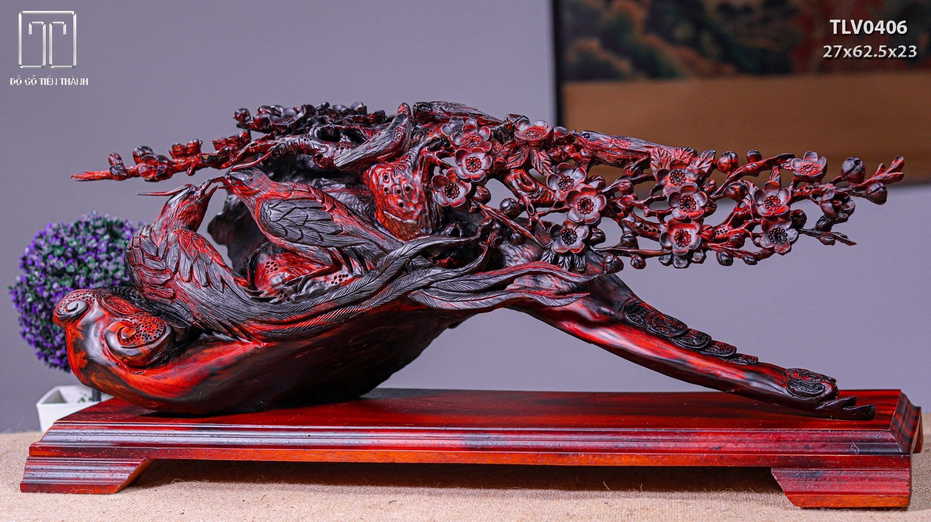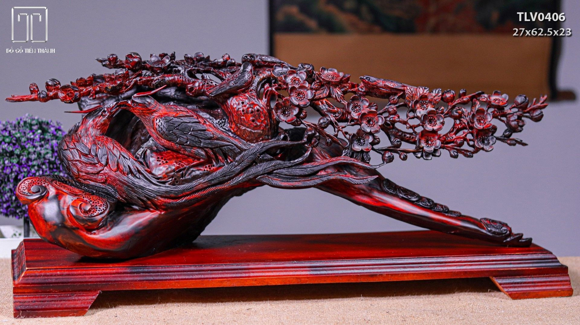 Cầu Gậy Như Ý Đôi Chim Trĩ Hoa Mai Gỗ Trắc