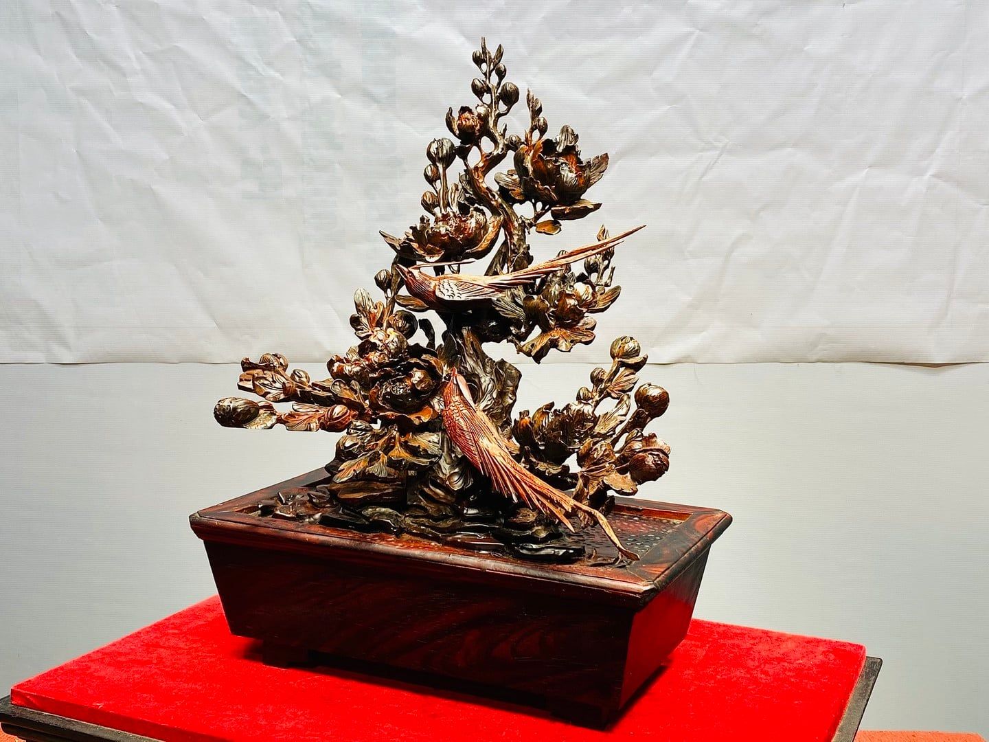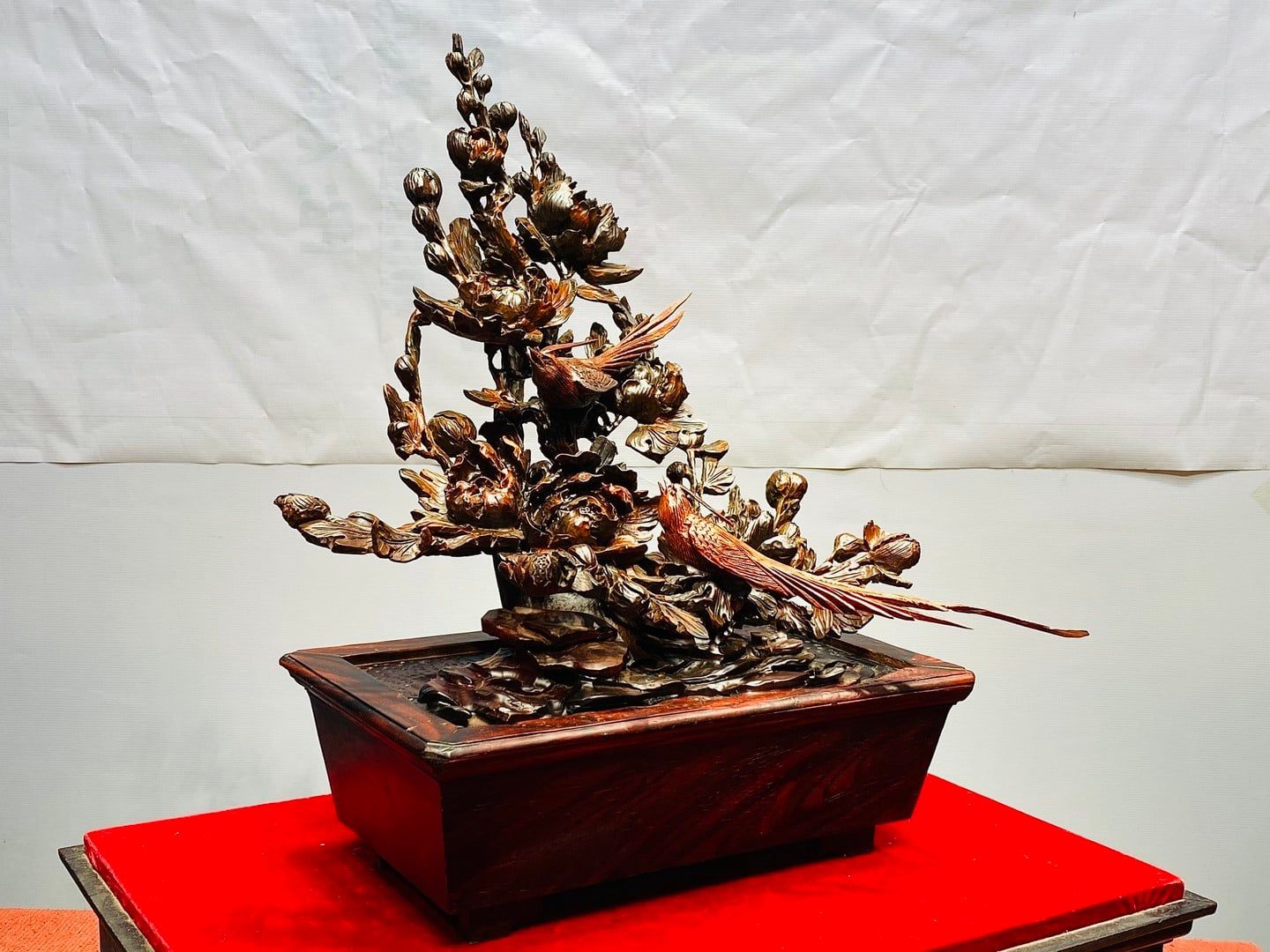 Chậu Hoa Phù Dung Chim Trĩ Gỗ Trắc