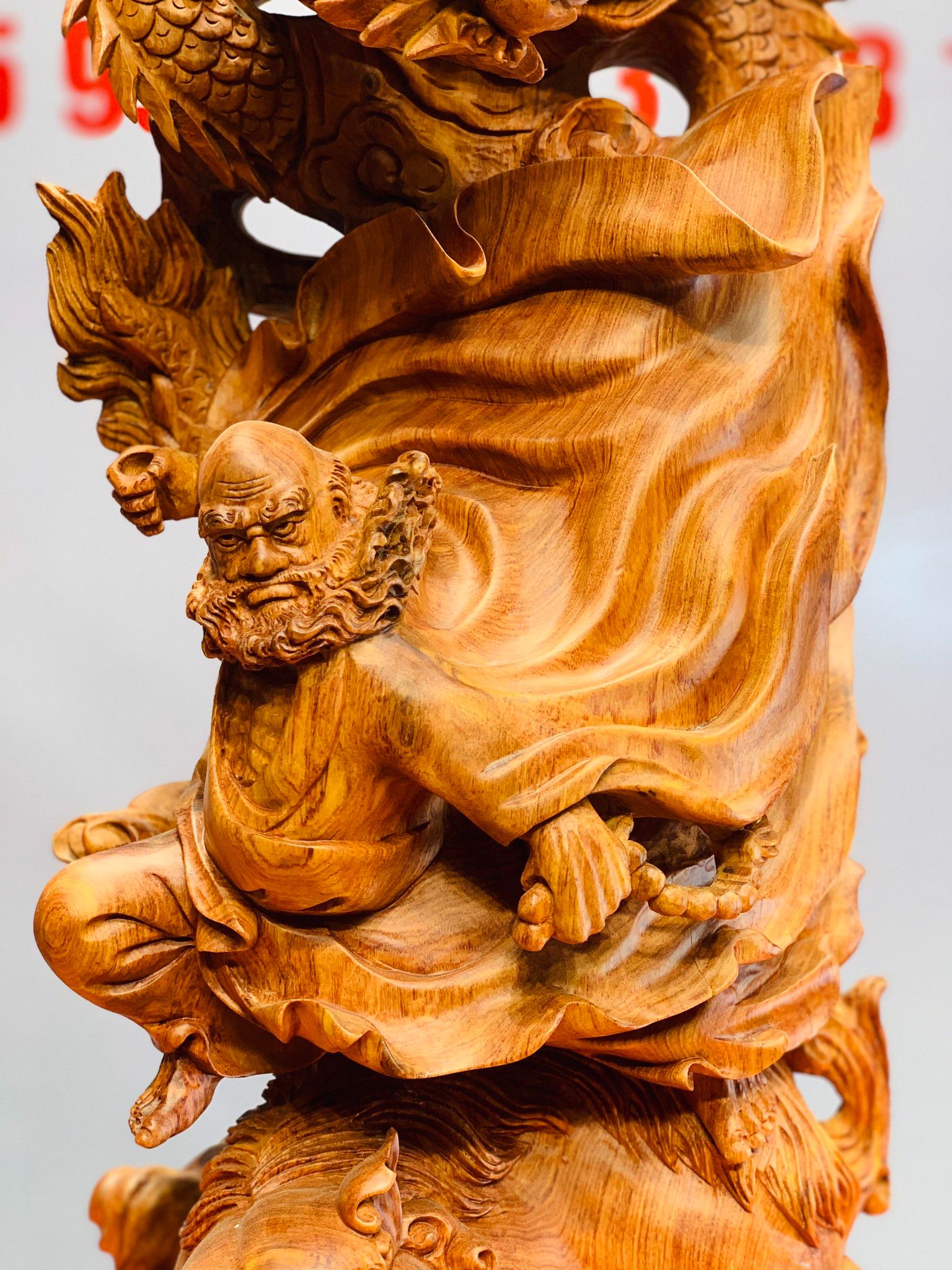 Đạt Ma cưỡi nghê rồng gỗ hương đá