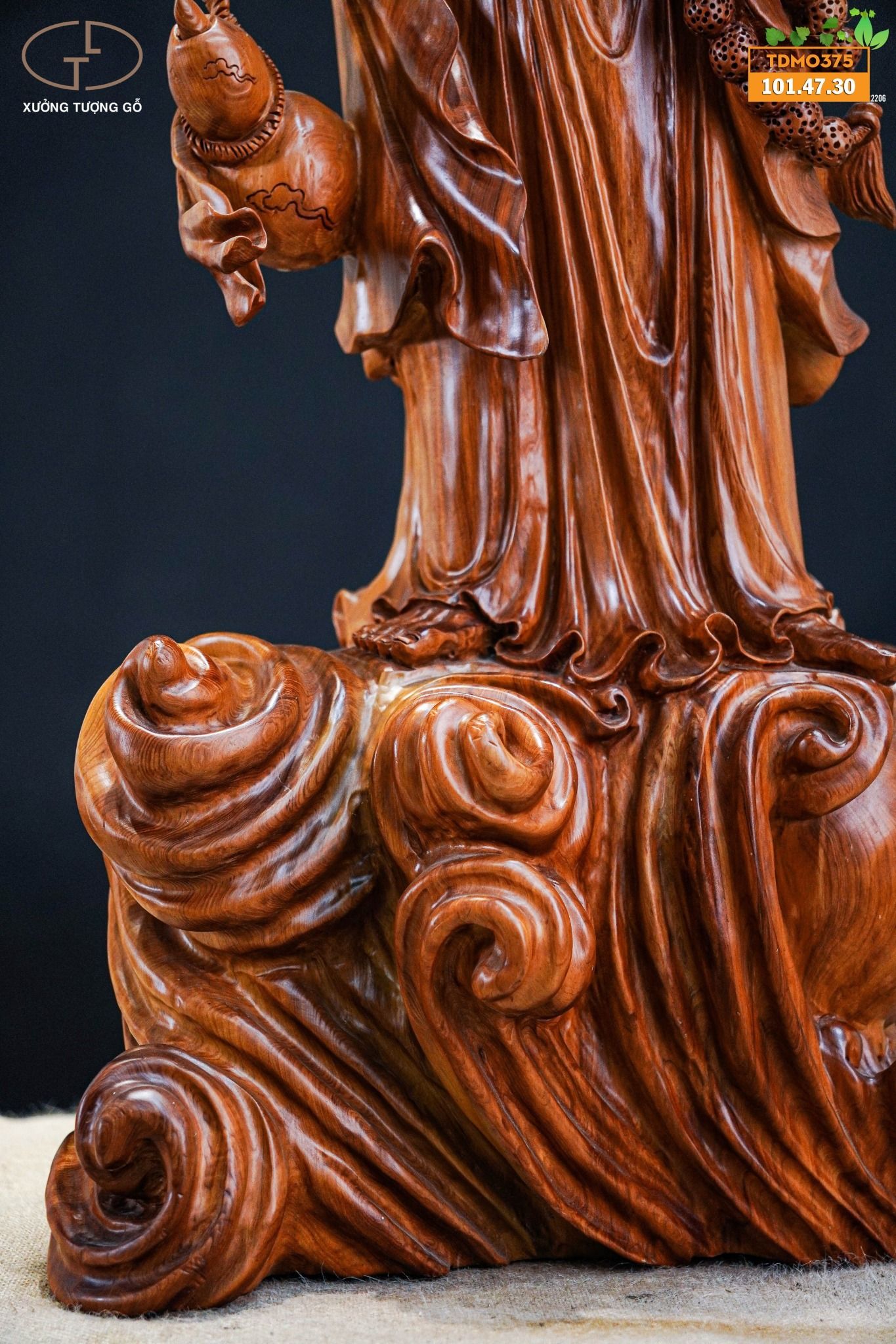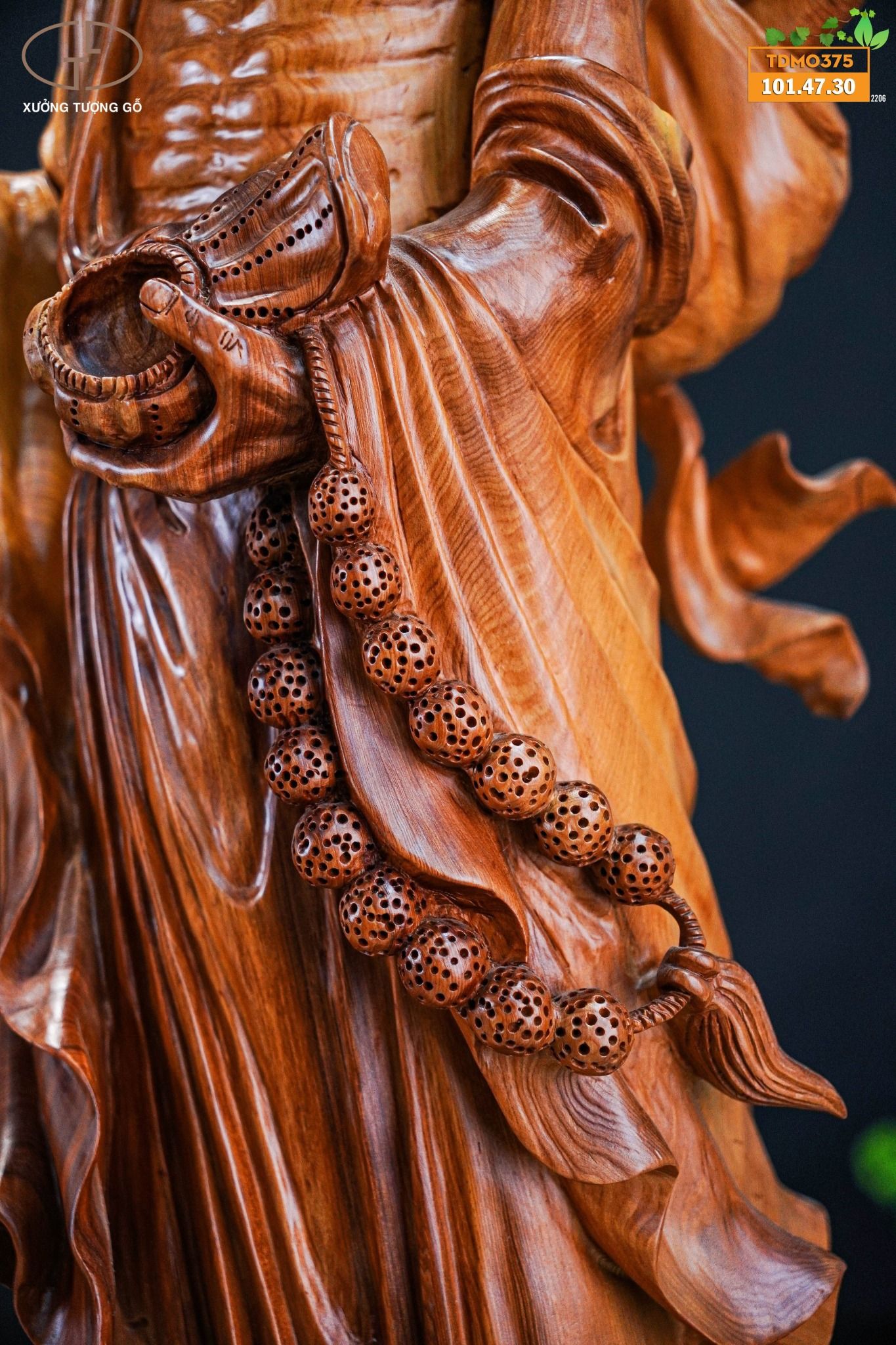 Mẫu tượng gỗ đục tay sắc xảo, hàng kĩ, chạm khắc tinh tế.