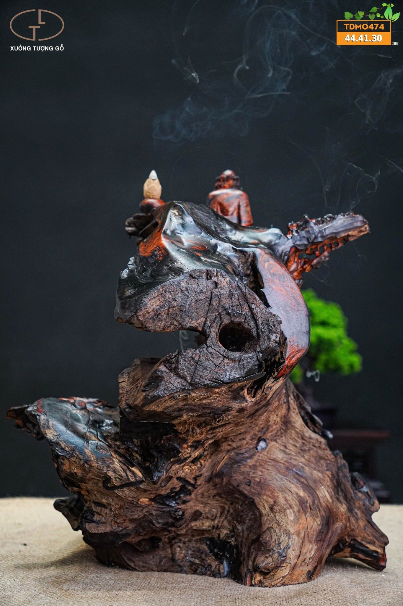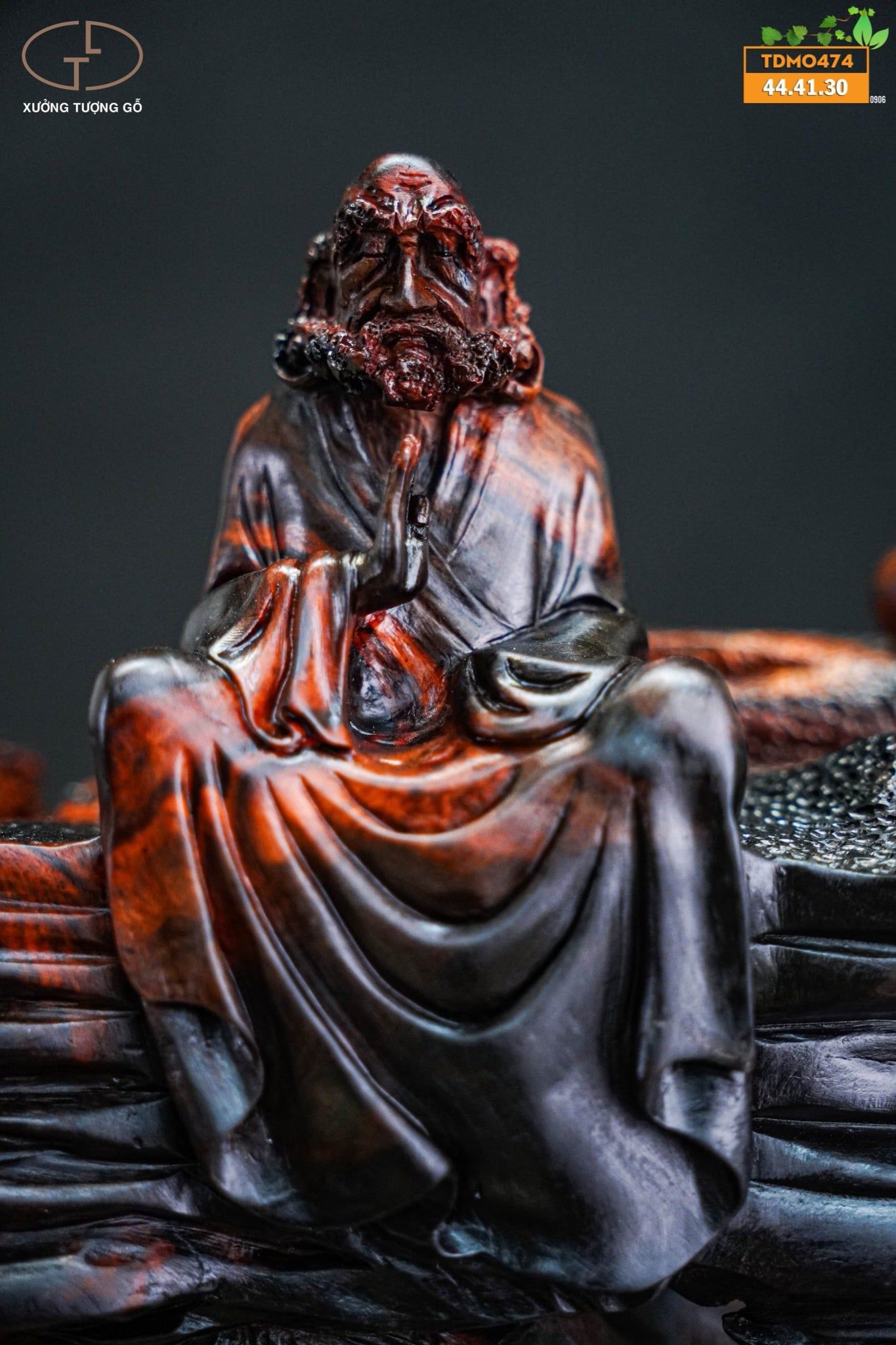Tượng được đục dựa trên hình thế tự nhiên của khối gỗ lũa. Thông thường là các loại lũa hương, lũa trắc, lũa ngọc am. Tác phẩm mô tả lại hình ảnh Đạt Ma tọa thiền trong núi, phía dưới tĩnh lặng, phía trên là vách núi, có chỗ đặt nụ trầm để khói trầm tỏa xuống, tạo cảm giác vừa phiêu linh vừa ma mị.