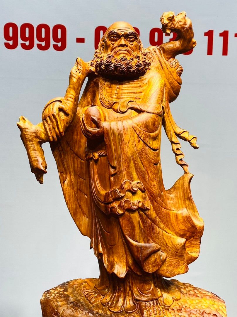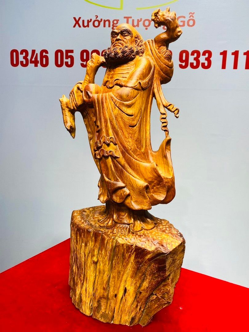 Đạt Ma Vác Gậy Tay Nải Gỗ Hương