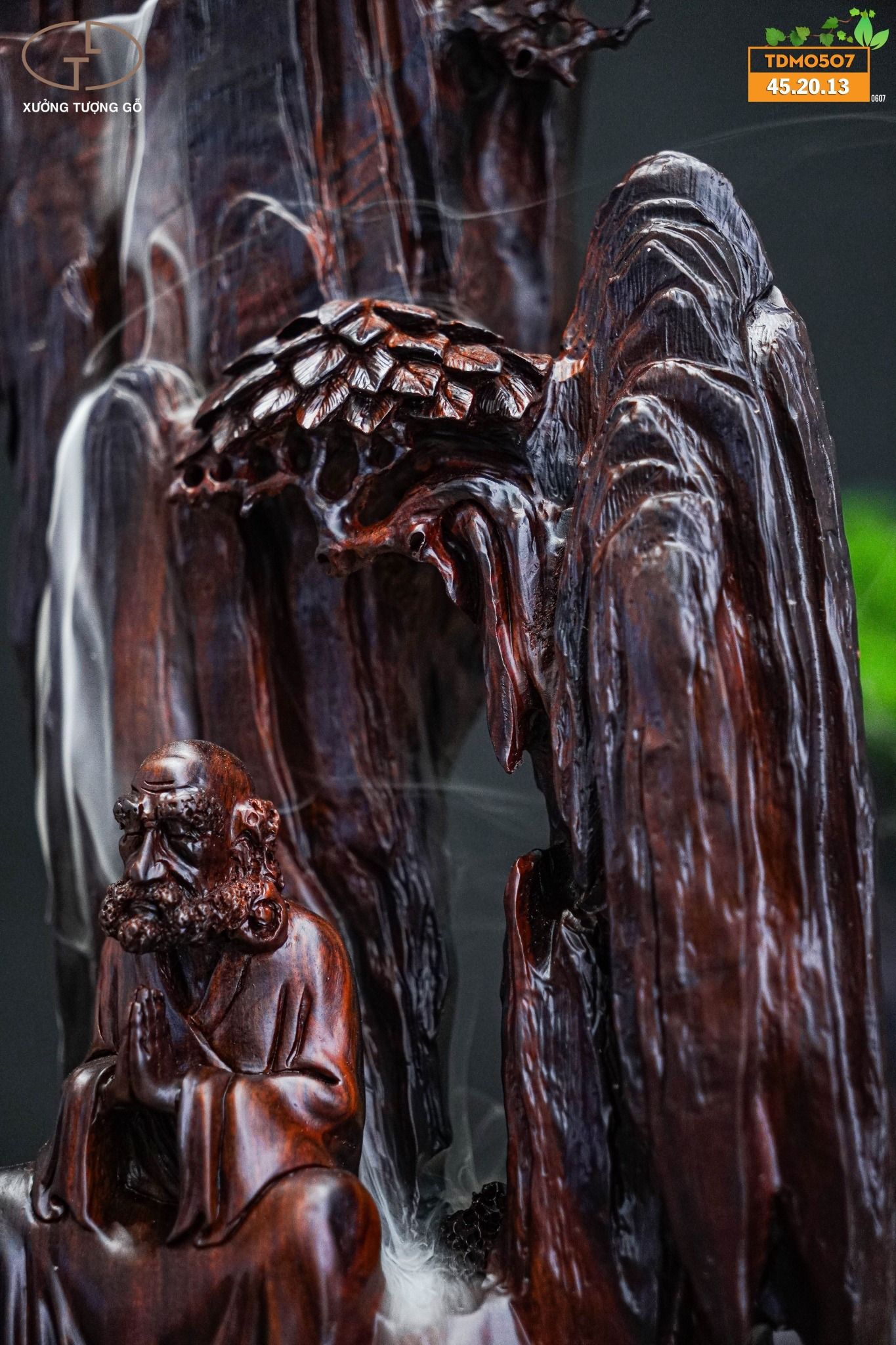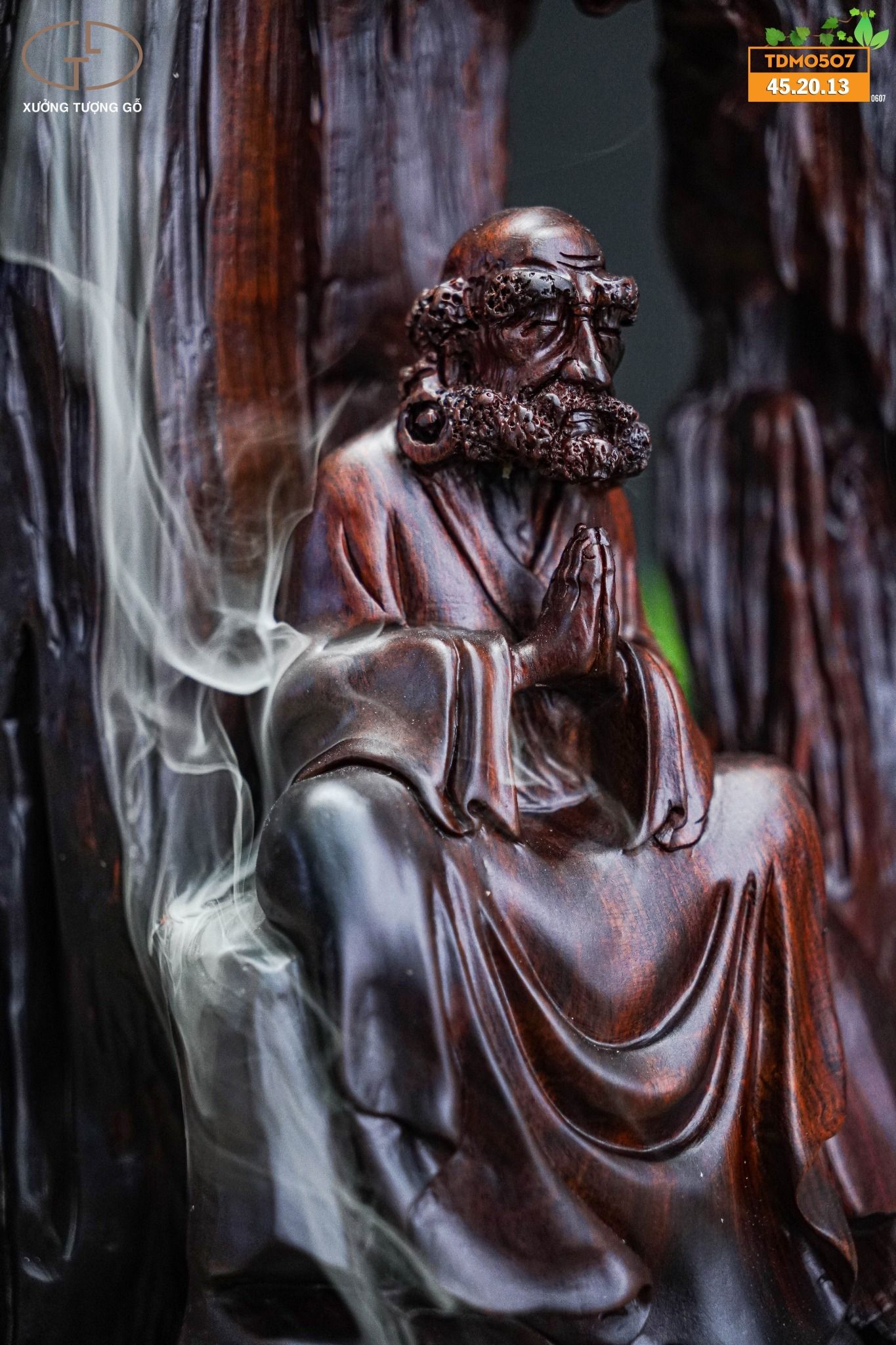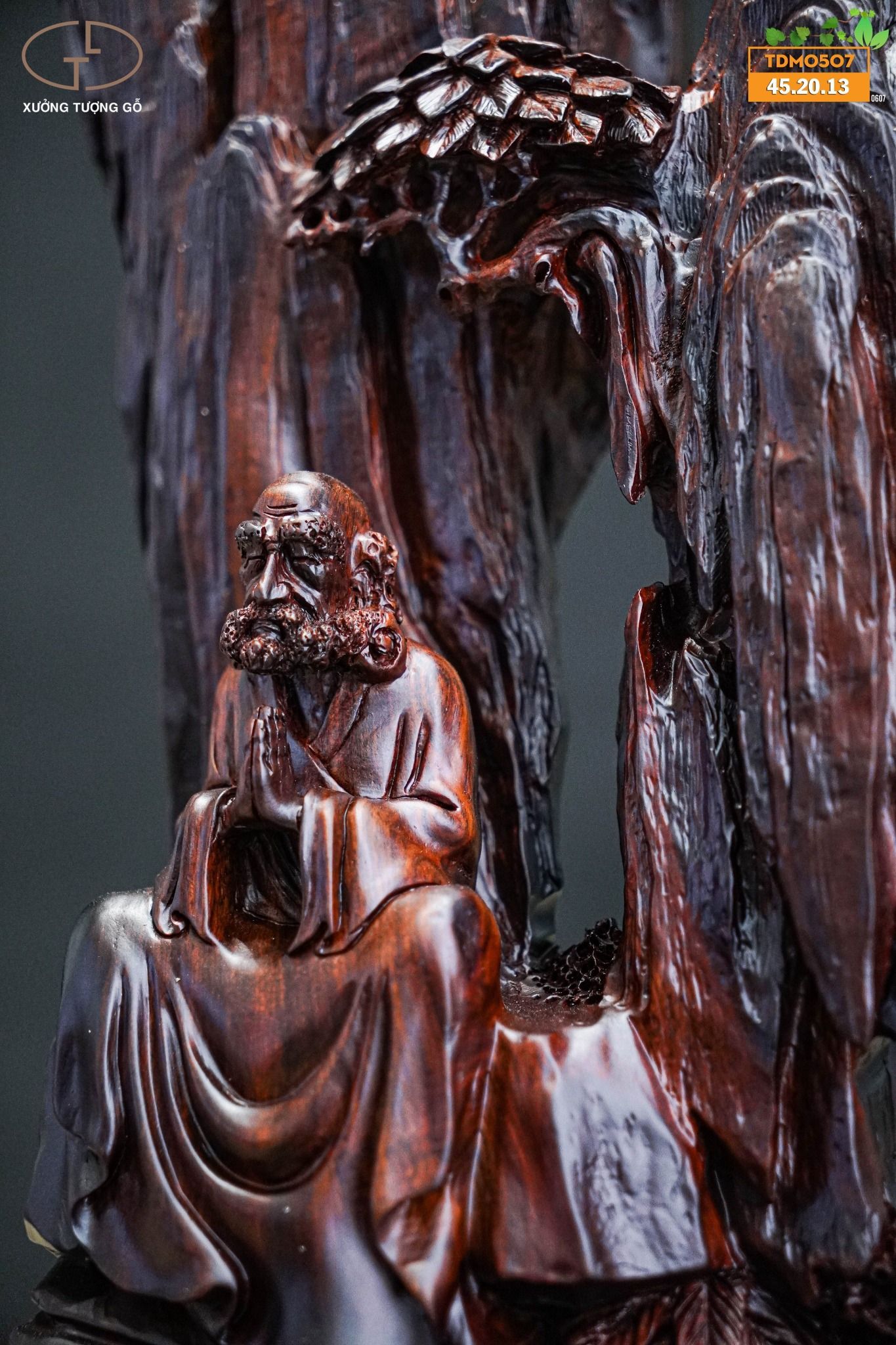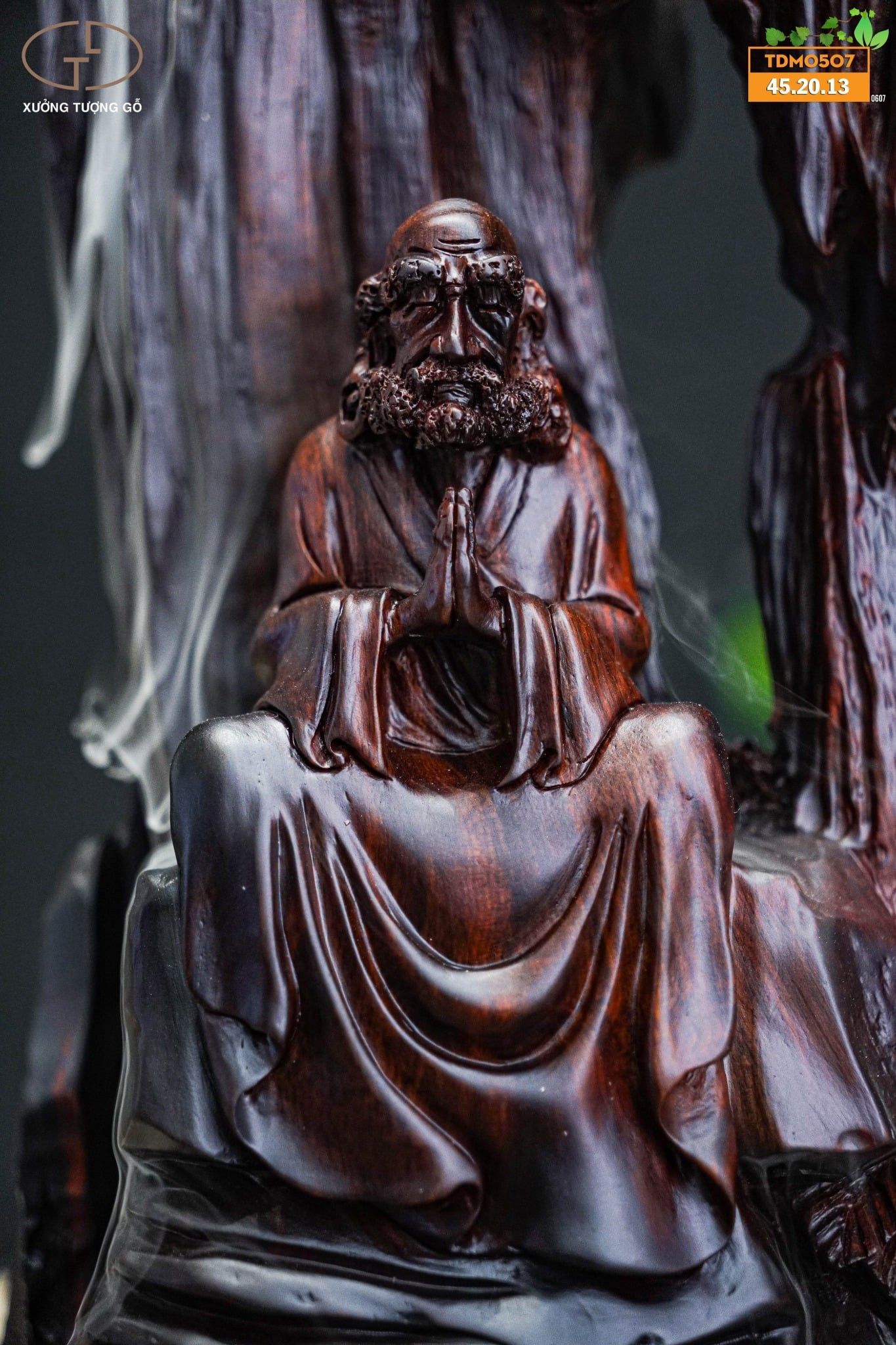Tượng Đạt Ma Sư Tổ ngồi thiền là mẫu tượng khắc họa hình ảnh của Sư Tổ Đạt Ma với vẻ mặt tĩnh lặng, nhắm mắt, bộ râu rậm đang ở tư thế ngồi thiền, mang nhiều ý nghĩa trong việc trấn hạch, xua đuổi tà ma ngoại đạo và vận khí không tốt, giúp cho cuộc sống luôn được thuận lợi và gặp nhiều điều tốt đẹp, tạo cho không gian cảm giác thanh tịnh khi trưng bày, cũng như đem đến nguồn năng lượng cân bằng cho gia chủ.Một số bức tượng Đạt Ma Sư tổ ngồi thiền còn có những chi tiết tán cây, ngôi chùa, cũng biểu trưng cho sự giác ngộ từ trong tâm trí, giúp thanh thản, thoải mái từ bên trong, cũng thể hiện sự vững chãi, "bất biến trong dòng đời vạn biến" luôn luôn hàm chứa sự ổn định mạnh mẽ và trường tồn. Nên phù hợp đặt cả phòng khách và phòng làm việc cho người kinh doanh hay chính trị. Với bức tượng Đạt Ma Tử Đàn, có thác trầm chảy, đem đến cho gia chủ cảm giác tĩnh lặng, bình an và giác ngộ, phù hợp để thưởng trà và đặt trong không gian yên tĩnh.