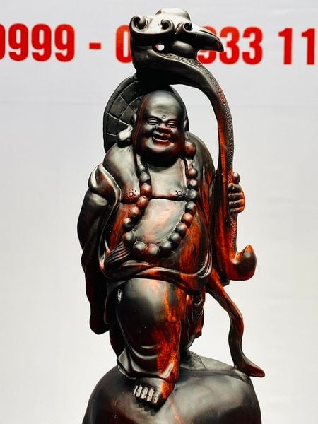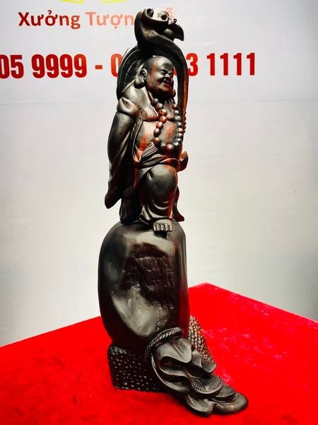 Di Lạc Cầm Gậy Như Ý Đứng Bao Tiền Gỗ Trắc