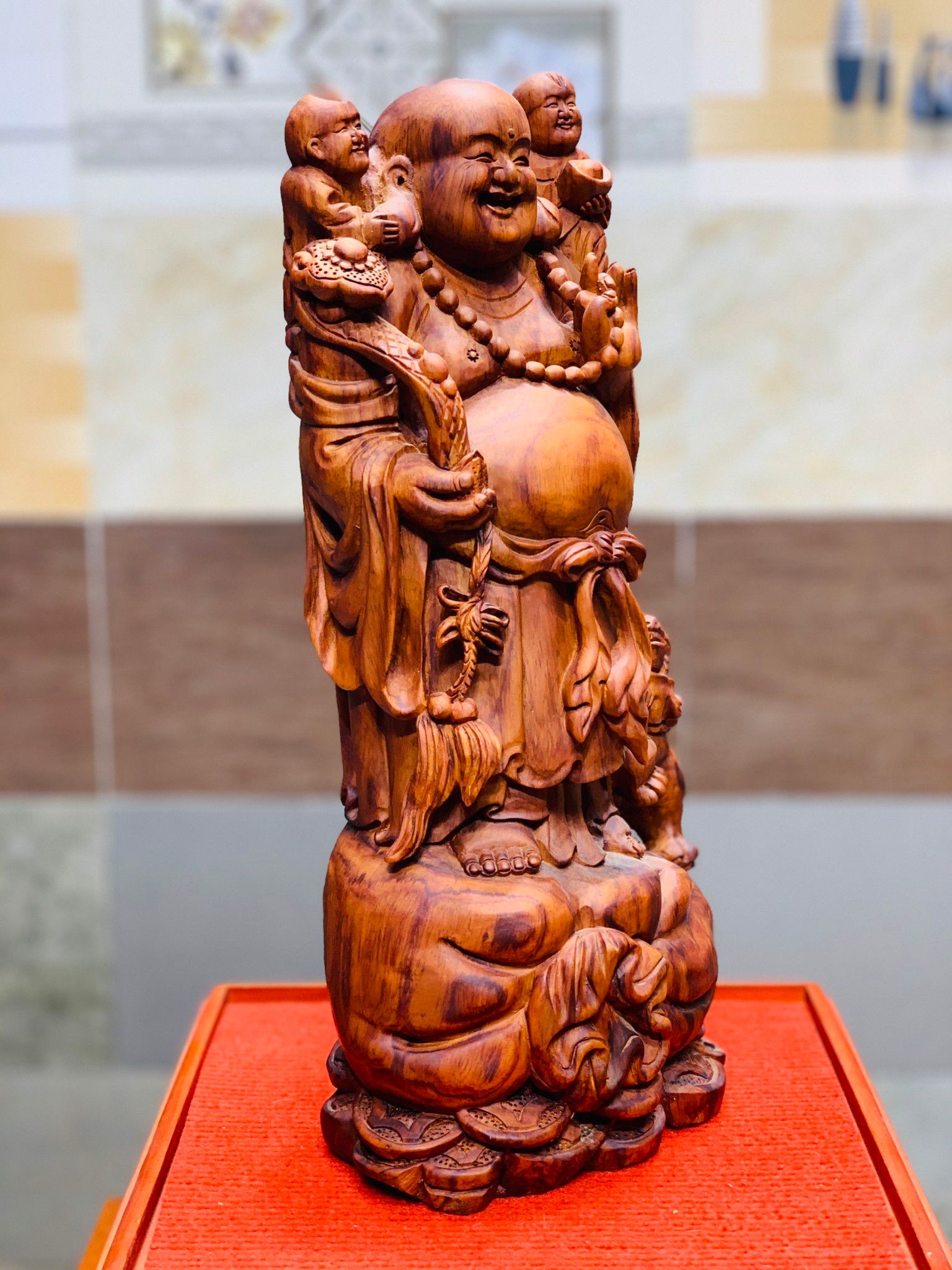 Tượng di lặc ngũ phúc là bức tượng gồm di lặc và 5 tiểu đồng đang đùa nghịch cùng ngài ý nghĩa đầu tiên ta thấy là con đàn cháu đống,luôn ngập tràn tiếng cười . Có nếp có tẻ gia đình đều huề, an vui. 5 tiểu đồng còn biểu hiện cho tượng trưng cho " Phúc-Lộc-Thọ-Khang-Linh".