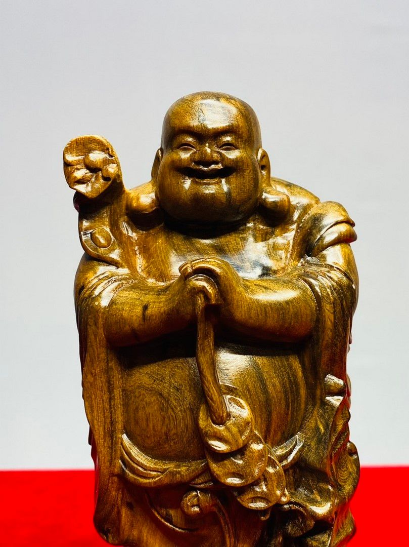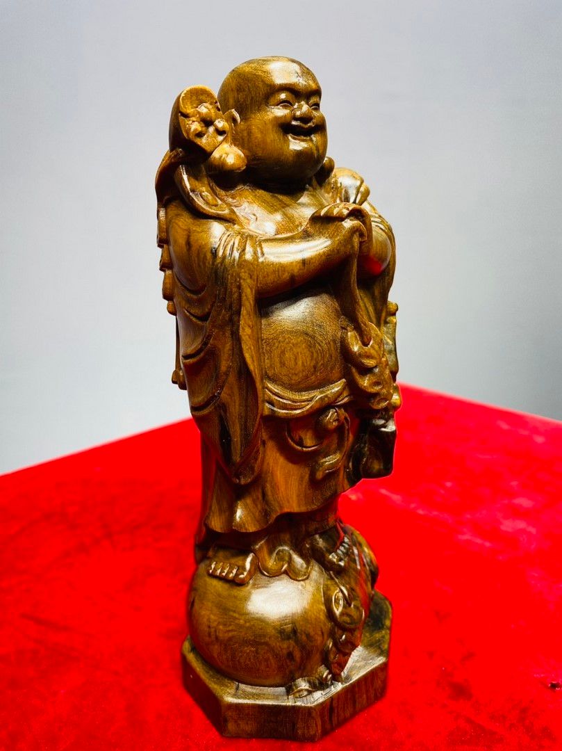 Di Lạc Chúc Phúc Đứng Bao Tiền Gỗ Bách Xanh