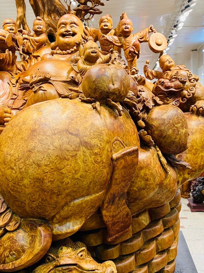 Tượng phật Di Lặc và đám trẻ nhỏ nô đùa: Hình ảnh Phật Di Lặc tươi cười và bao quanh là 9 đứa trẻ mang ý nghĩa đem đến cuộc sống êm ấm, sung túc, con cháu đuề huề cho gia chủ, sự đủ đầy toàn vẹn.