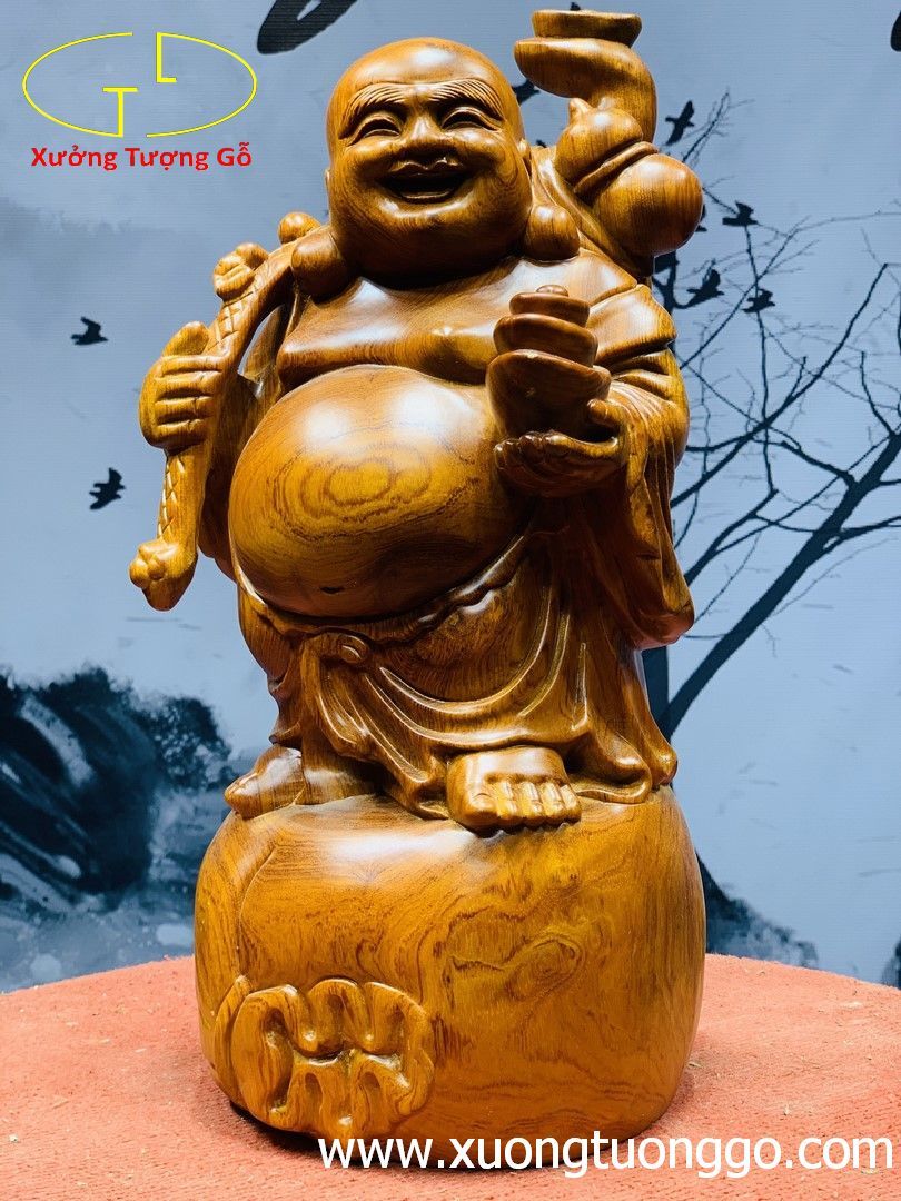 Phật Di Lặc là Phật vị lai sẽ xuất thế sau Đức Thích Ca Mâu Ni. Người được khắc họa trong hình dáng mập mạp, bụng to tròn đầy phúc khí và đặc biệt trên môi luôn nở nụ cười an lạc xuất phát từ tận đáy lòng. Đôi tai to dài của Người nghe thấu phiền muộn thế gian. Bao tiền tượng trưng cho sự dư dả sung túc về của cải vật chất.