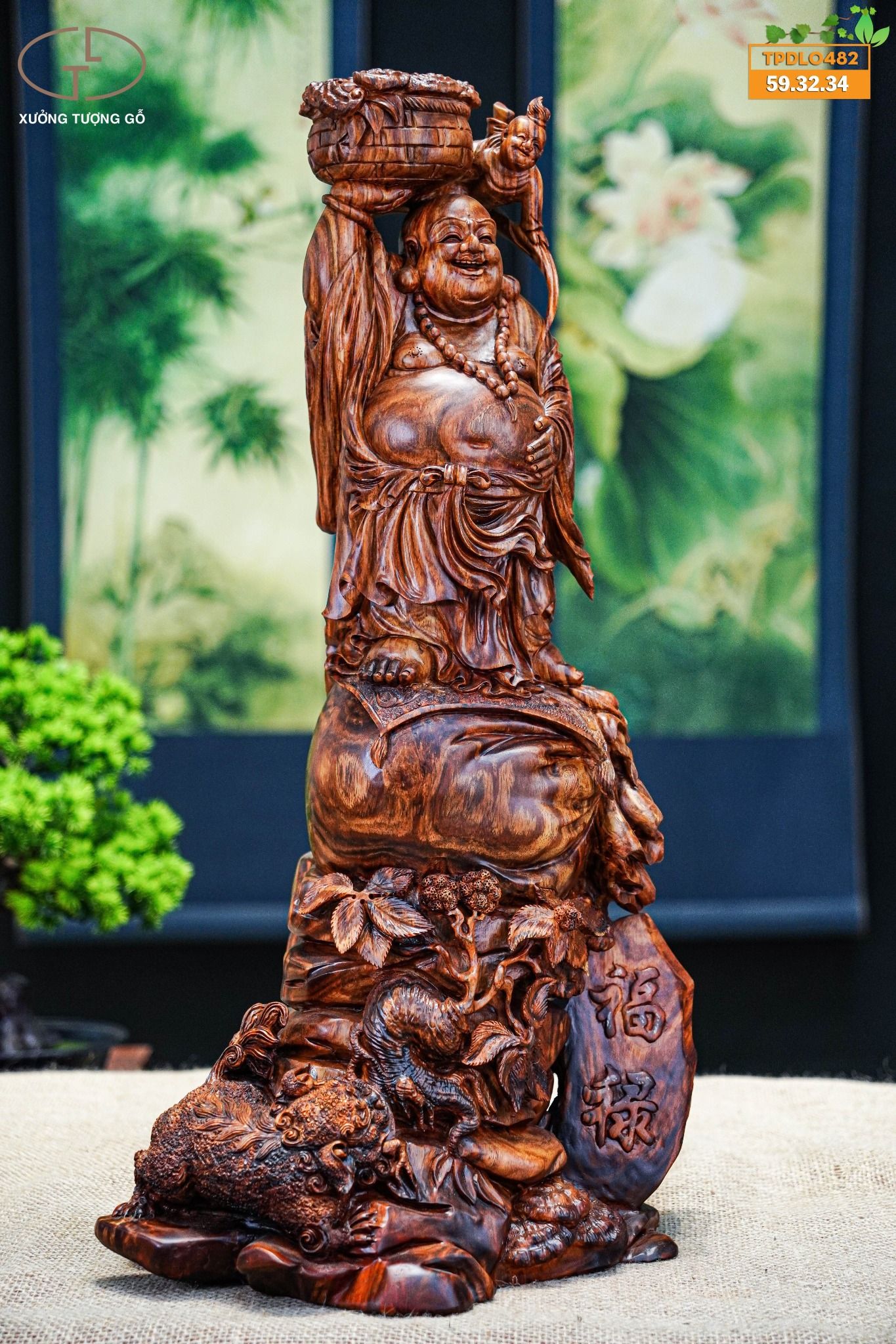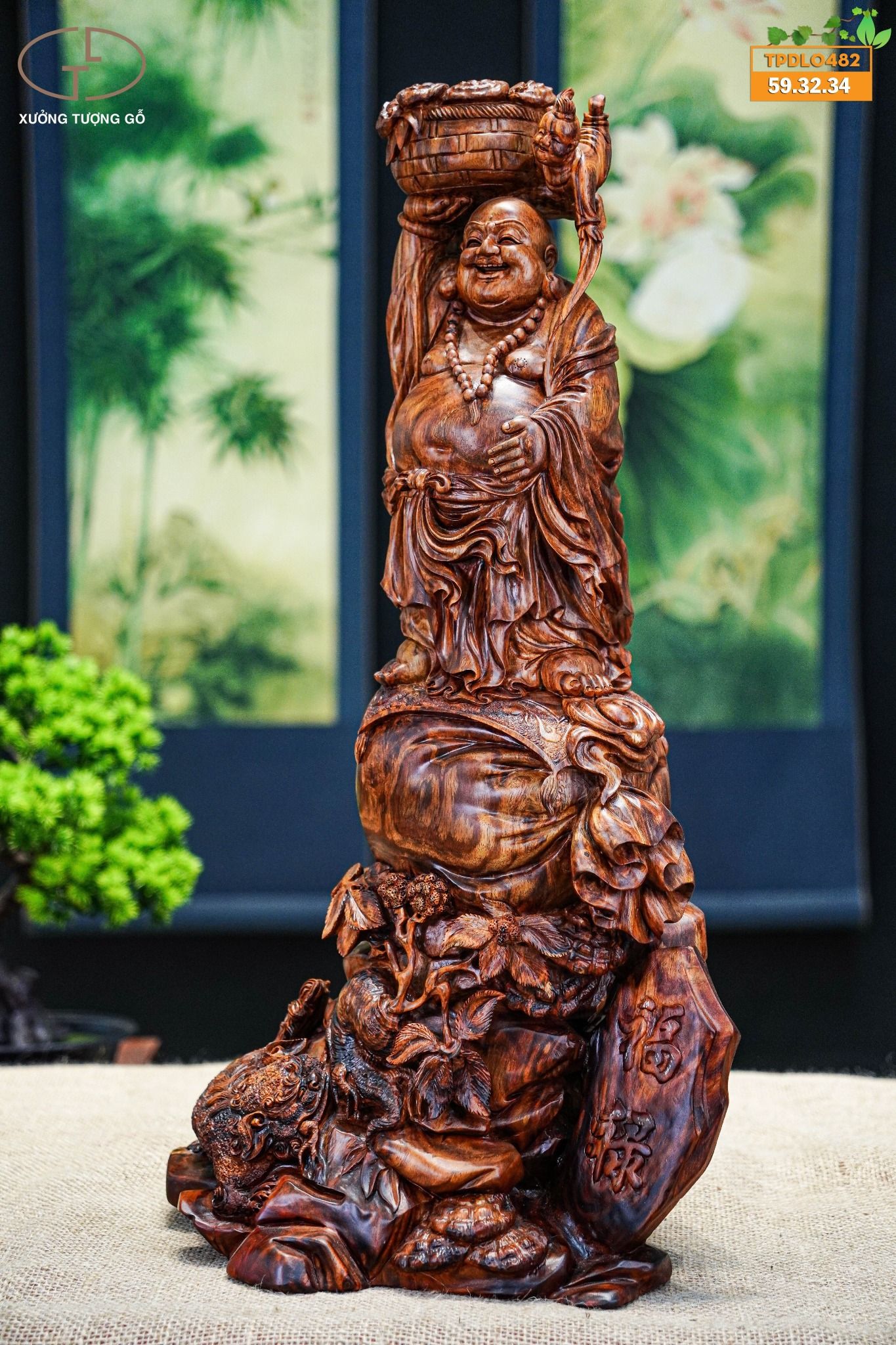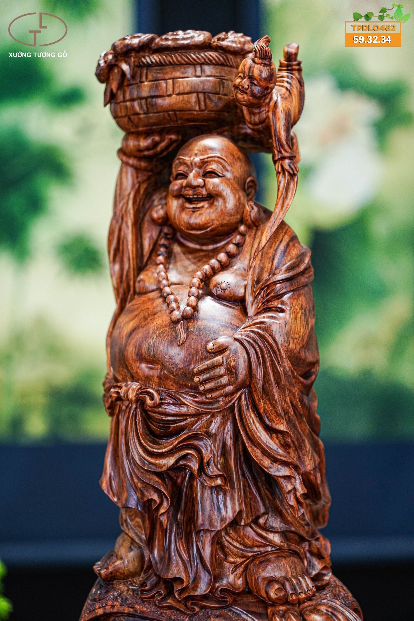 Di lặc đứng bao tiền gỗ sưa