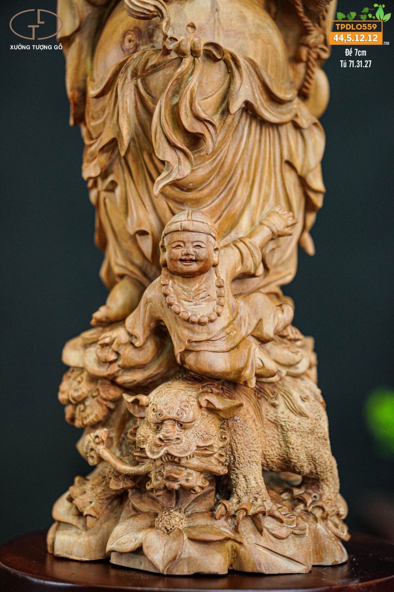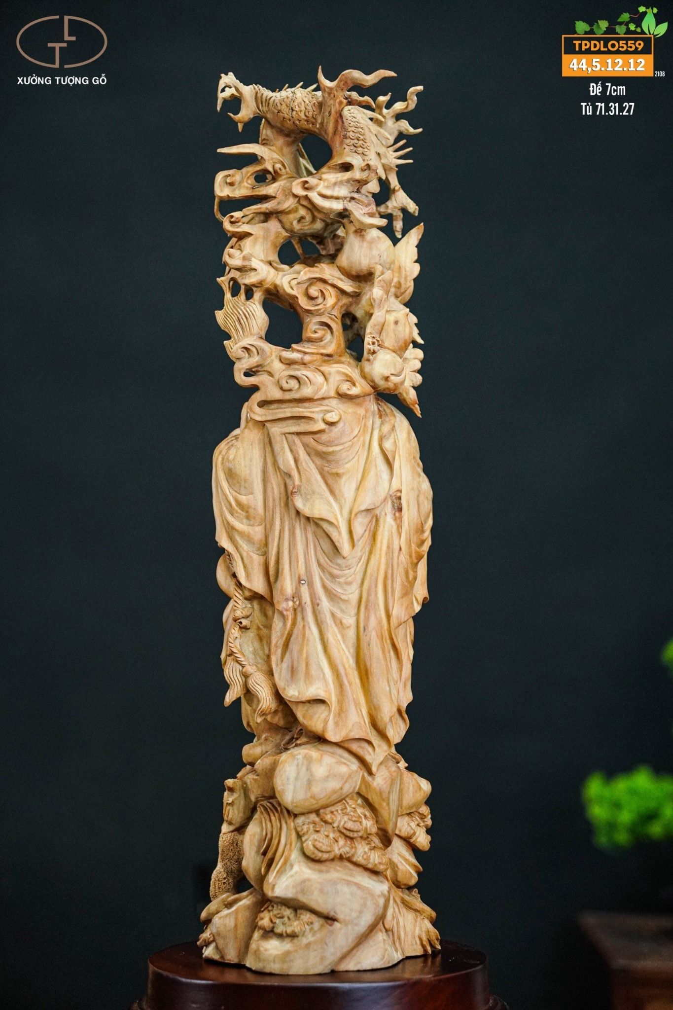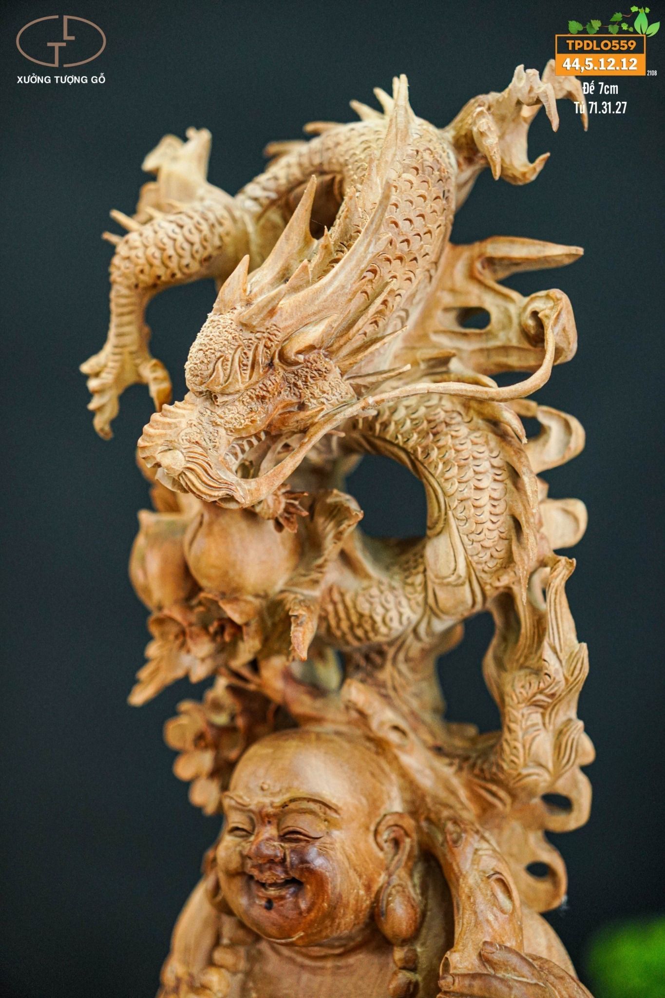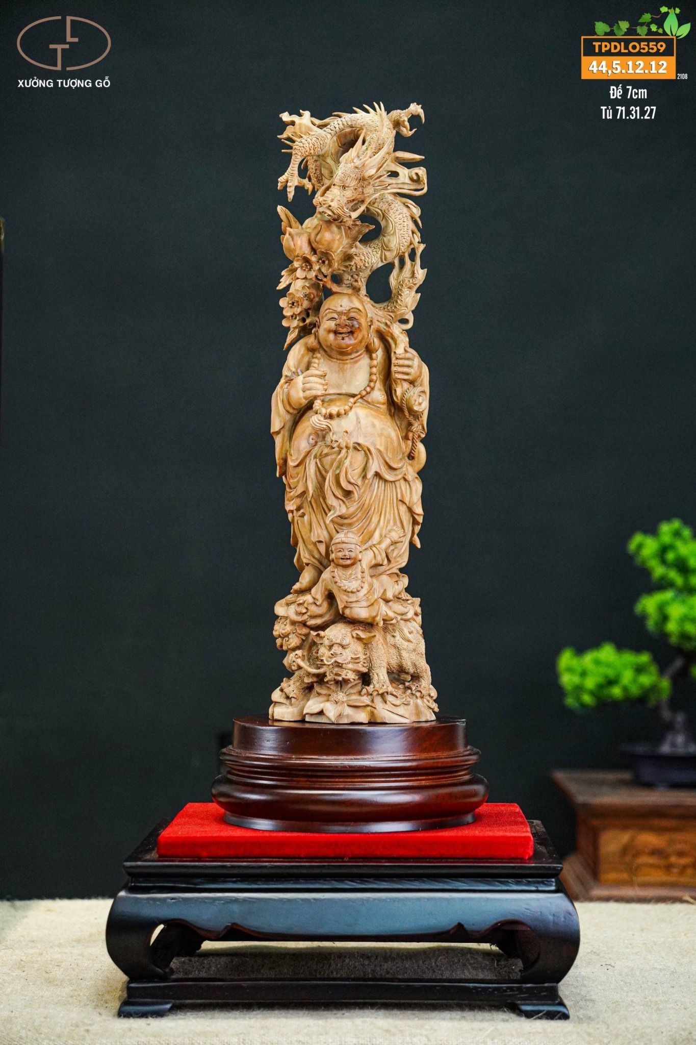 Bên cạnh đó, hình tượng Long (Rồng), Lân Nghê, tăng thêm cho bức tượng sự trấn trạch mạnh mẽ, giúp gia chủ tránh khỏi tà khí, mang đến những vận may vao nhà. Rất ít có những bức tượng có sự sáng tạo từ nghệ nhân, gia tăng hiệu quả phong thủy trong căn nhà.