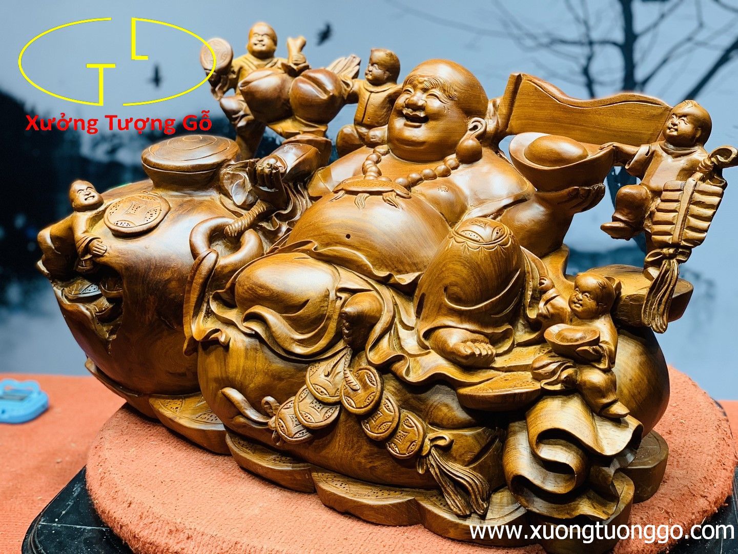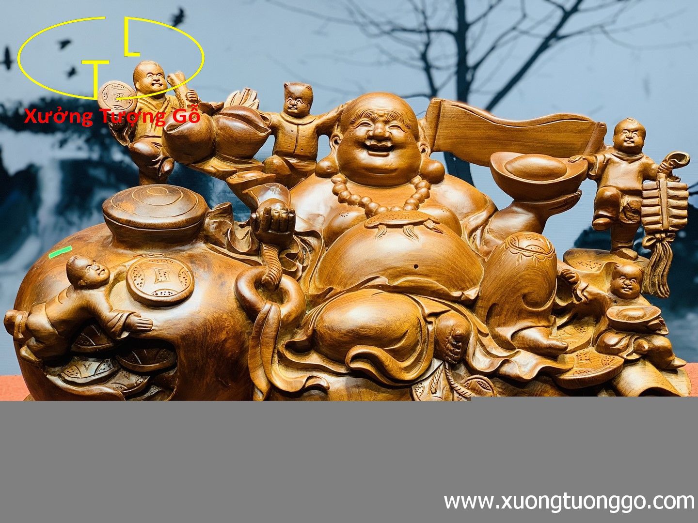 Tượng di lặc ngũ phúc là bức tượng gồm di lặc và 5 tiểu đồng đang đùa nghịch cùng ngài ý nghĩa đầu tiên ta thấy là con đàn cháu đống,luôn ngập tràn tiếng cười . Có nếp có tẻ gia đình đều huề, an vui. 5 tiểu đồng còn biểu hiện cho tượng trưng cho " Phúc-Lộc-Thọ-Khang-Linh".