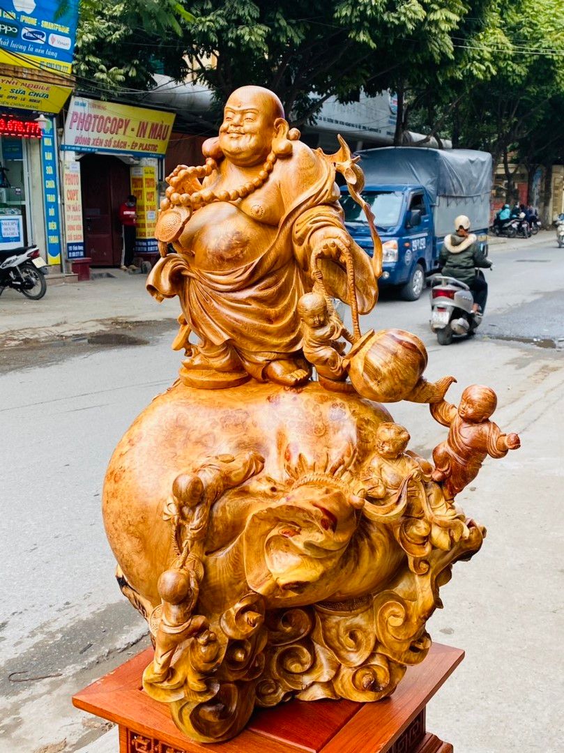 Di Lạc Ngũ Tiểu Đứng Bao Tiền Gỗ Nu Hương