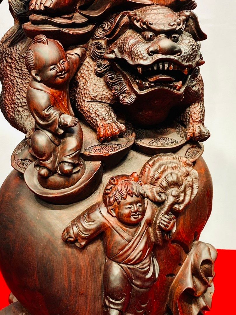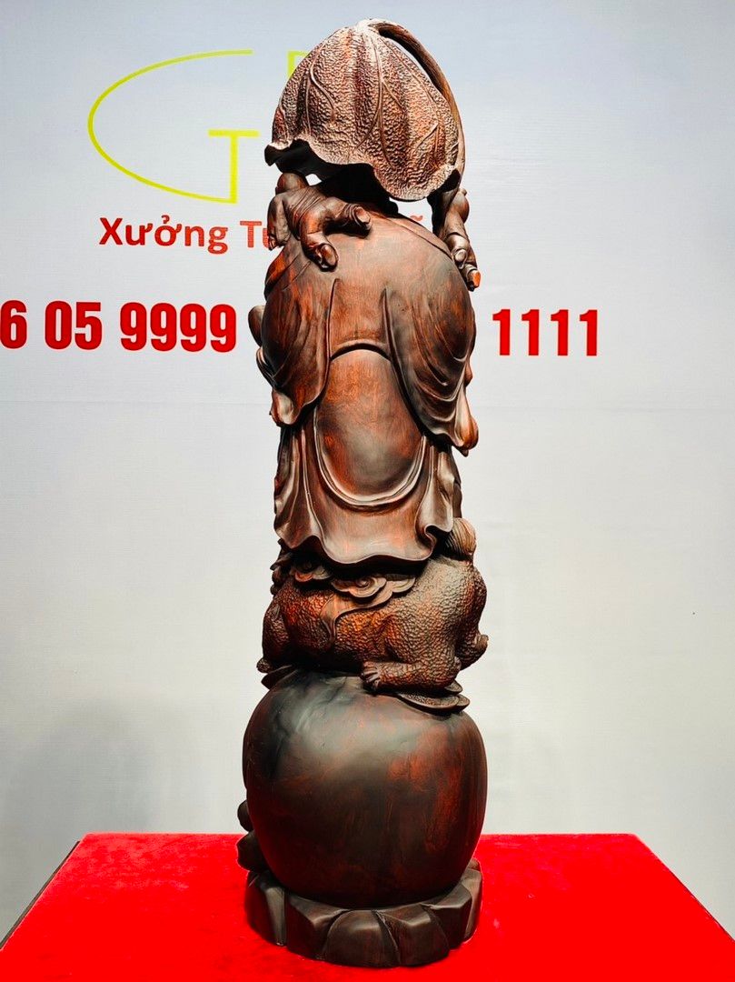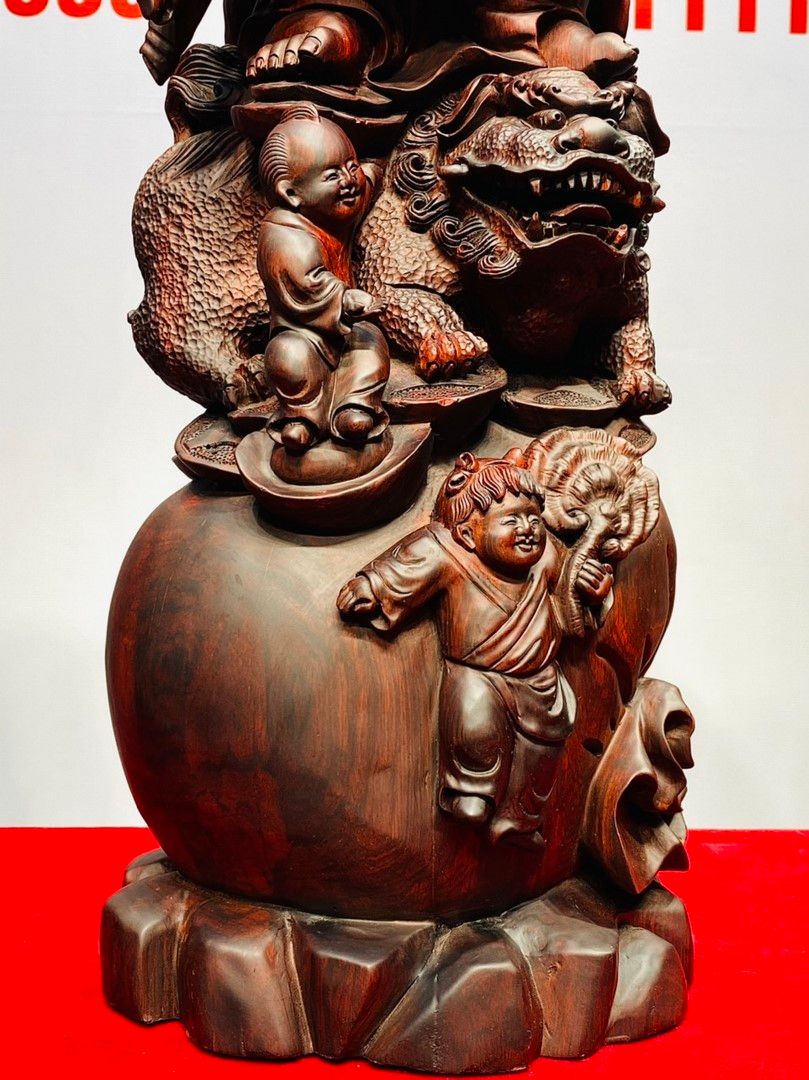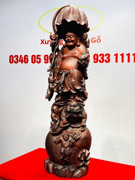 Di Lạc Ngũ Tiểu Đứng Nghê Bao Tiền Gỗ Trắc