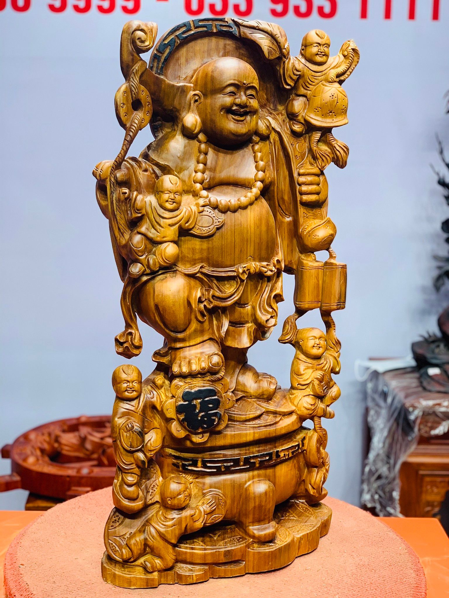 Mời các bác cùng chiêm ngưỡng tác phẩm Di Lặc ngũ phúc đứng tùng vô cùng độc đáo hoàn mỹ và nếu các bác đang tìm kiễm một tác phẩm phong thủy đem lại tài lộc, danh vọng cùng may mắn an vui cho gia đình thì còn chần chờ gì mà không sở hữu ngay cho mình bức tượng Di Lặc ngũ tiểu đứng tùng của Xưởng Tượng Gỗ.