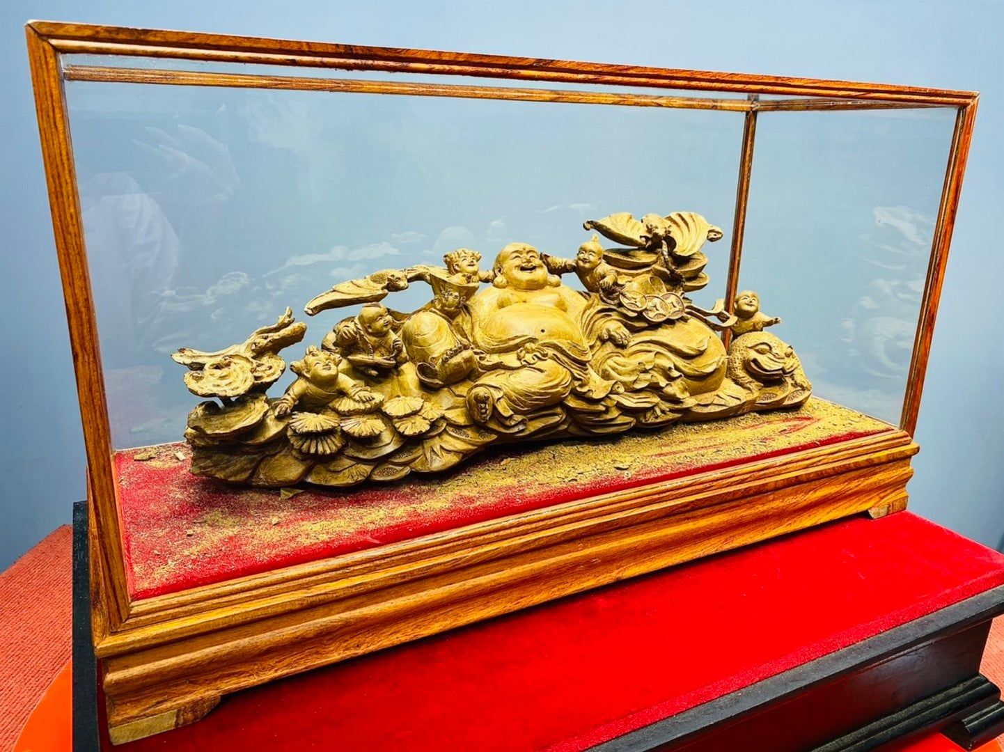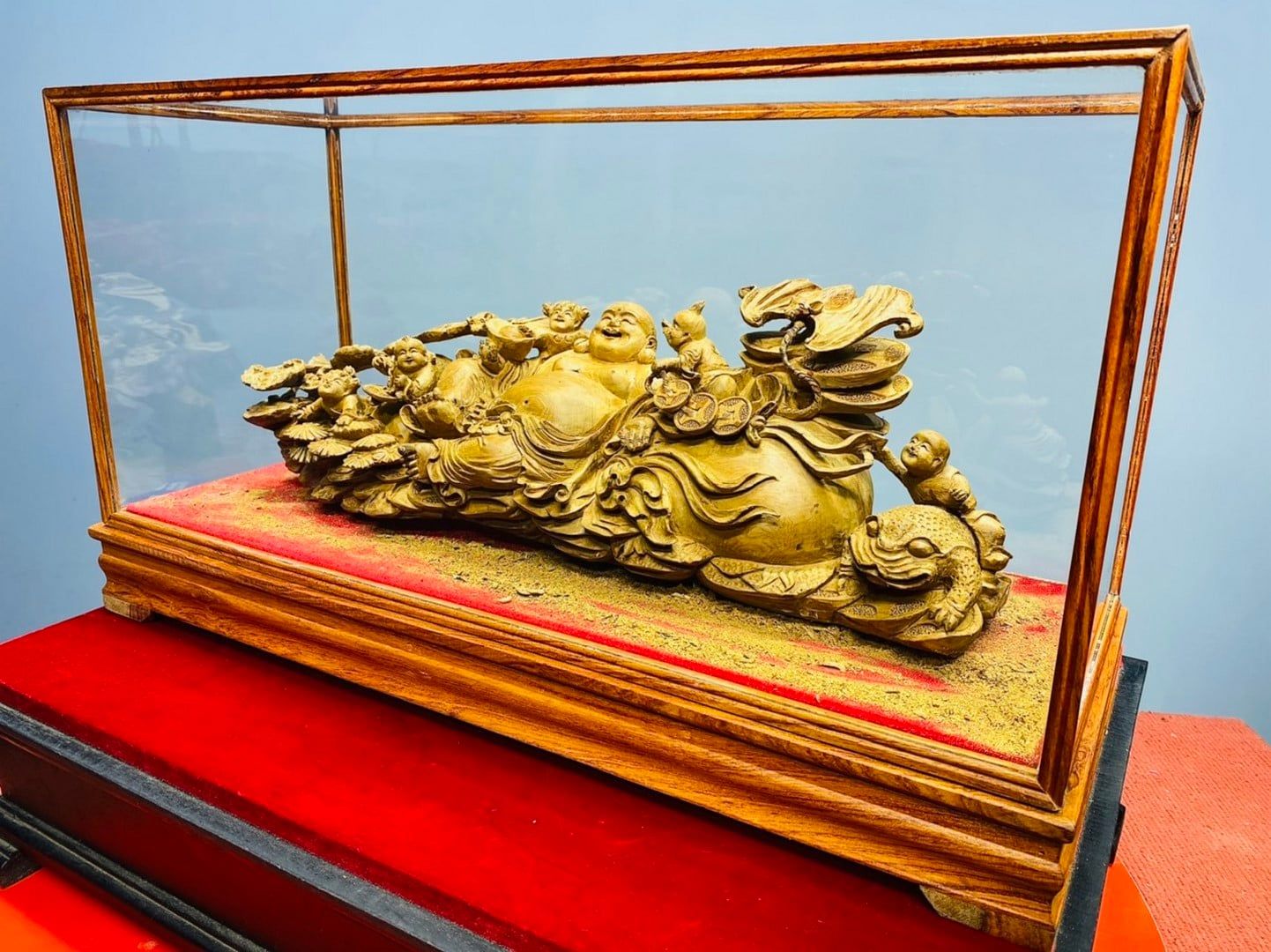 Di Lạc Ngũ Tiểu Ngồi Bao Tiền Gỗ Hoàng Đàn