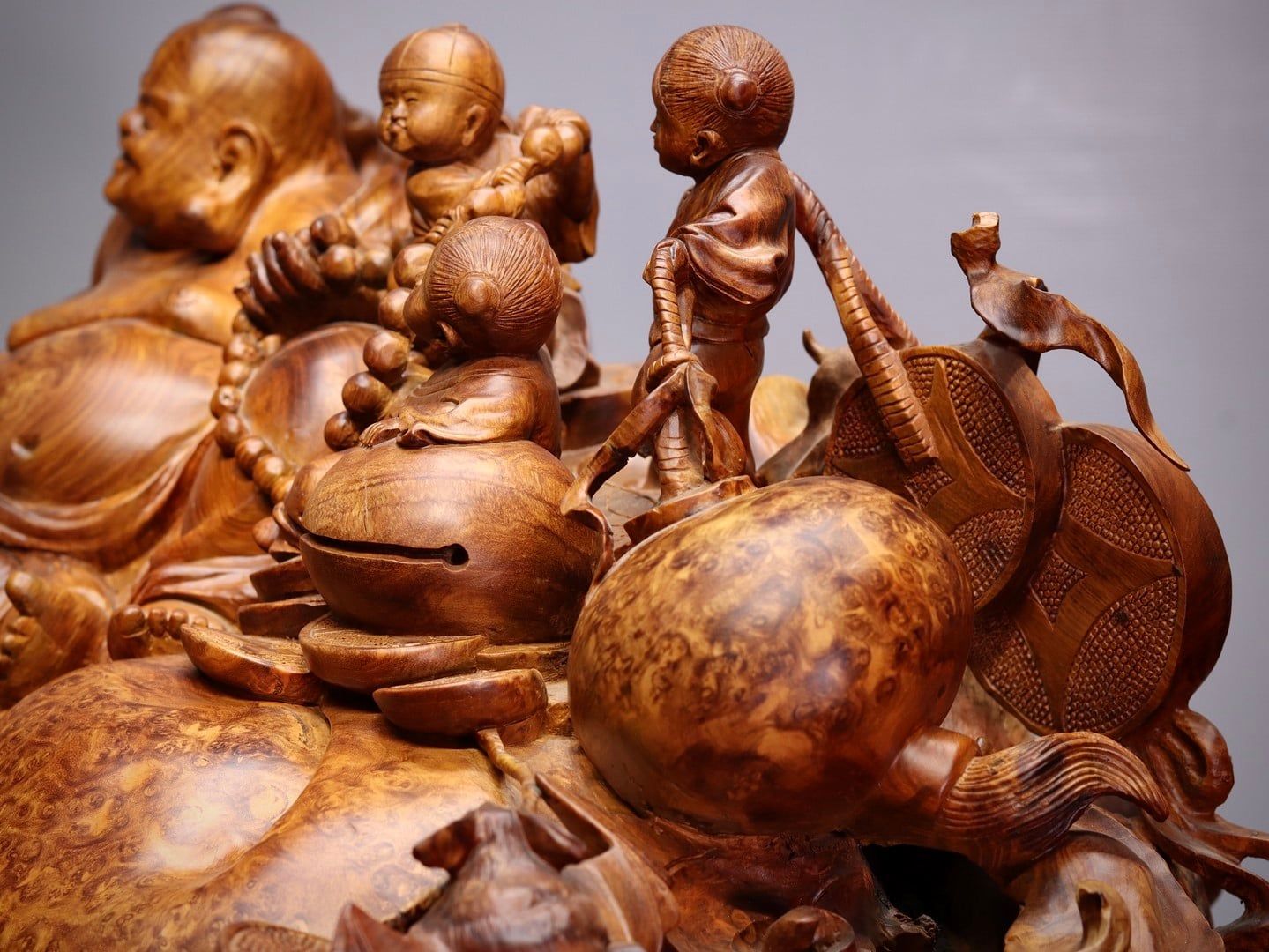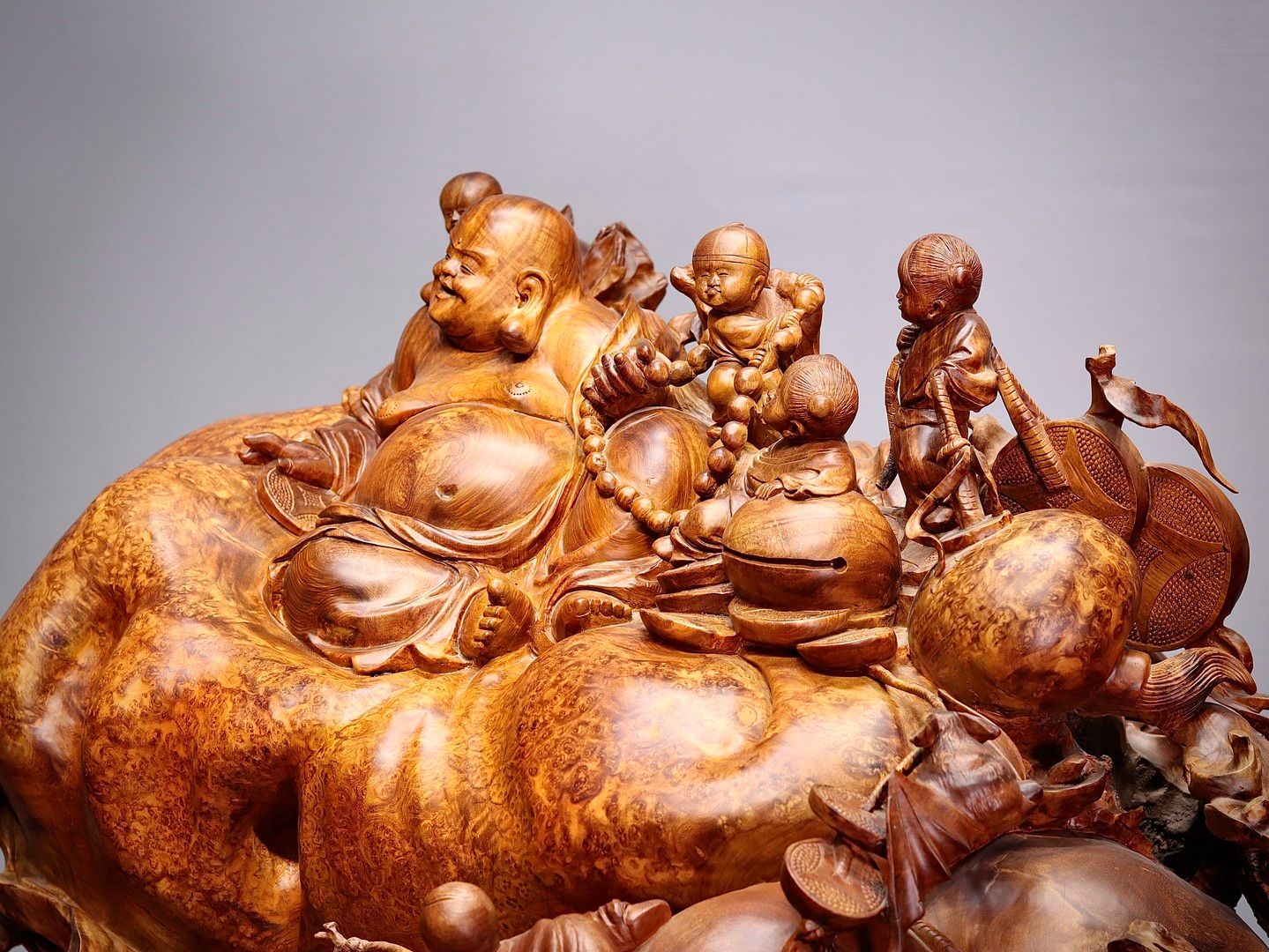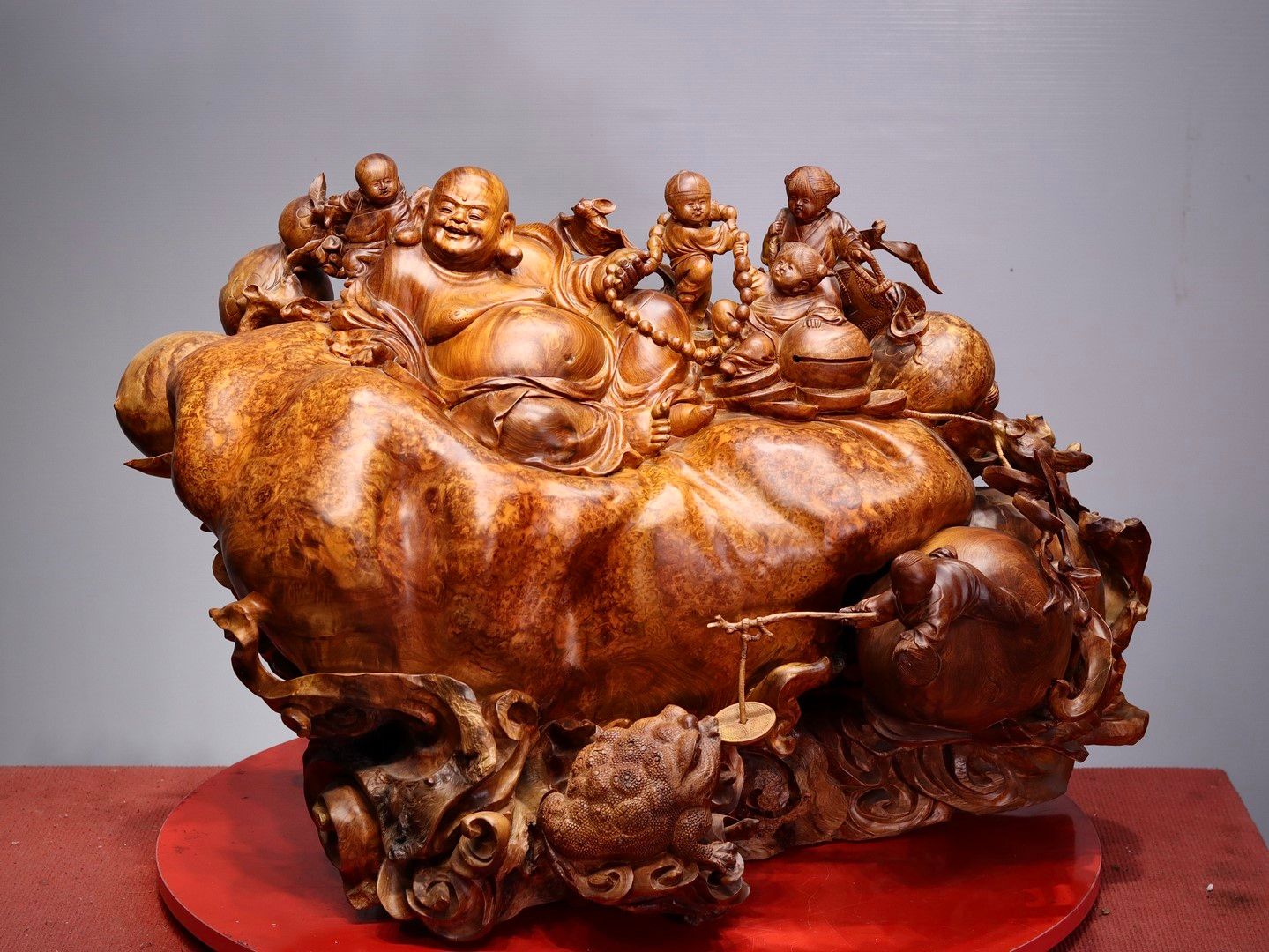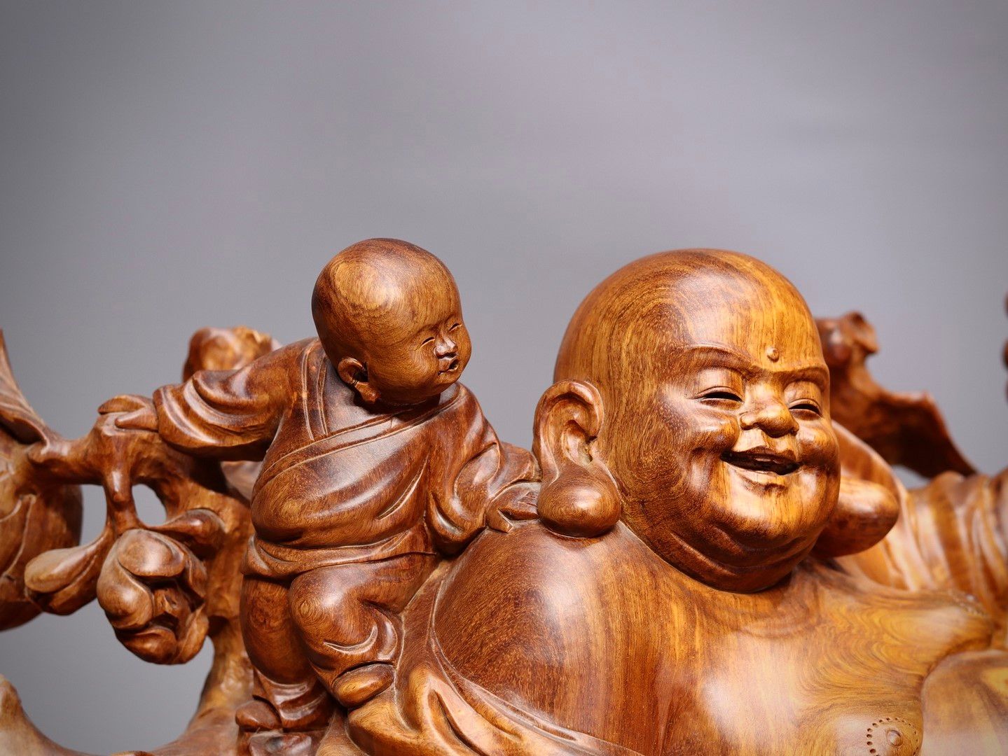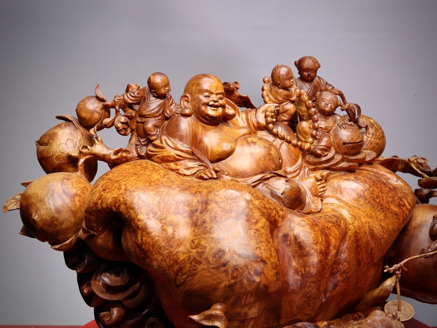 Di Lạc Ngũ Tiểu Ngồi Bao Tiền Gỗ Nu Hương