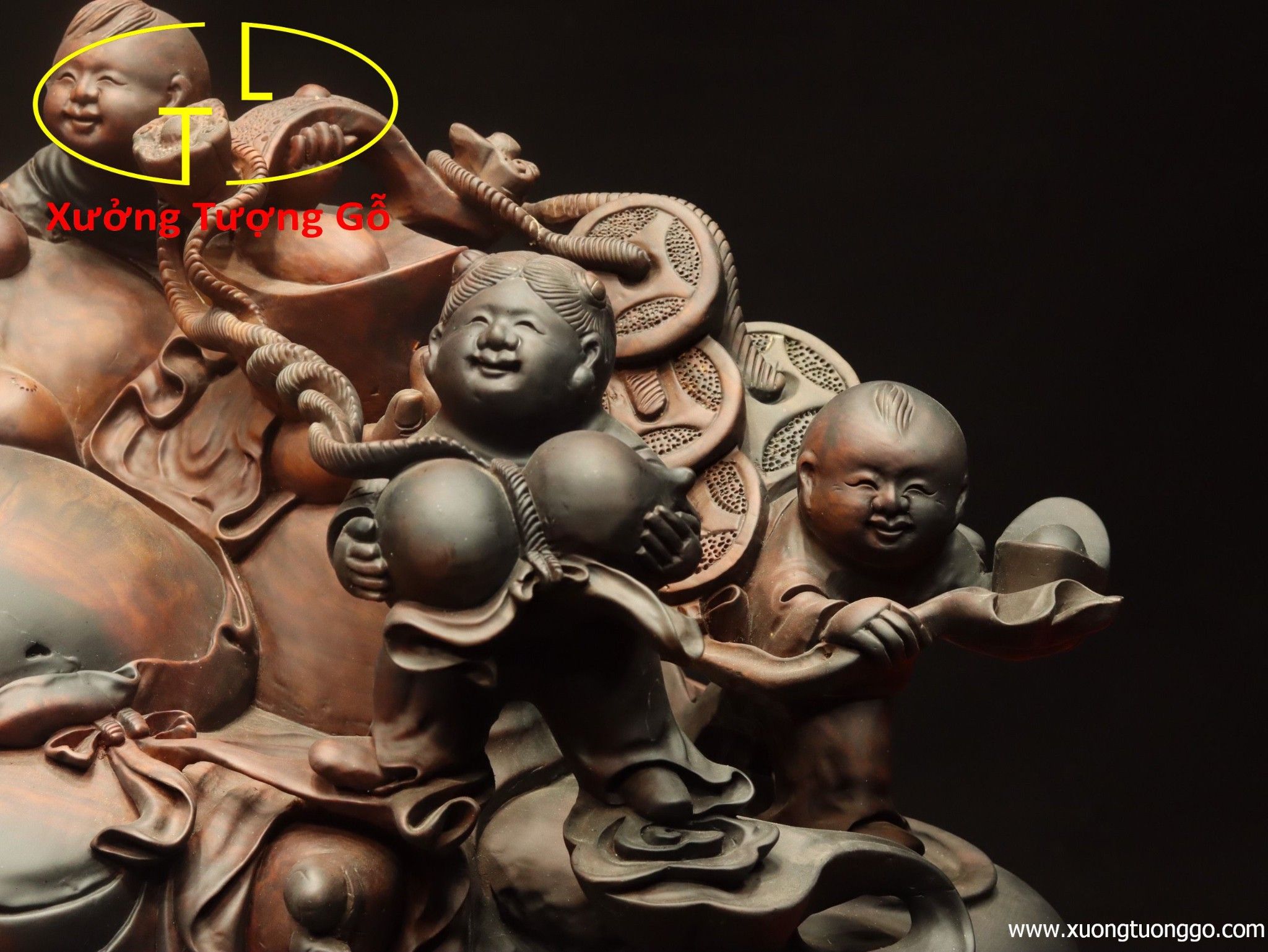 Di Lặc ngũ tiểu là tác phẩm được yêu thích nhất trong thị trường tượng gỗ.