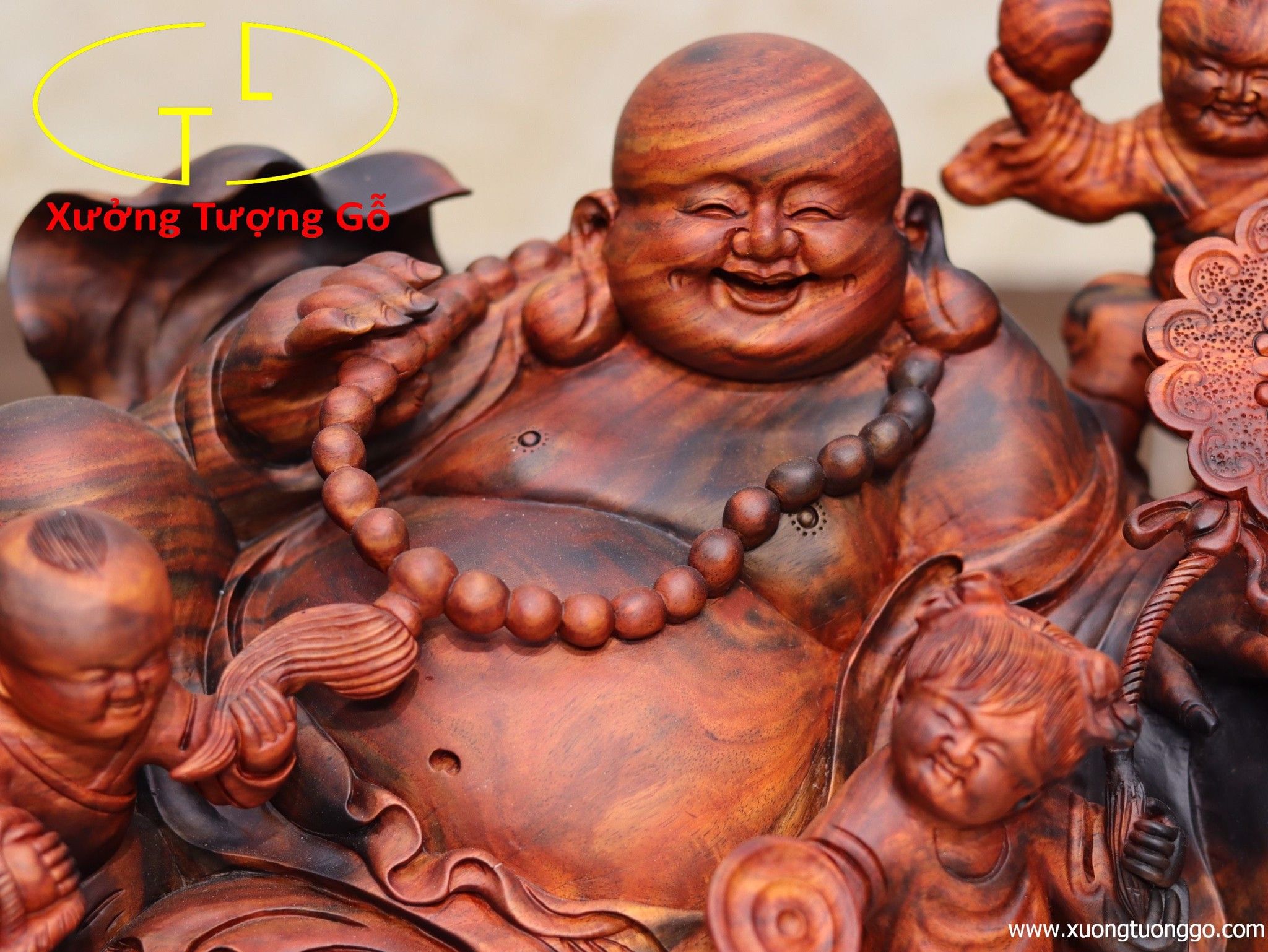 Mời các bác cùng chiêm ngưỡng tác phẩm Di Lặc ngũ phúc nghê vô cùng độc đáo hoàn mỹ và nếu các bác đang tìm kiễm một tác phẩm phong thủy đem lại tài lộc, danh vọng cùng may mắn an vui cho gia đình thì còn chần chờ gì mà không sở hữu ngay cho mình bức tượng Di Lặc ngũ tiểu nghê của Xưởng Tượng Gỗ.