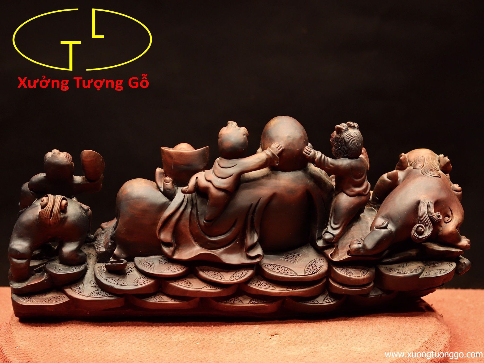 Tượng di lặc ngũ phúc là bức tượng gồm di lặc và 5 tiểu đồng đang đùa nghịch cùng ngài ý nghĩa đầu tiên ta thấy là con đàn cháu đống,luôn ngập tràn tiếng cười . Có nếp có tẻ gia đình đều huề, an vui. 5 tiểu đồng còn biểu hiện cho tượng trưng cho " Phúc-Lộc-Thọ-Khang-Linh".