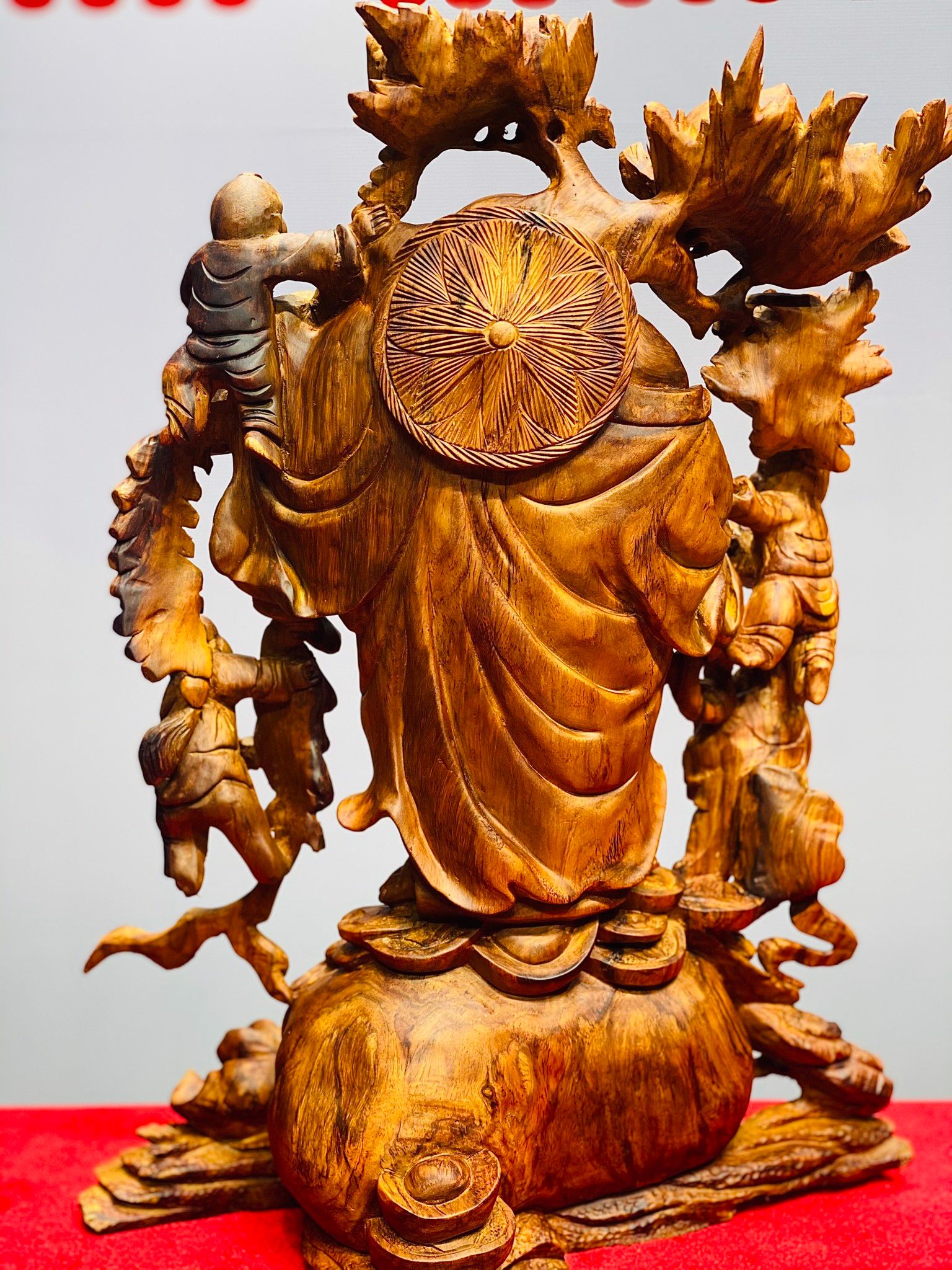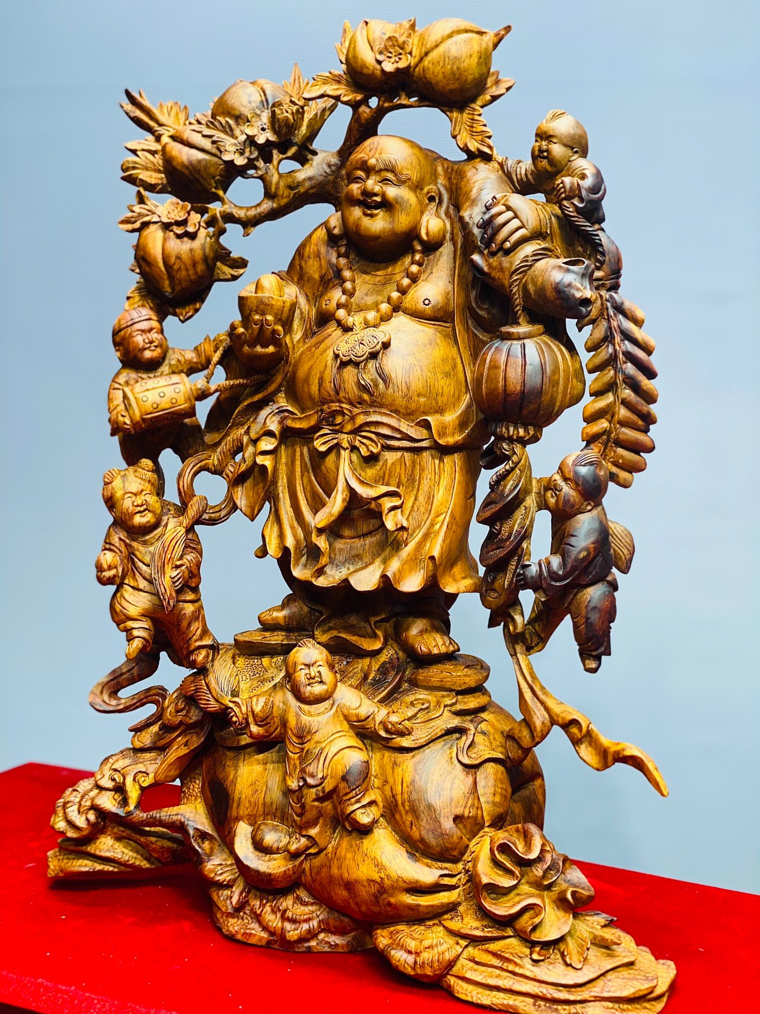 Mời các bác cùng chiêm ngưỡng tác phẩm Di Lặc ngũ phúc đứng tùng vô cùng độc đáo hoàn mỹ và nếu các bác đang tìm kiễm một tác phẩm phong thủy đem lại tài lộc, danh vọng cùng may mắn an vui cho gia đình thì còn chần chờ gì mà không sở hữu ngay cho mình bức tượng Di Lặc ngũ tiểu đứng tùng của Xưởng Tượng Gỗ.