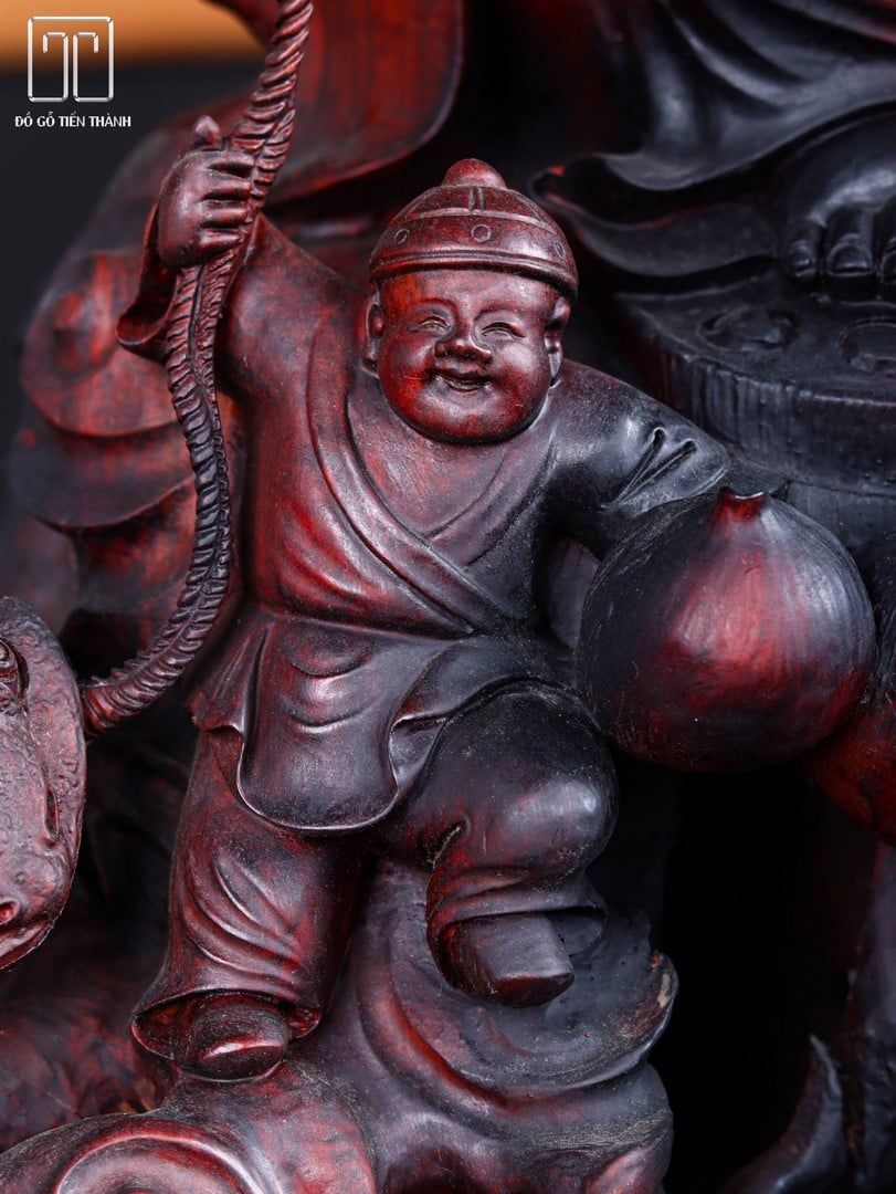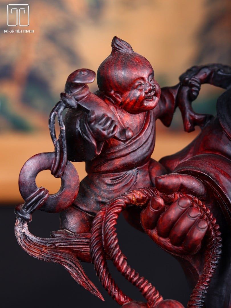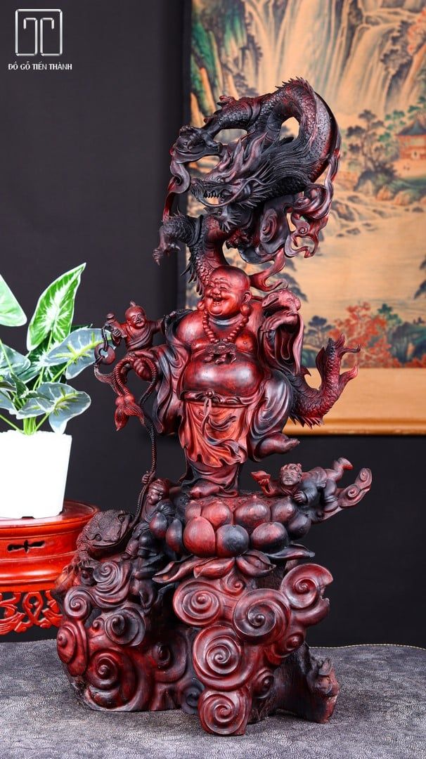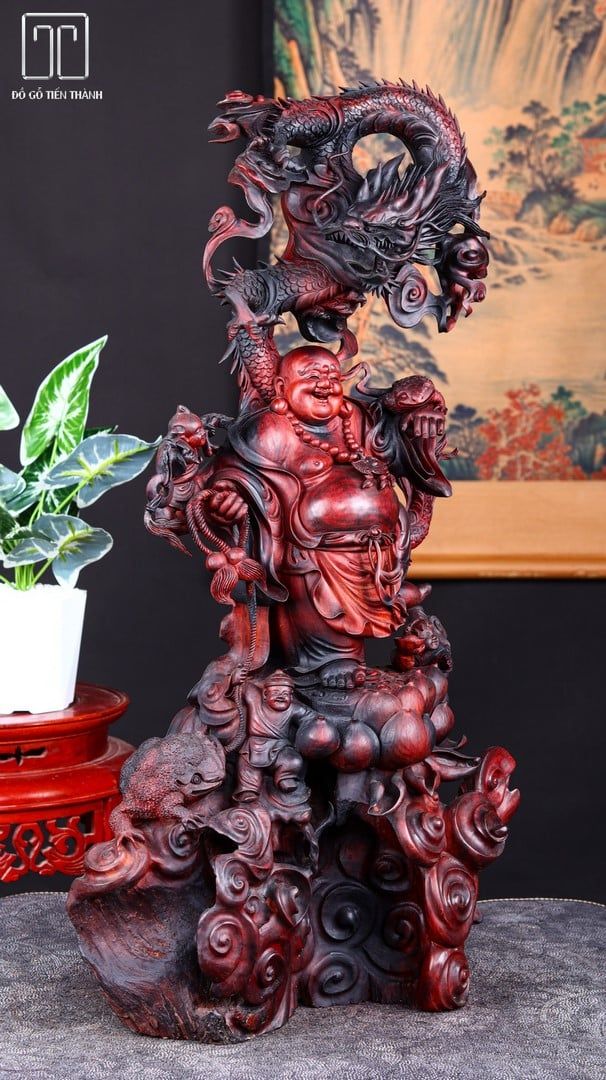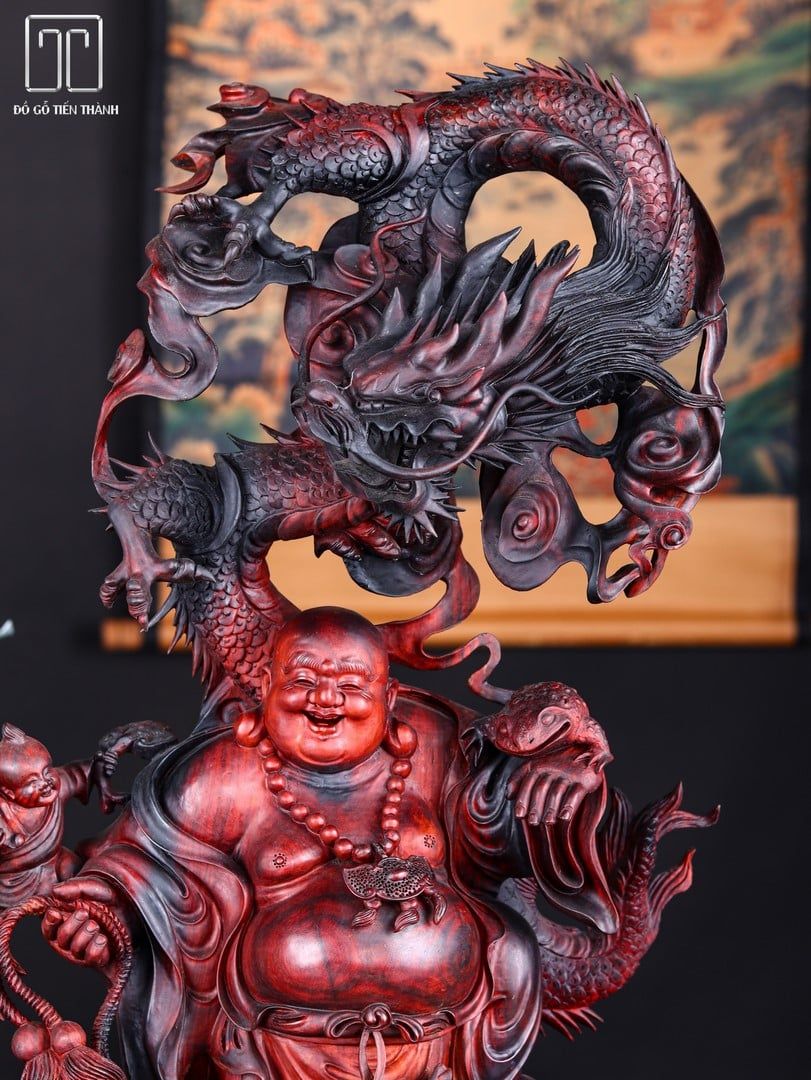 Di Lạc Nhất Long Tam Tiểu Đứng Sen Gỗ Trắc