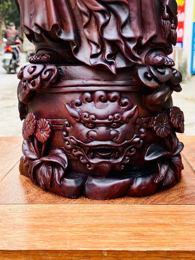 Di Lạc Nhất Tiểu Cầm Gậy Như Ý Đứng Trống Gỗ Tử Đàn