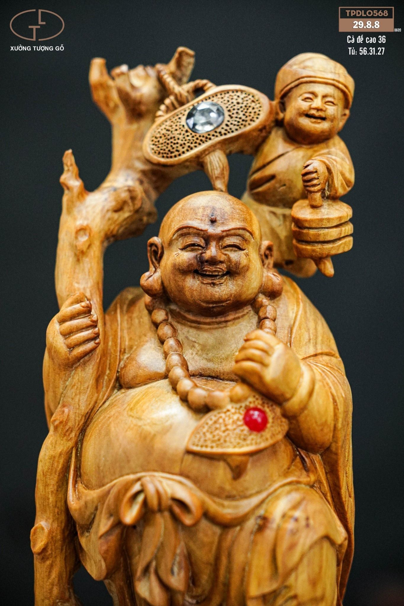 #Tượng Phật Di Lặc Nhị Phúc Gánh Tiền làm từ chất liệu Gỗ Hương Đá nguyên khối, kích thước cao 60 ngang 29 rộng 20 cm. TTượng Phật Di Lặc Nhị Phúc Gánh Tiền đứng bao tiền được Đồ gỗ mỹ nghệ Gia An đục tỉ mỉ, kỹ lưỡng, những đường nét vô cùng sắc sảo. Đảm bảo mang đến cho Quý khách hàng sản phẩm chất lượng nhất. Trưng bày Tượng Phật Di Lặc Nhị Phúc Gánh Tiền đứng bao tiền sẽ đem đến cho gia chủ sự may mắn, tài lộc, gia định hạnh phúc