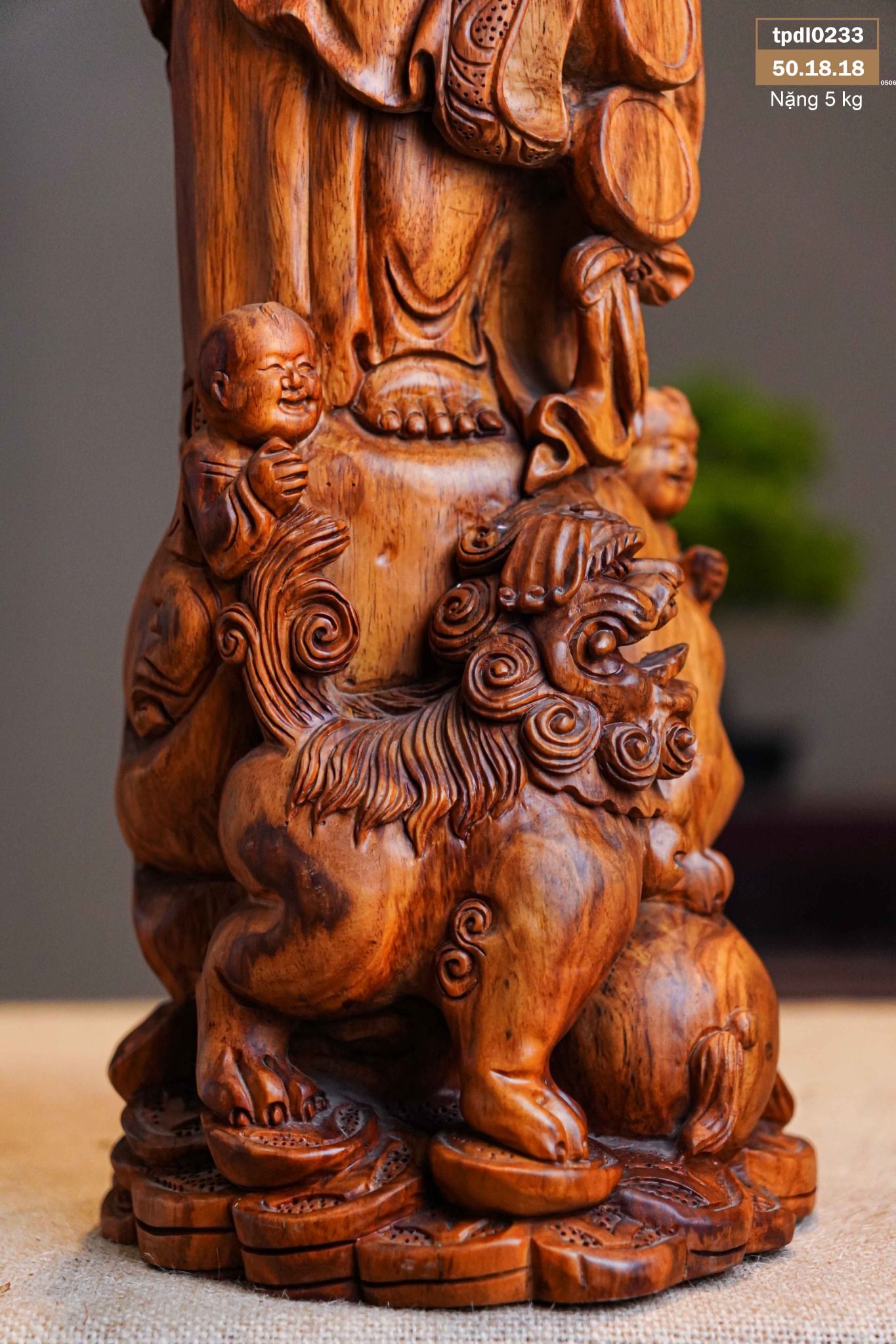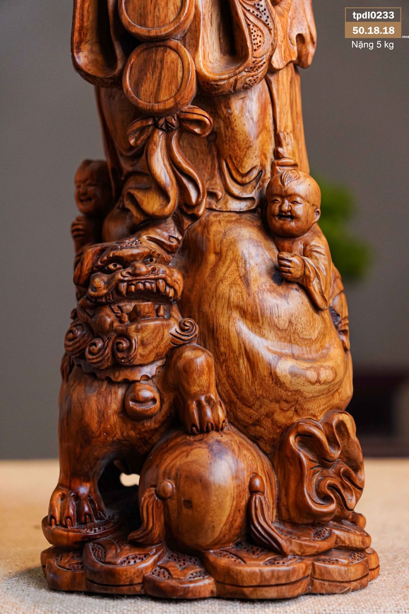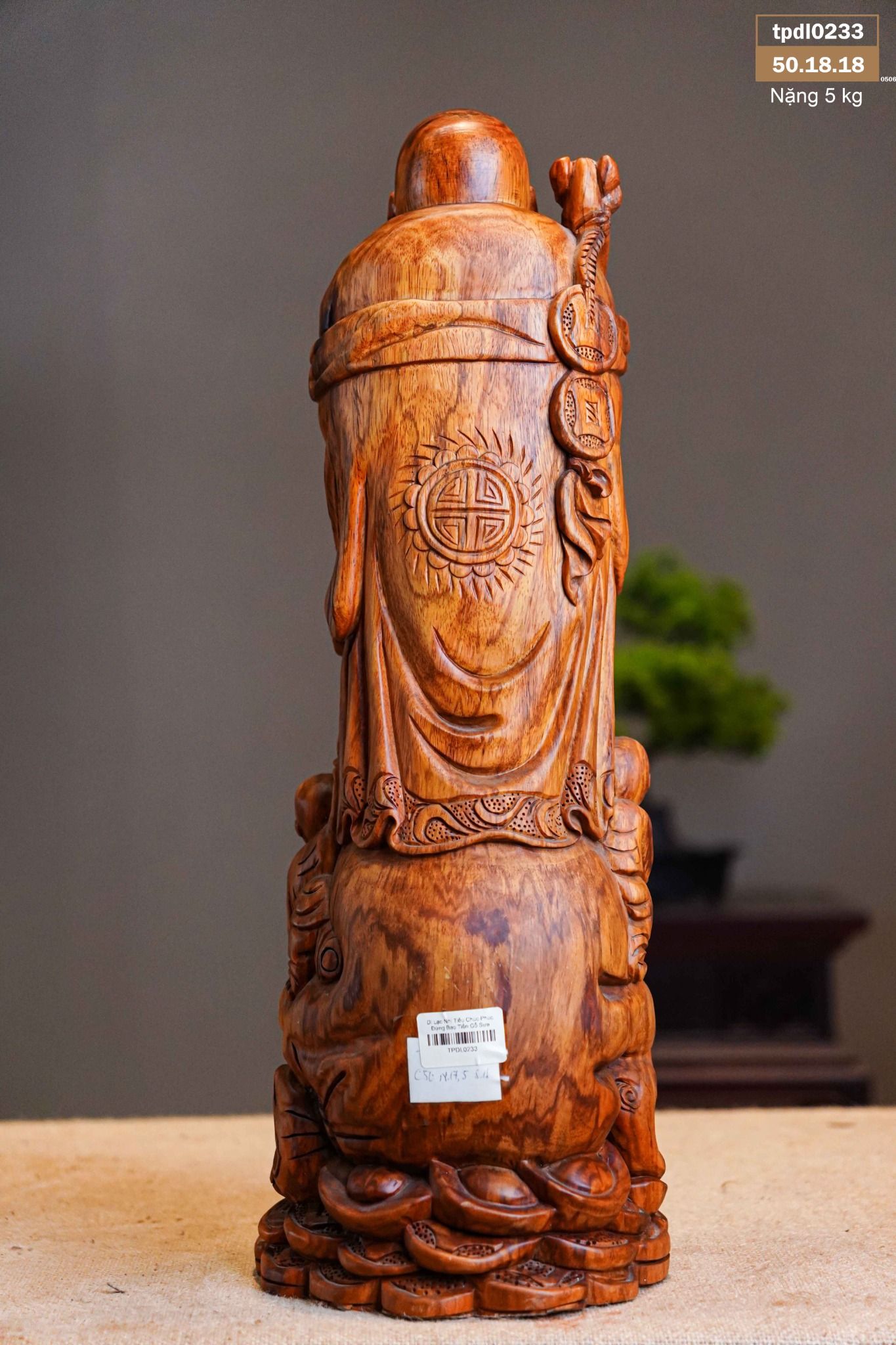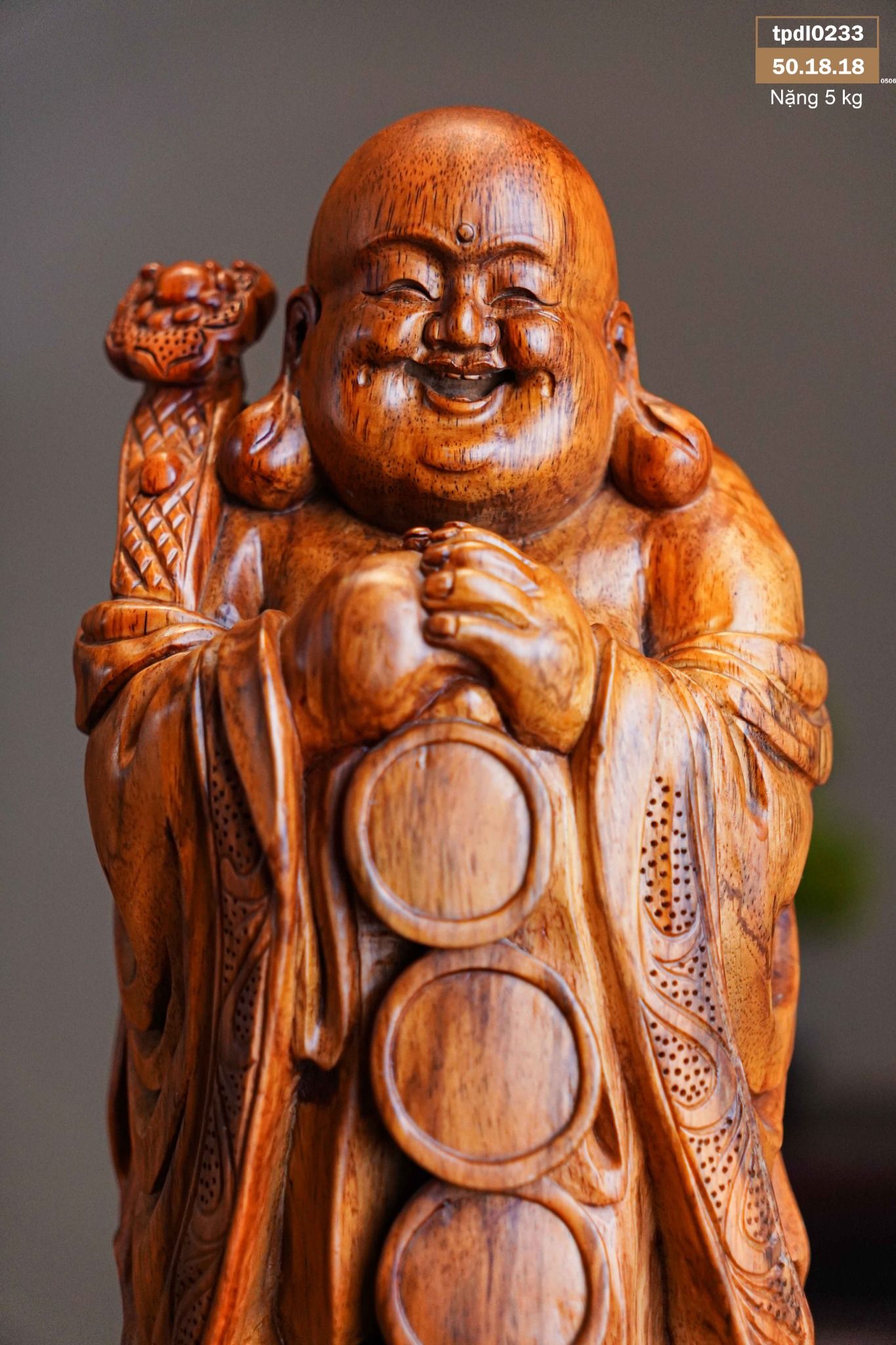 Di Lạc Nhị Tiểu Chúc Phúc Đứng Bao Tiền Gỗ Sưa