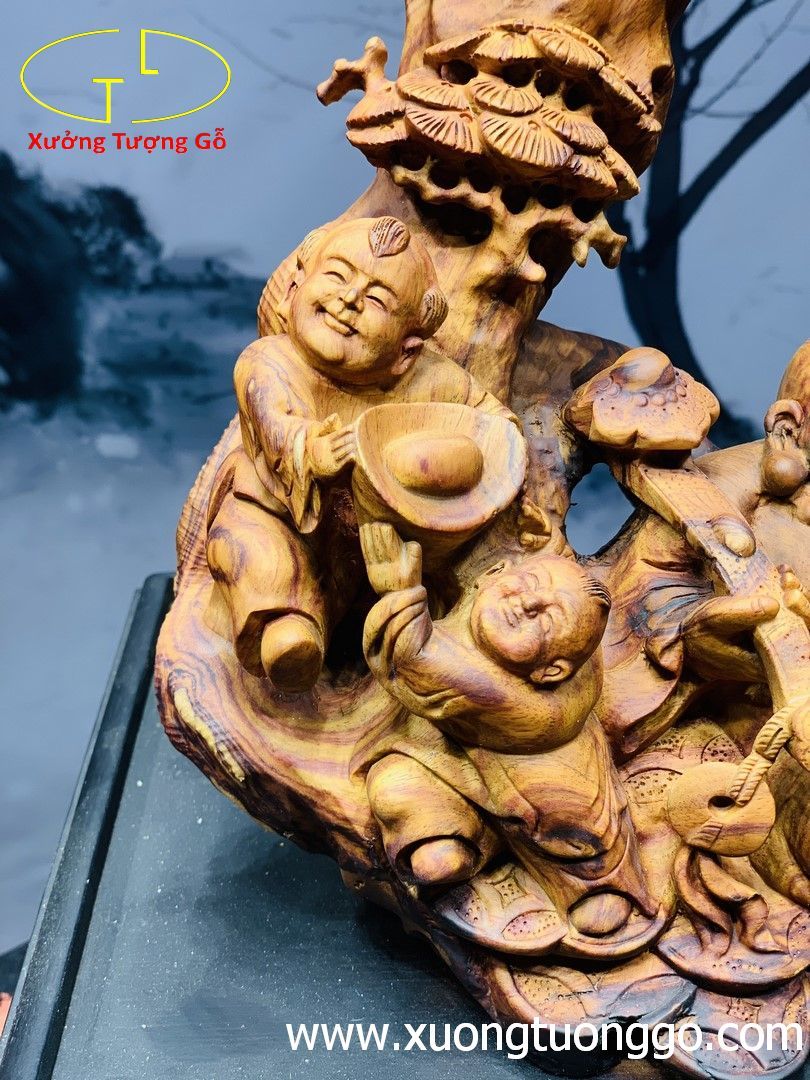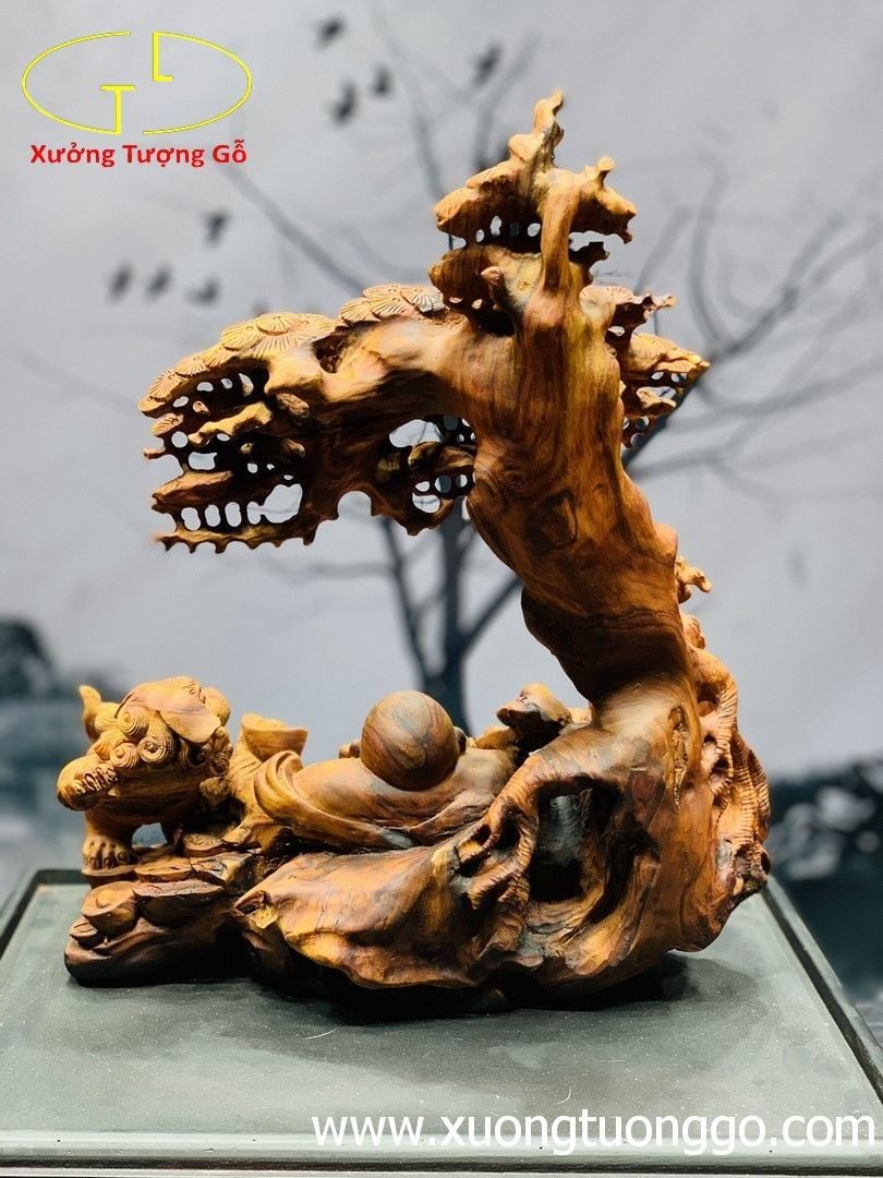Di Lặc nhị tiểu ngồi tùng gỗ sưa.