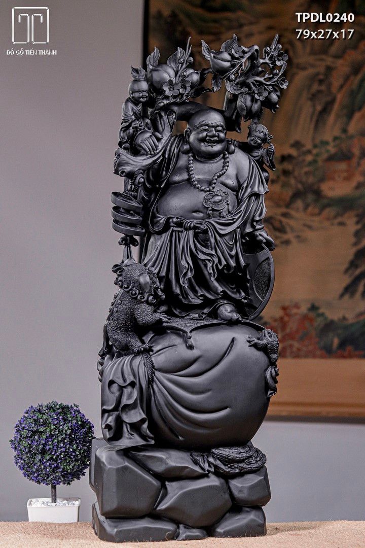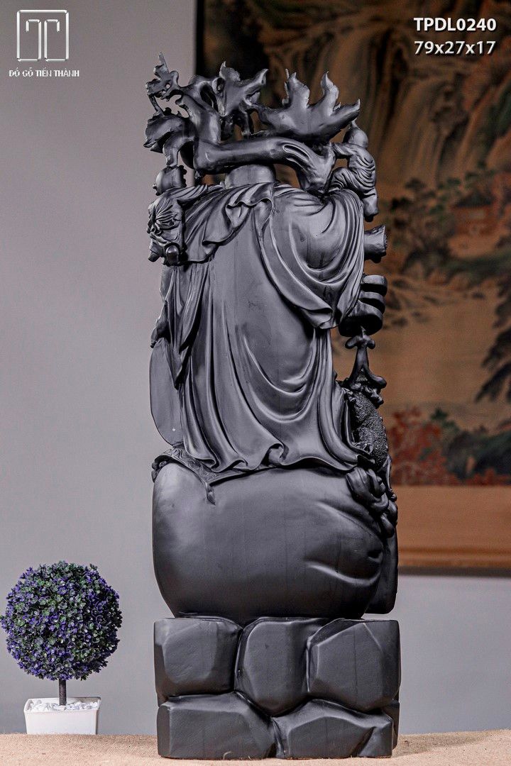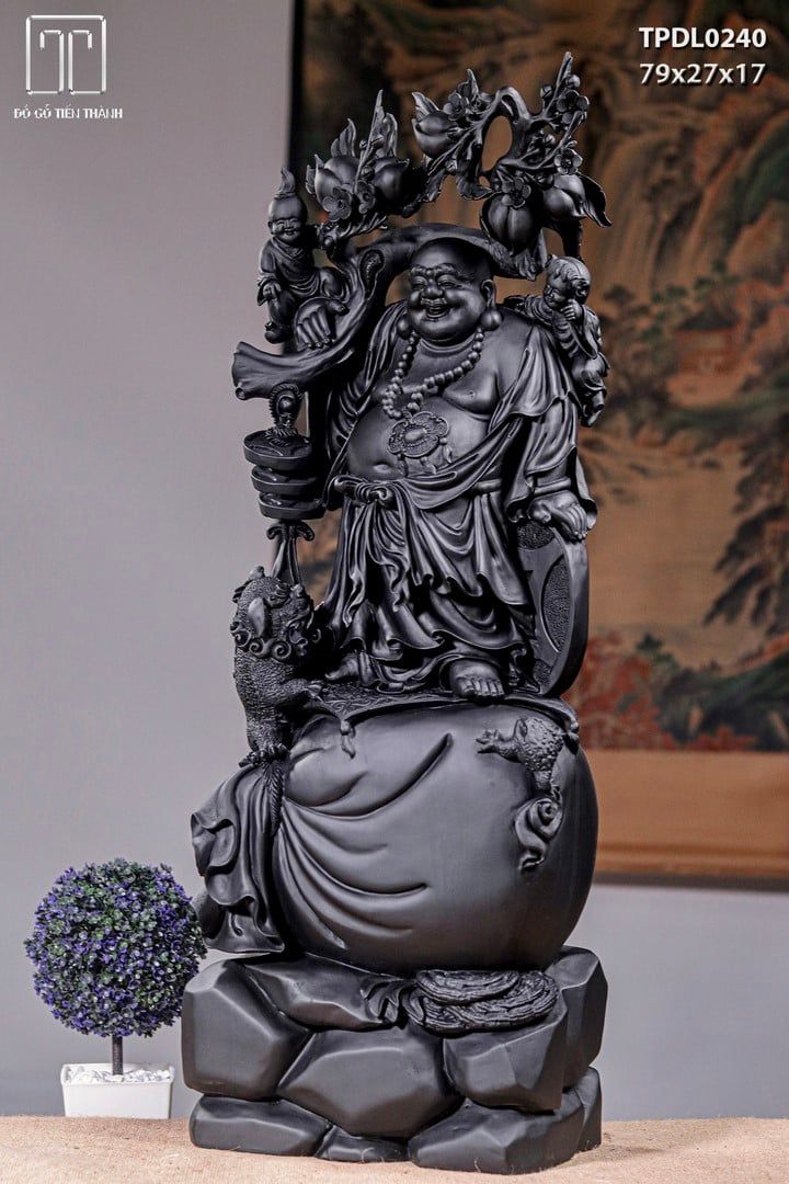 DI Lạc Nhị Tiểu Vác Cành Đào Đứng Bao Tiền Gỗ Mun Sừng Khánh Hoà