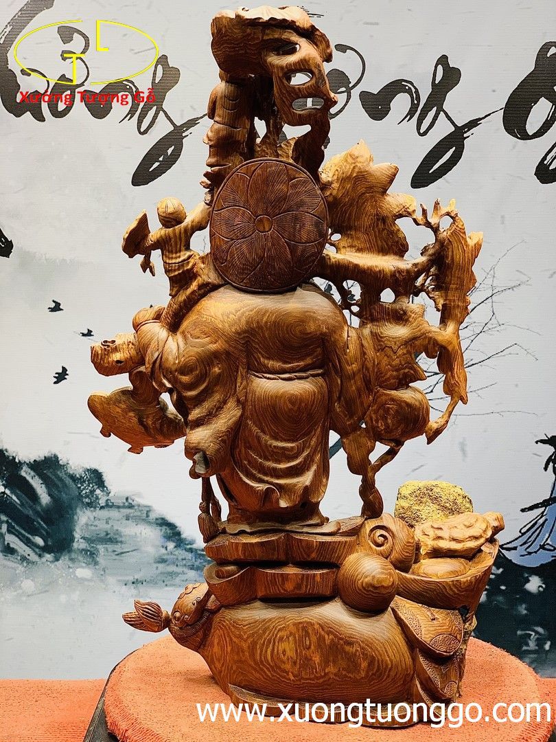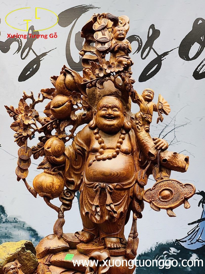 Di Lặc nhị tiểu vác đào đứng bao tiền gỗ cẩm lai.
