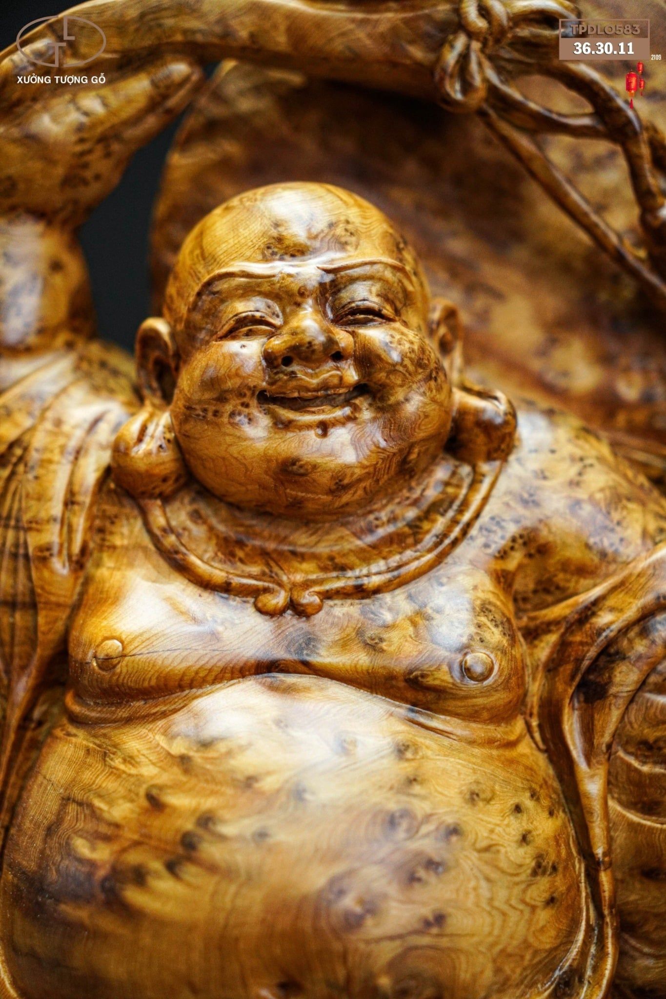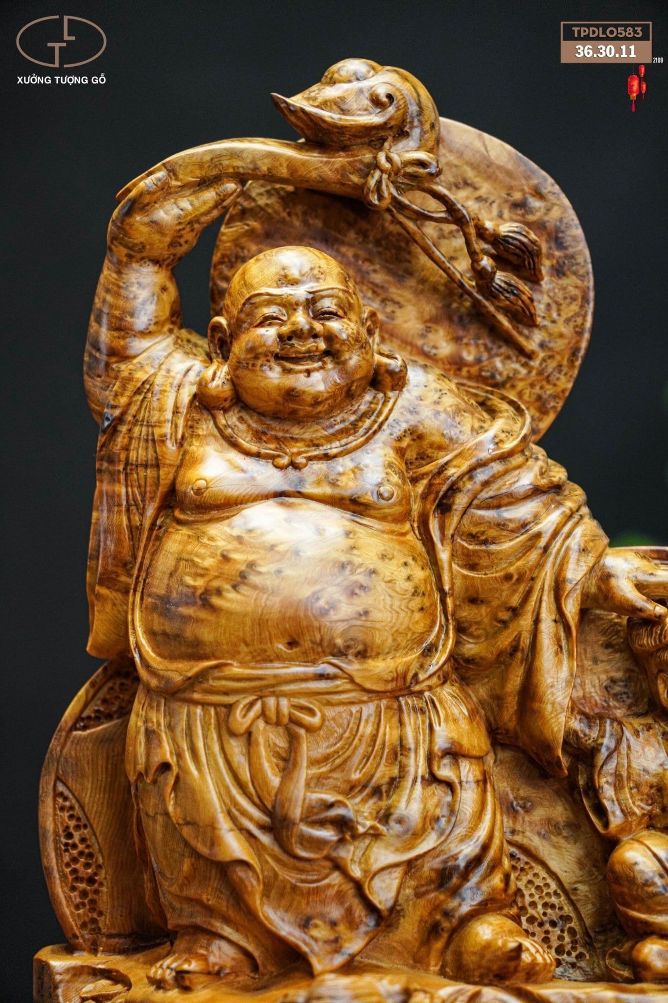 Ngoài vẻ mặt vui tươi, hạnh phúc, mang đến may mắn cho gia chủ. Tượng gỗ Di Lặc ngồi bao tiền mang ý nghĩa về sự sung túc và thịnh vượng, an nhàn và thảnh thơi, khi xung quanh là những đồng xu vàng và trên tay cầm đĩnh tiền lớn.
