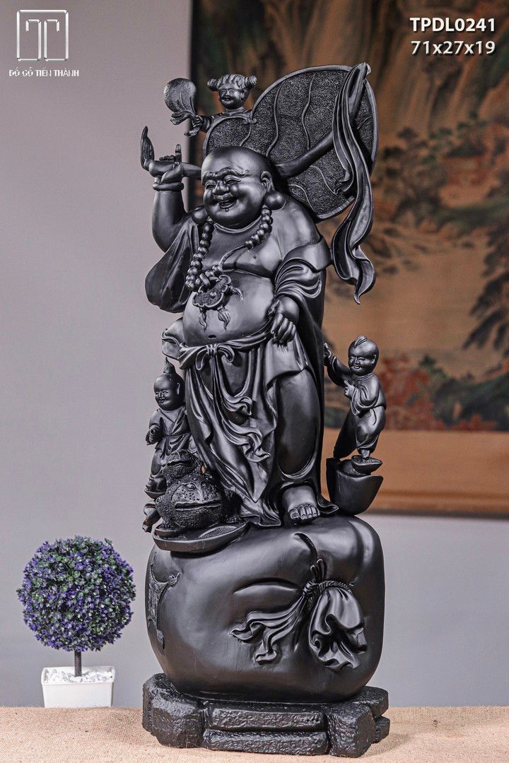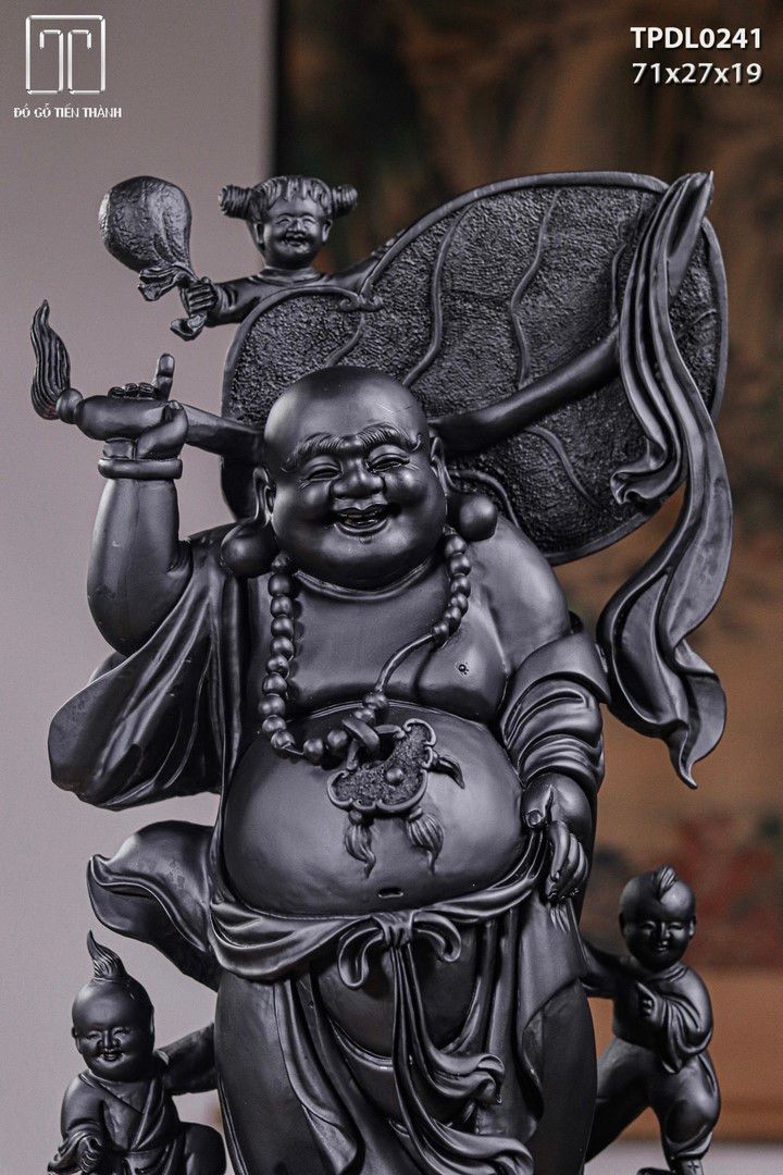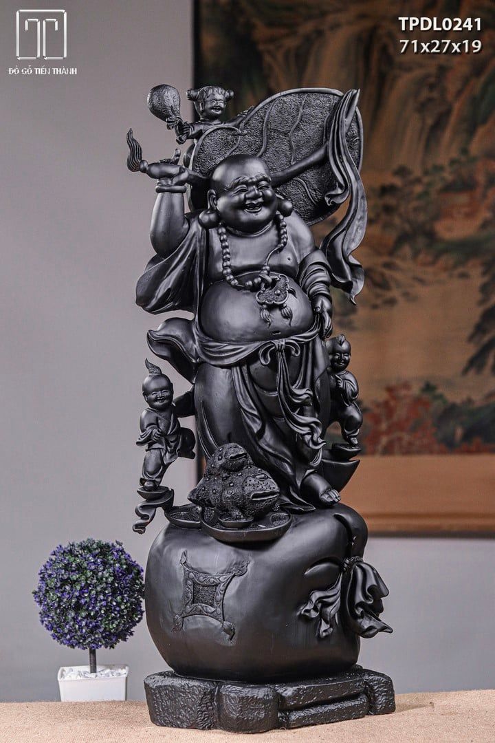 Di Lạc Tam Tiểu Đứng Bao Tiền Gỗ Mun Sừng Khánh Hoà