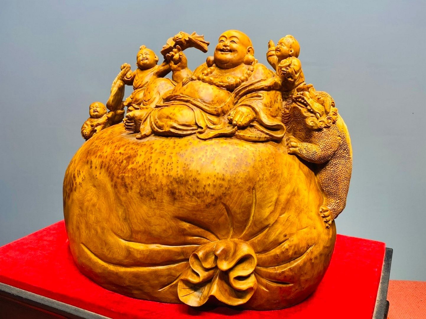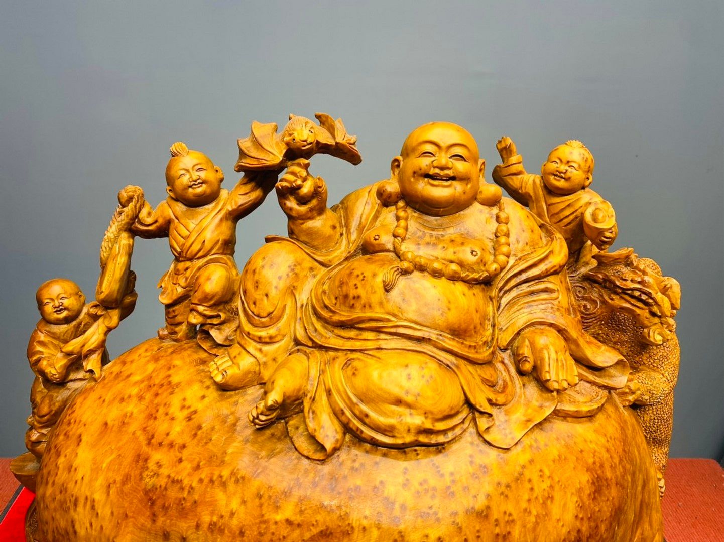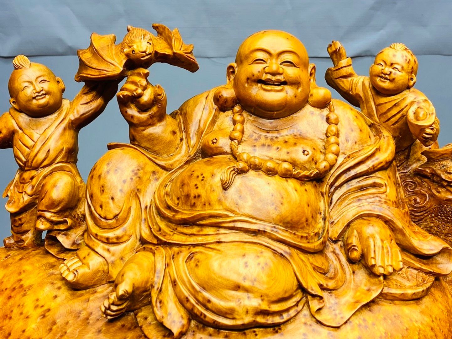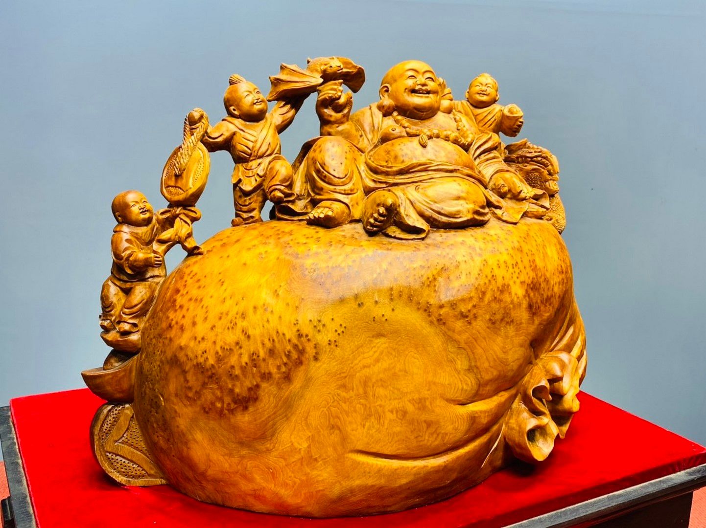 Di Lạc Tam Tiểu Ngồi Bao Tiền Gỗ Nu Ngọc Am