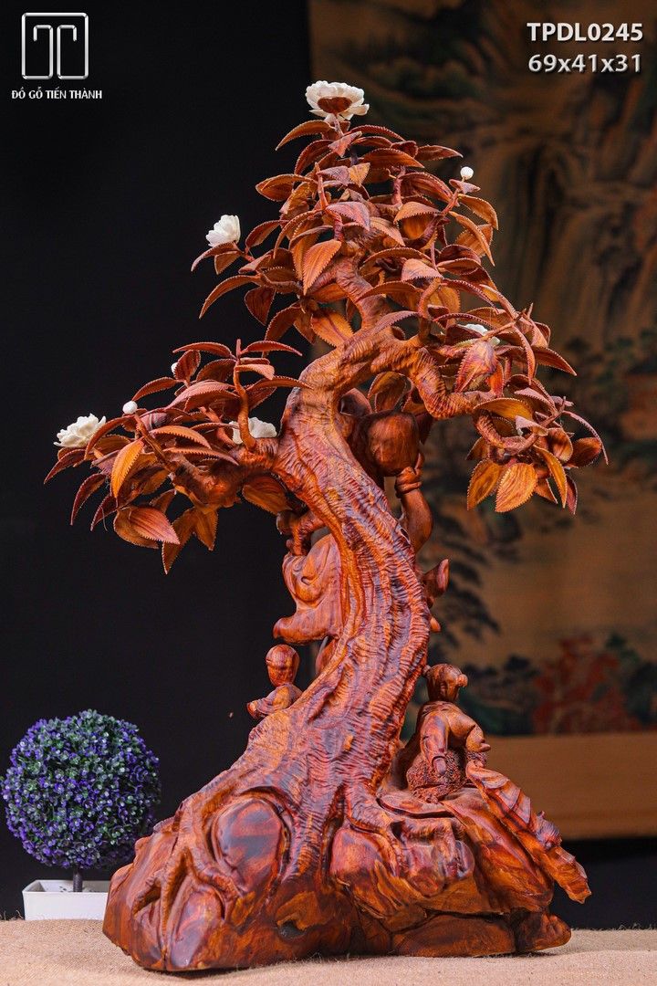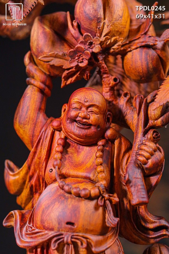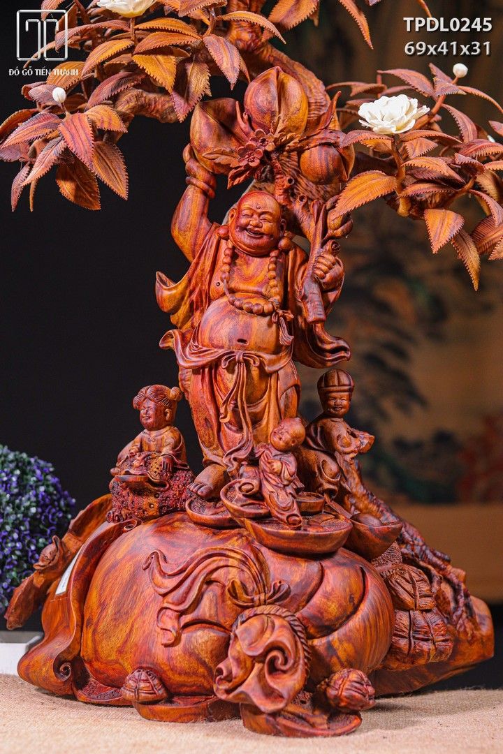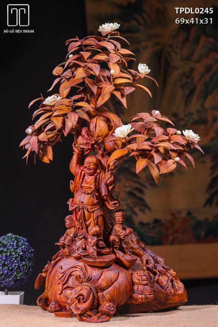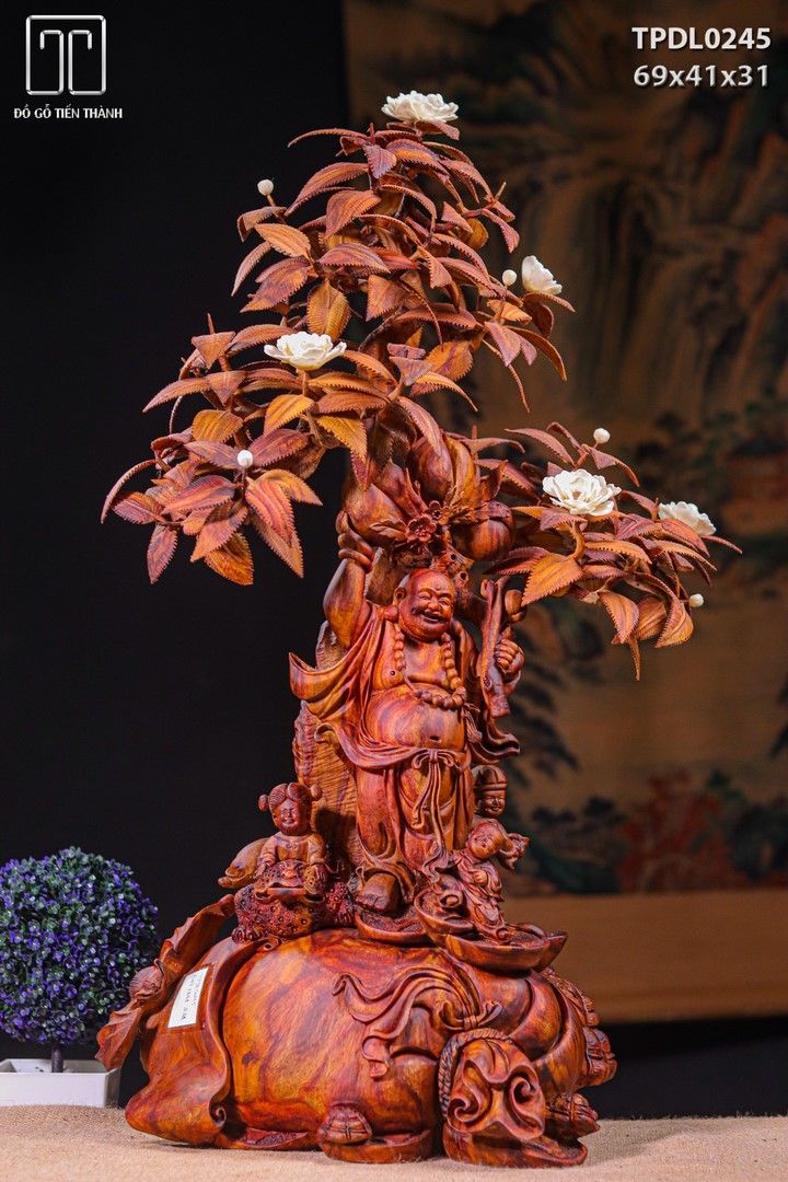 Di Lạc Tam Tiểu Vác Cành Đào Đứng Bao Tiền Cây Hoa Phù Dung Gỗ Sưa