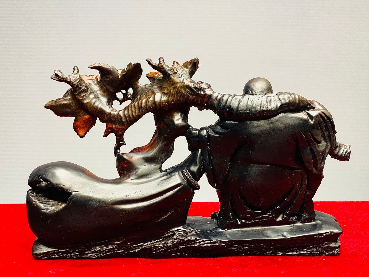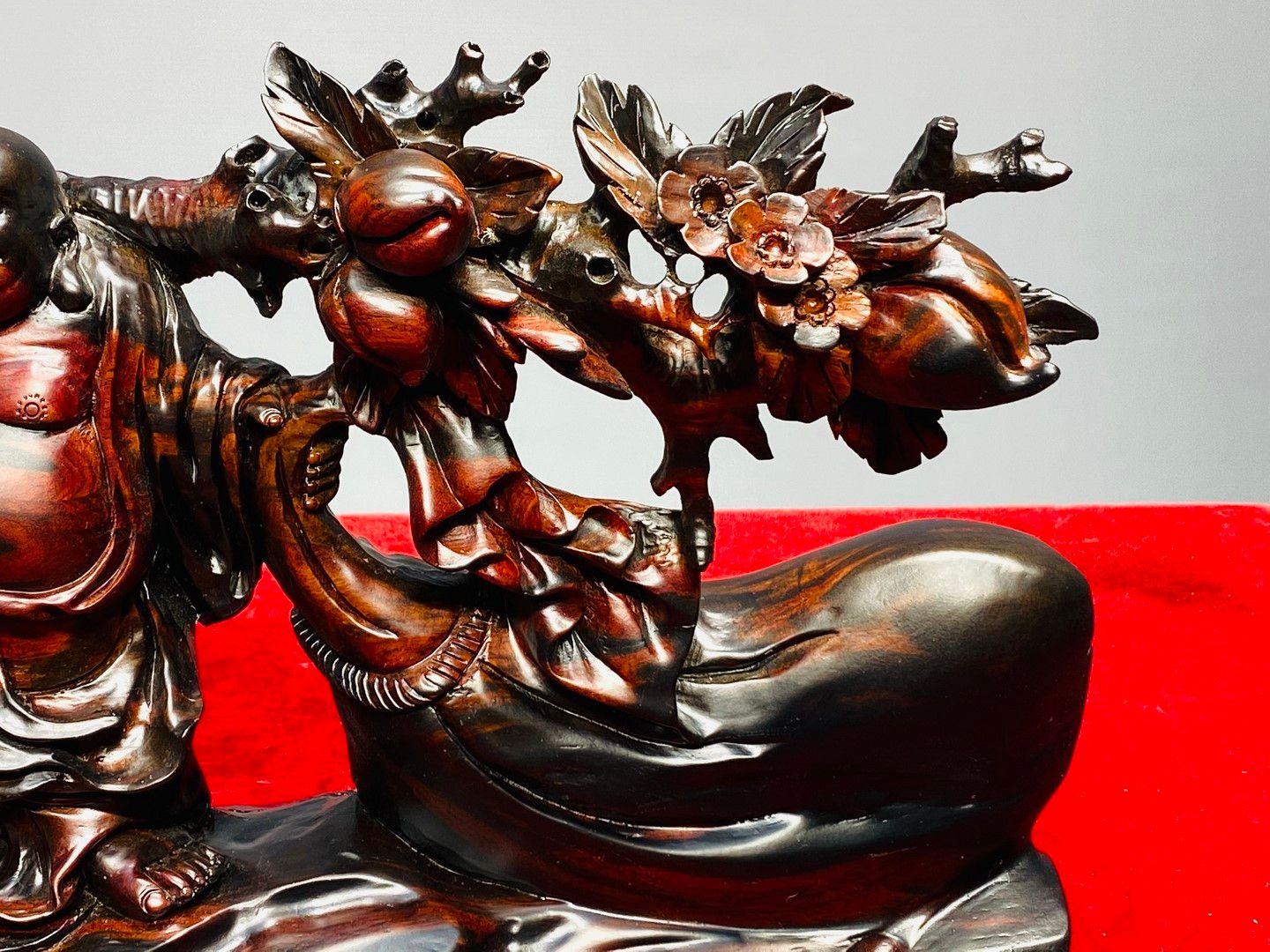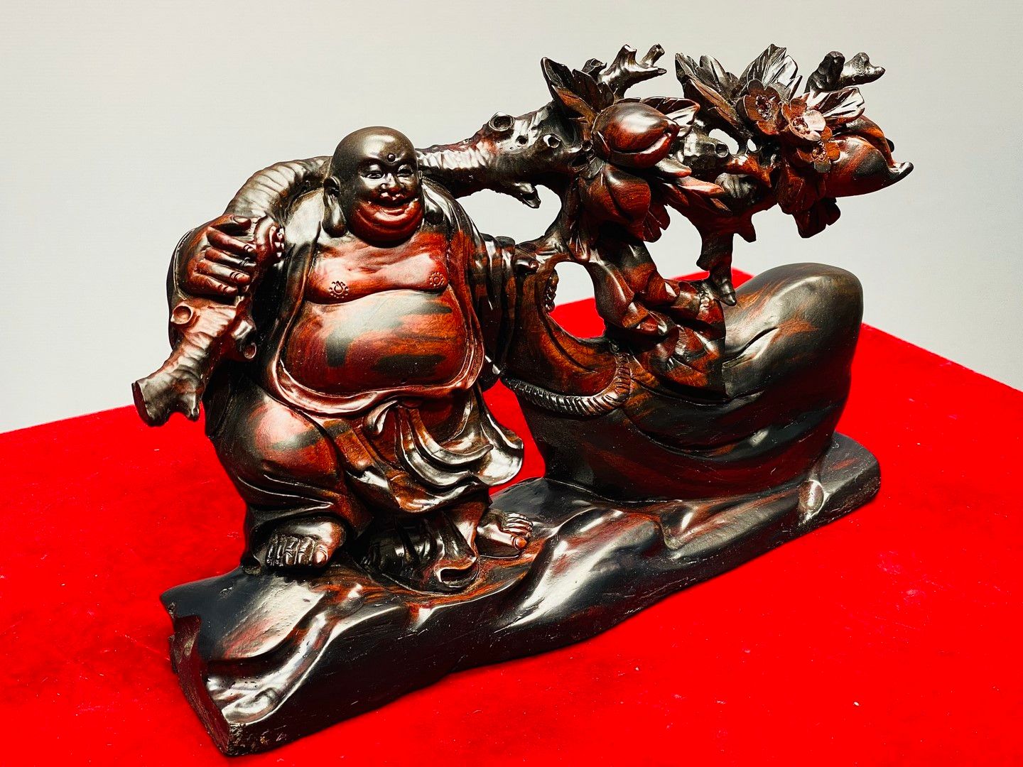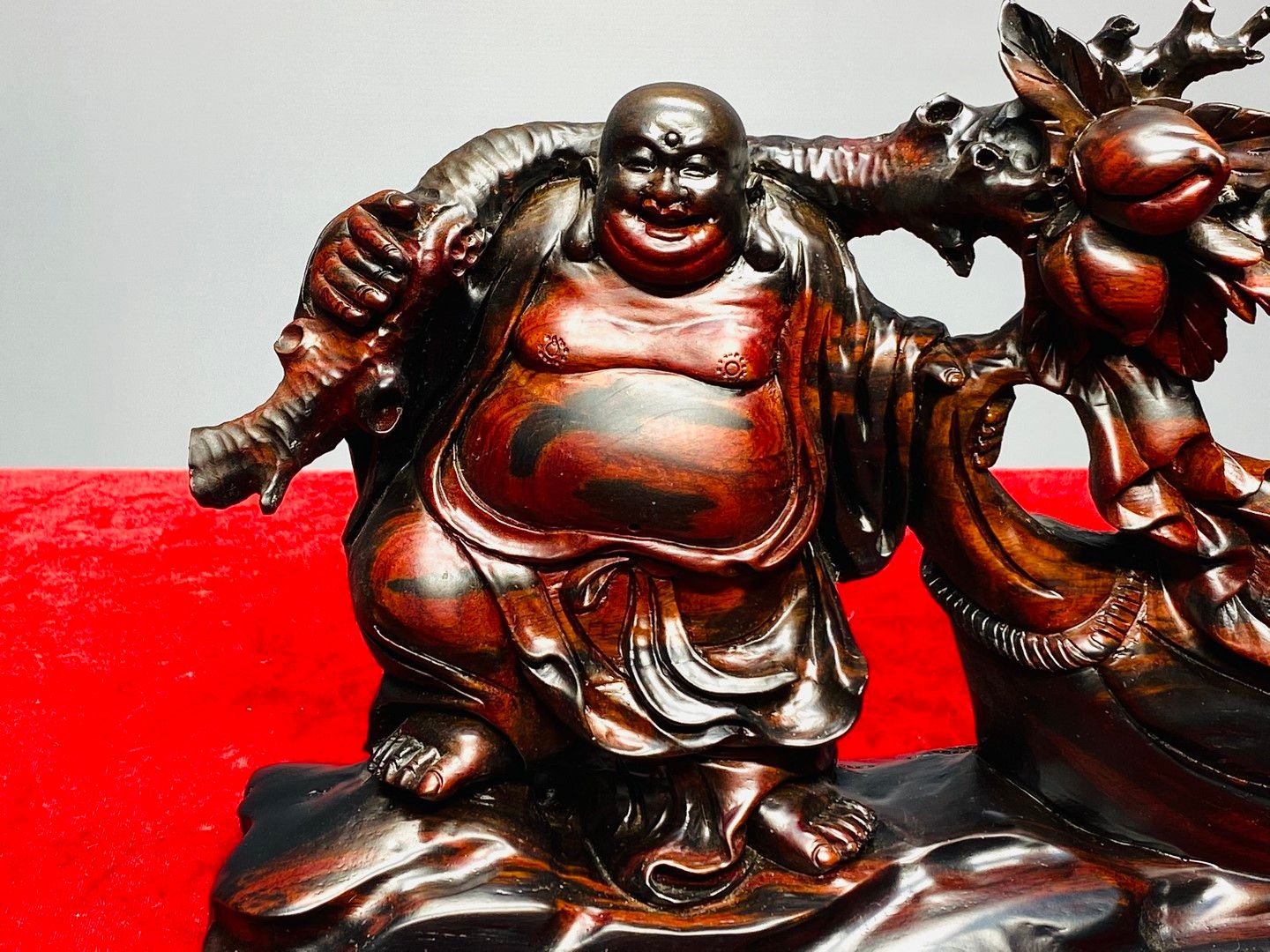 Di Lạc Vác Cành Đào Kéo Bao Tiền Gỗ Trắc