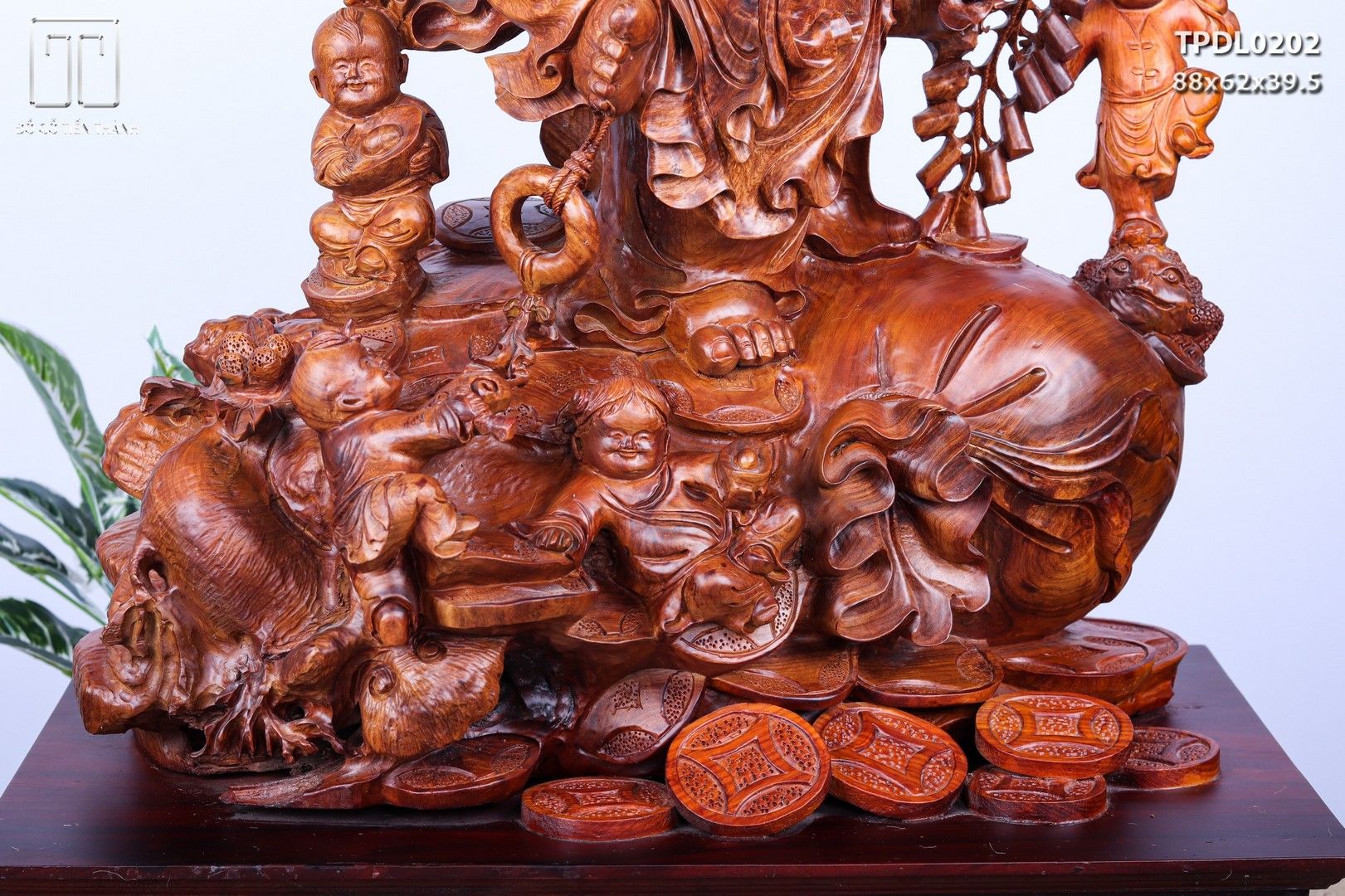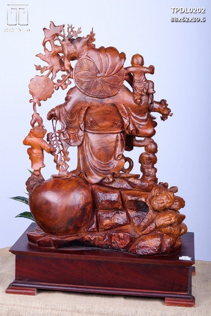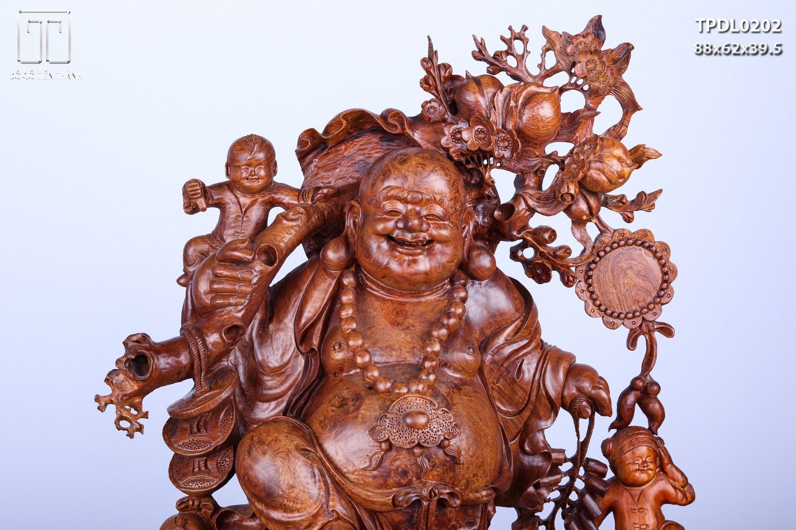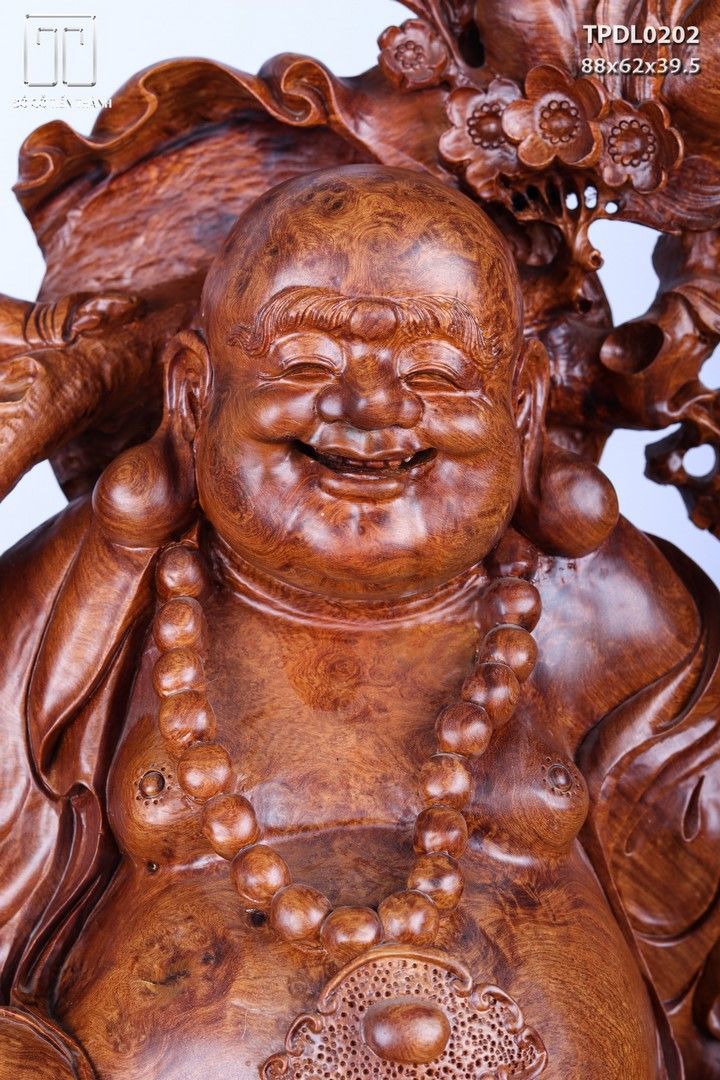 Di Lạc Vác Cành Đào Ngũ Tiểu Đứng Bao Tiền Gỗ Nu Hương