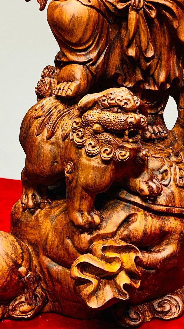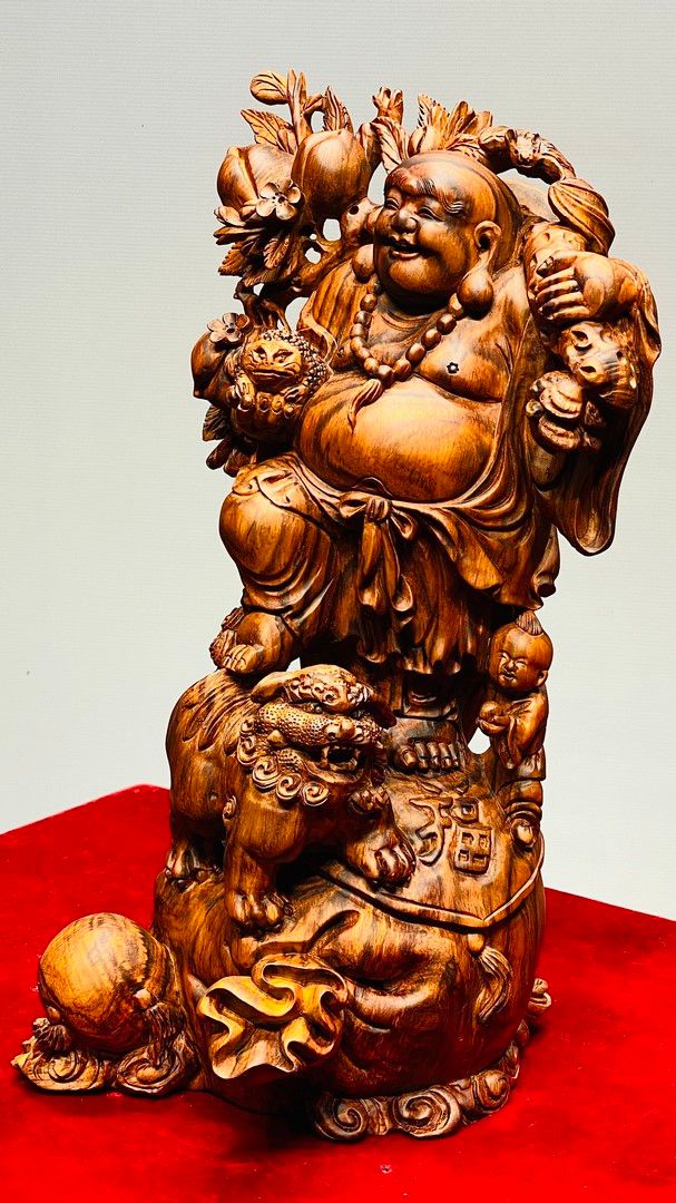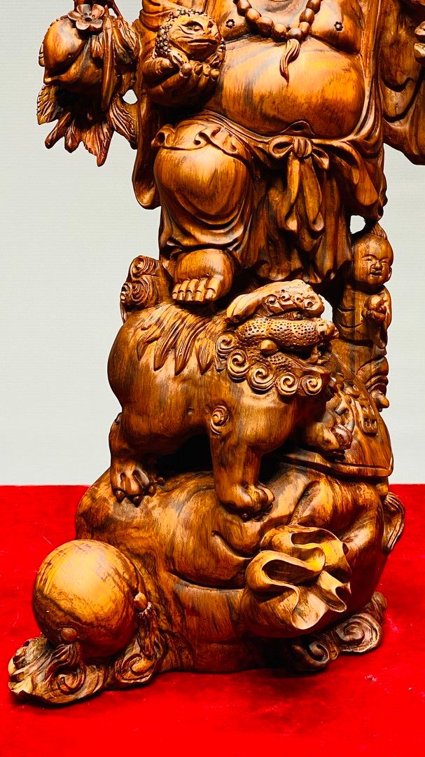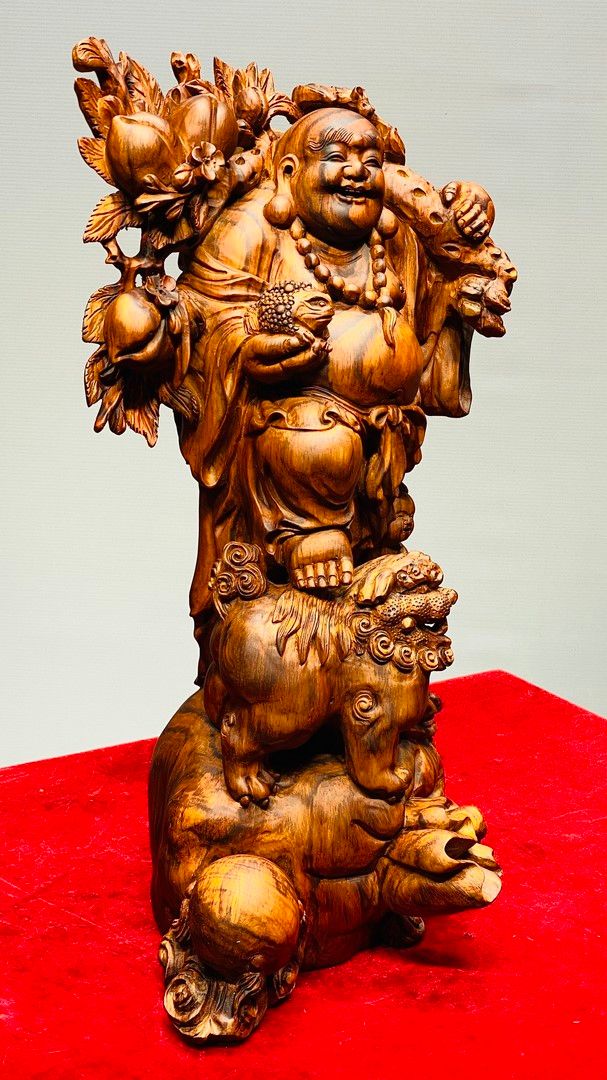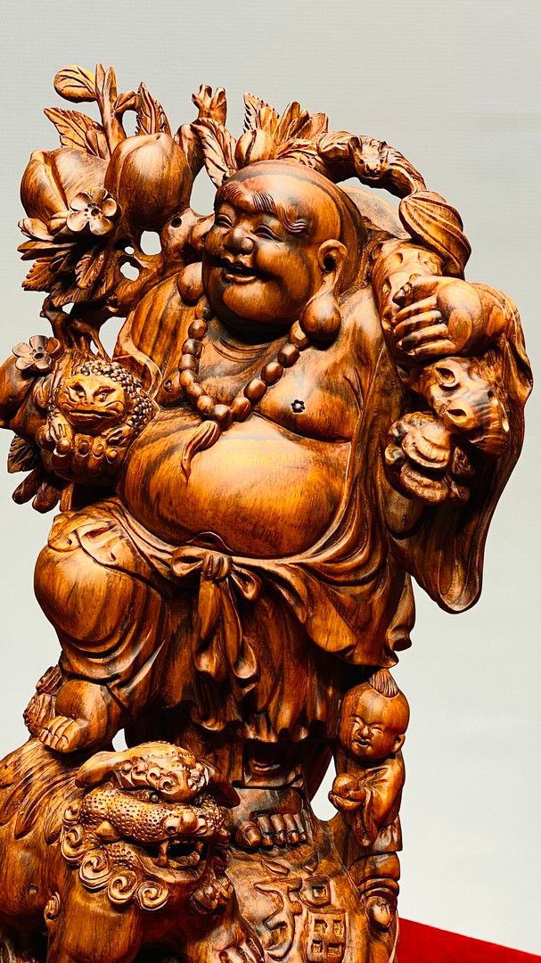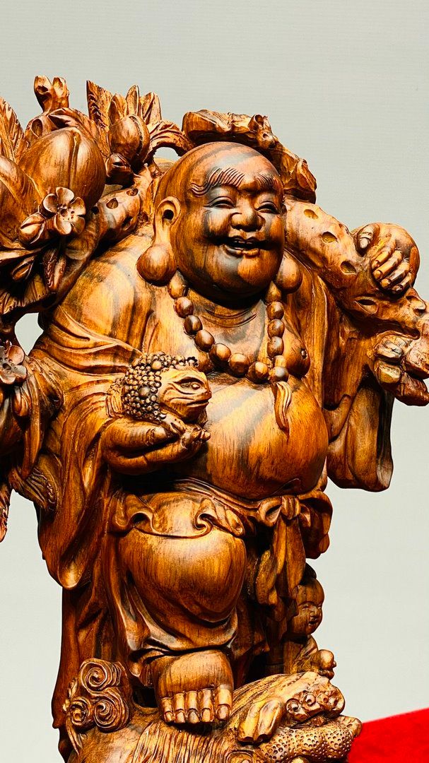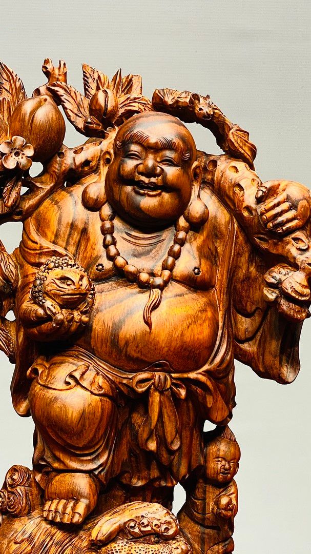 Di Lạc Vác Cành Đào Nhất Tiểu Đứng Bao Tiền Gỗ Sưa