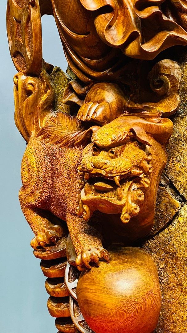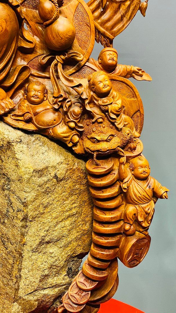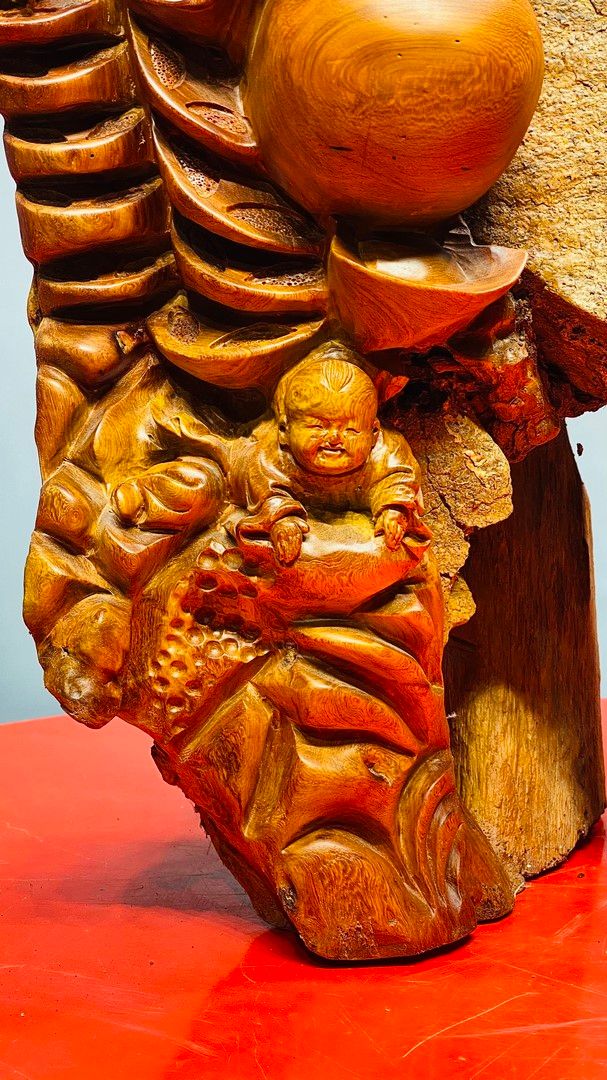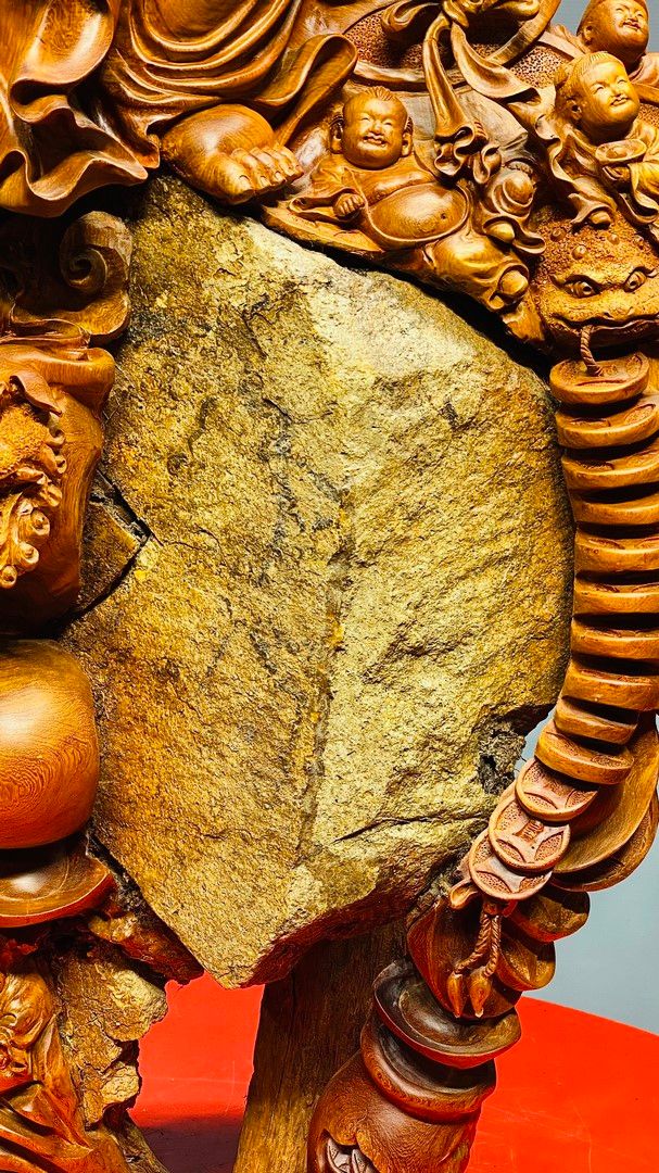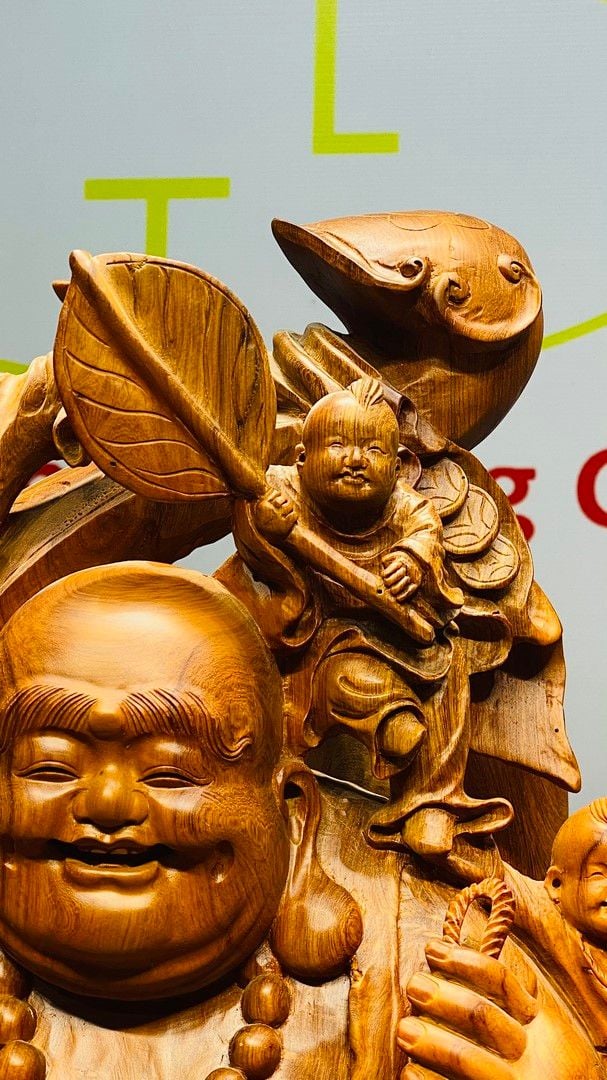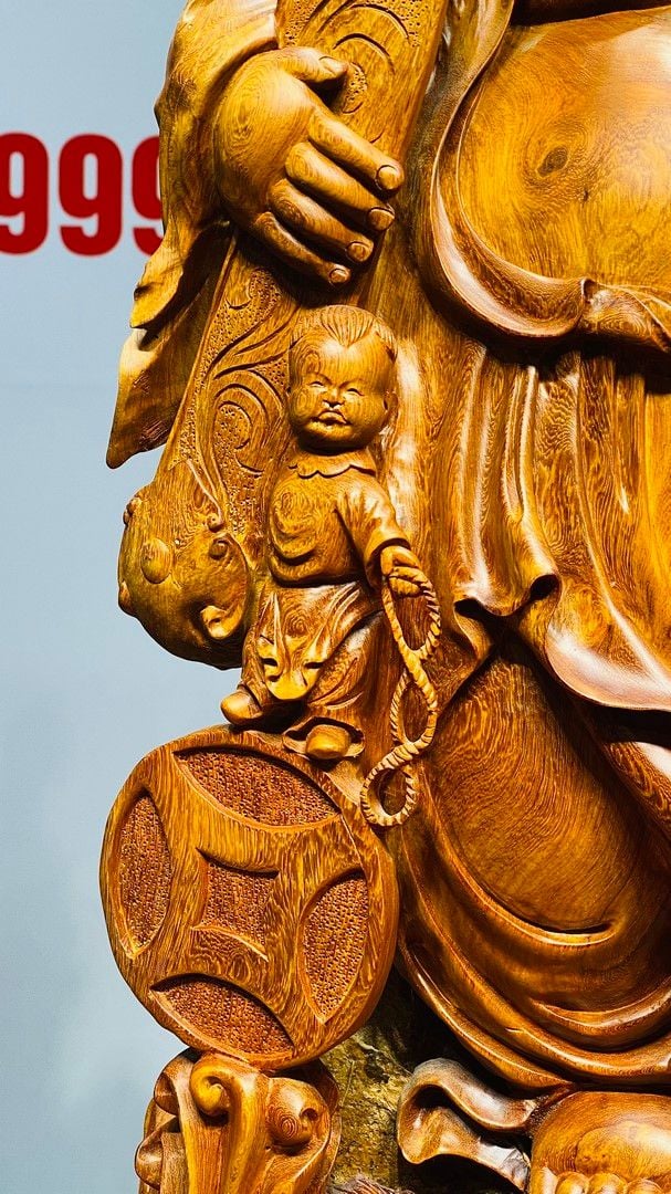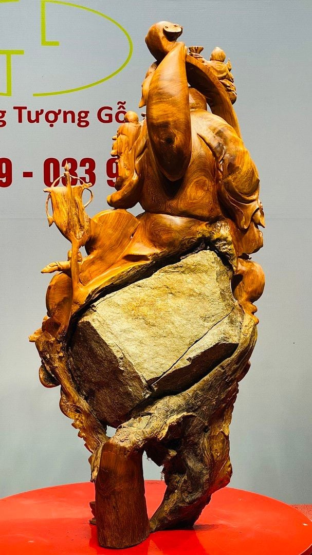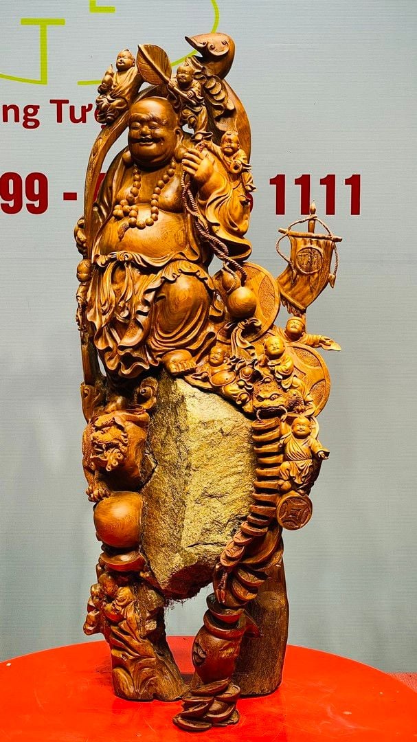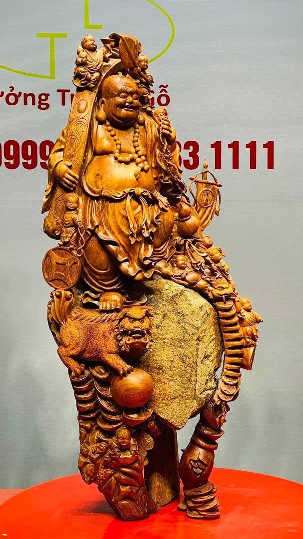 Di Lạc Vác Gậy Như Ý Cửu Tiểu Gỗ Hương Ôm Đá