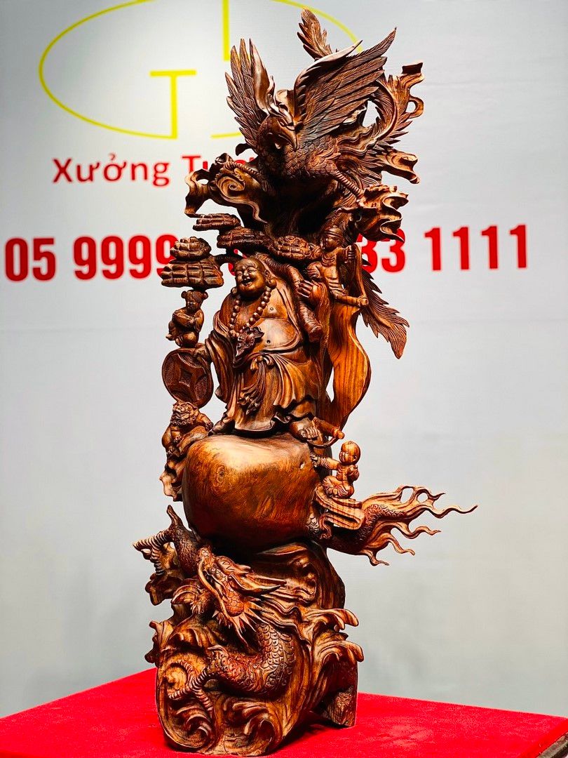 Di Lạc Vác Nấm Linh Chi Tam Tiểu Long Phượng Nghê Gỗ Sưa