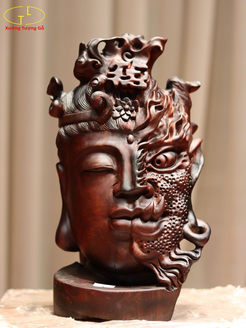 Diện Phật Thiện Ác Gỗ Trắc Đỏ Đen