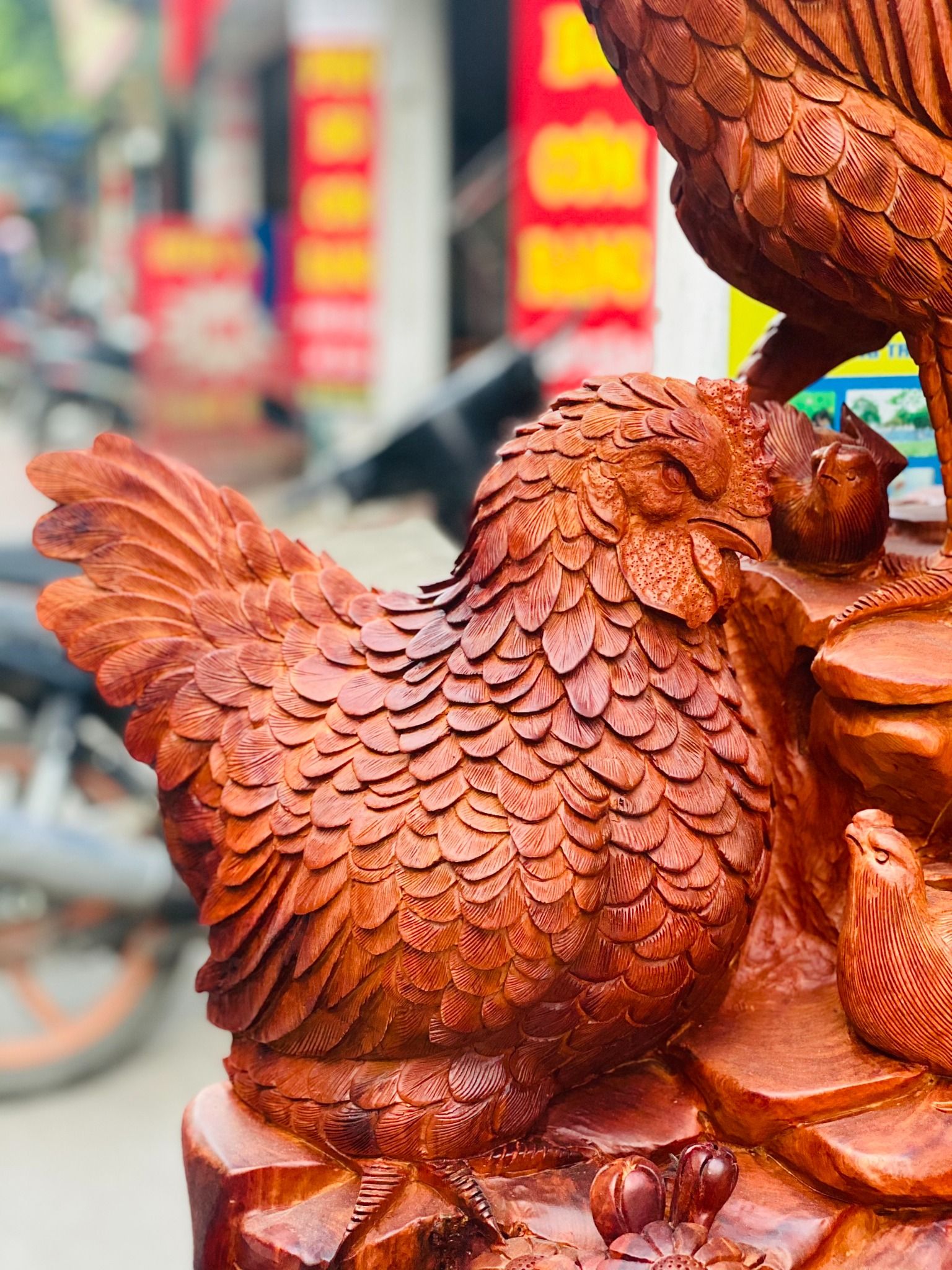 - Để tượng gỗ gia đình gà trong gia đình sẽ giúp gắn kết các thành viên trong gia đinh, vợ chồng son chưa có con cái thì sẽ sớm sinh quý tử, ông bà sẽ sớm được cháu bồng cháu bế.
