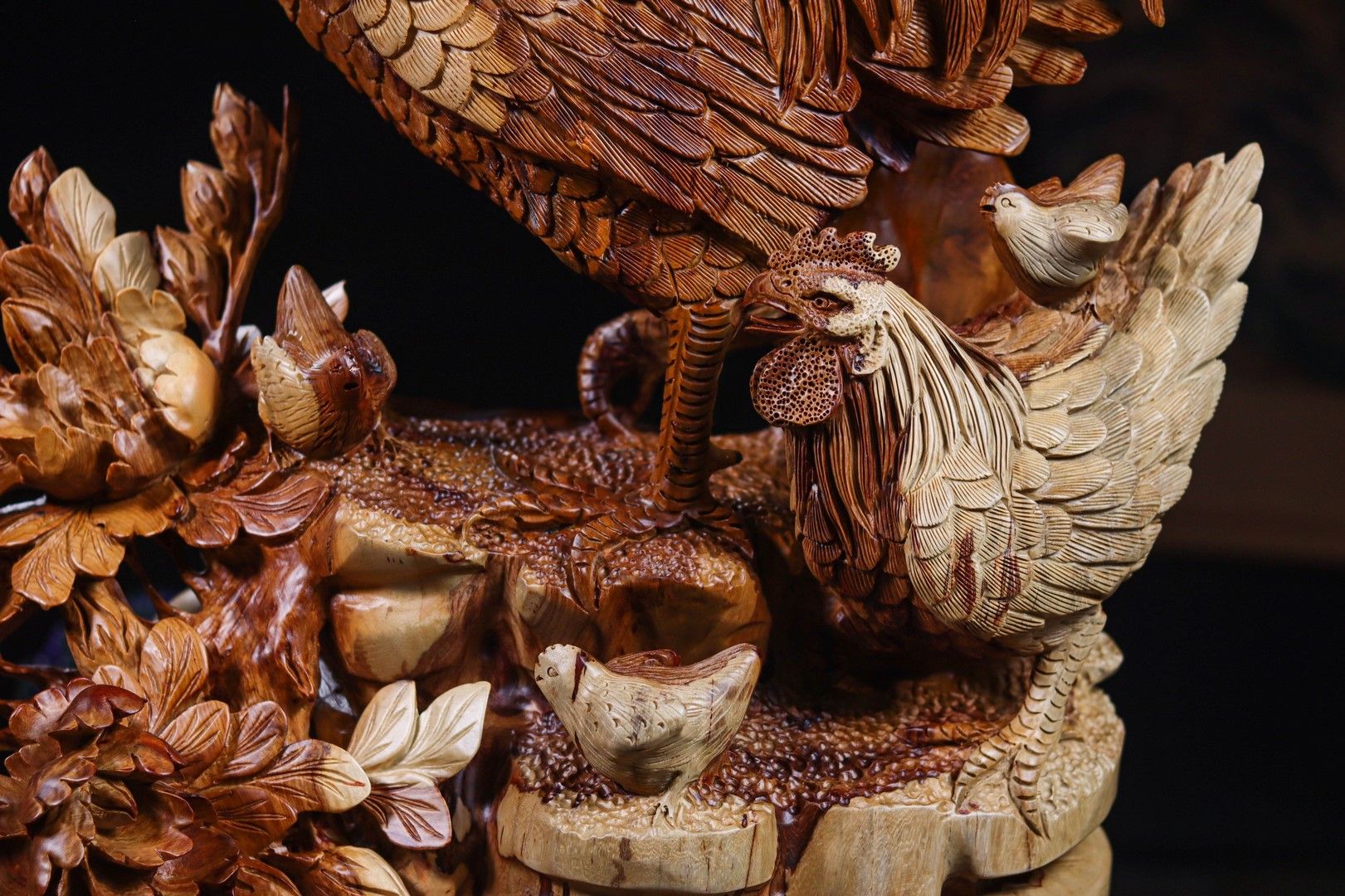 Con gà, đặc biệt là gà trống là sứ giả của bình minh, là cầu nối giữa con cháu với linh hồn ông bà tiên tổ. Chính vì vậy tượng gia đình gà có tác dụng trấn trạch, giúp xua ma đuổi quỷ. Xua tan bóng đêm, đem lại bình minh, ánh sáng và hơi ấm tươi mới.