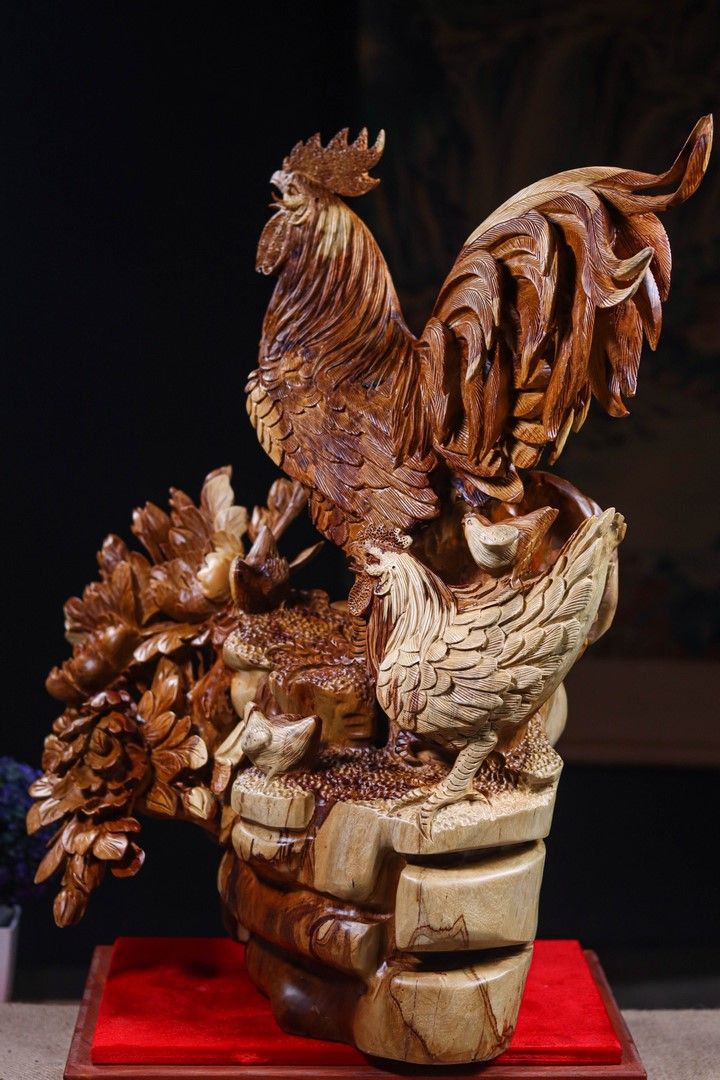 Con gà thuộc hành Kim, vì thế người ta cho rằng tượng gà mang lại nhiều tài lộc và của cải cho gia chủ. Hình ảnh gia đình gà đang quây quần vui vẻ kiếm mồi là hình ảnh ước lệ về sự chăm chỉ lao động, đem lại tiền bạc và của cải.
