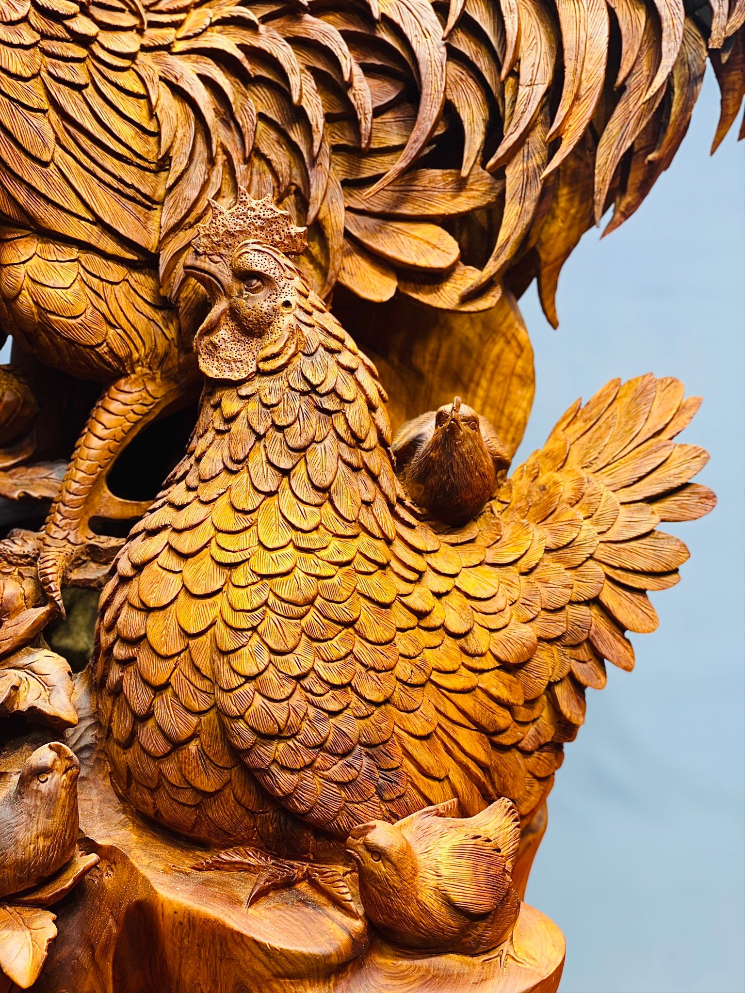 - Để tượng gỗ gia đình gà trong gia đình sẽ giúp gắn kết các thành viên trong gia đinh, vợ chồng son chưa có con cái thì sẽ sớm sinh quý tử, ông bà sẽ sớm được cháu bồng cháu bế.
