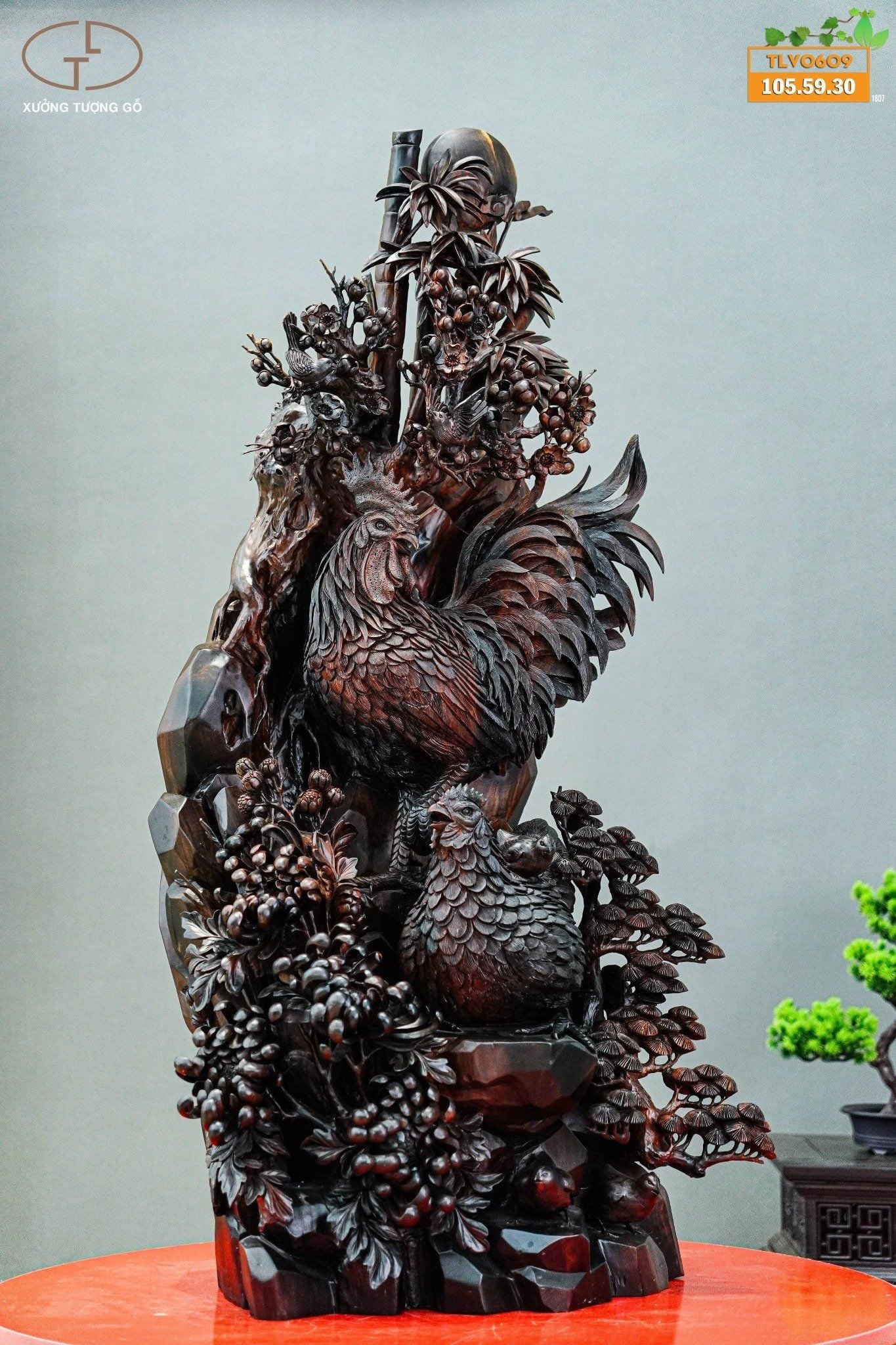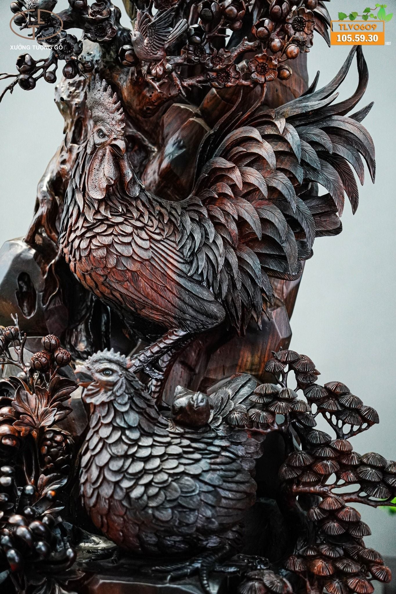 Ý nghĩa tượng gỗ gia đình gà: