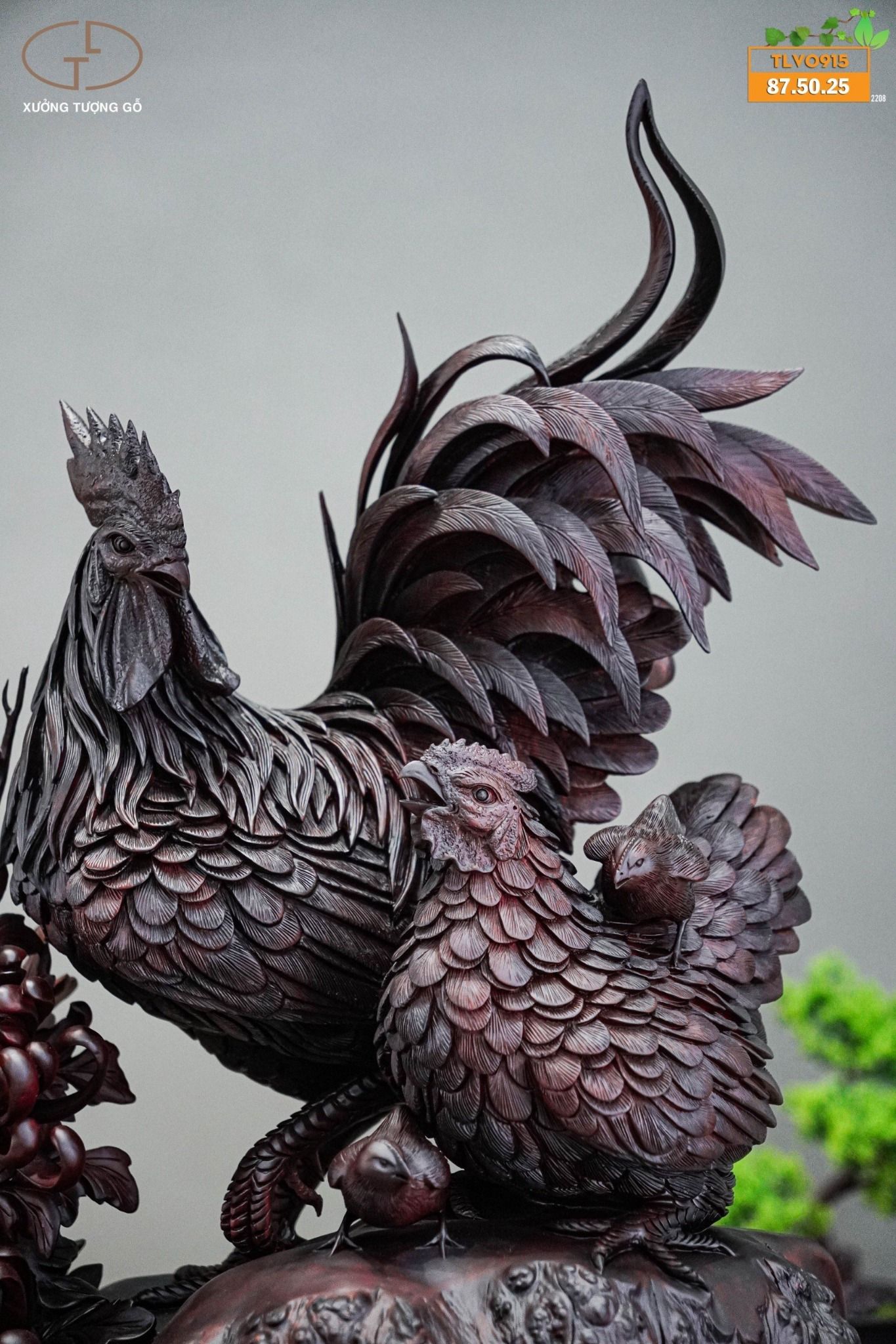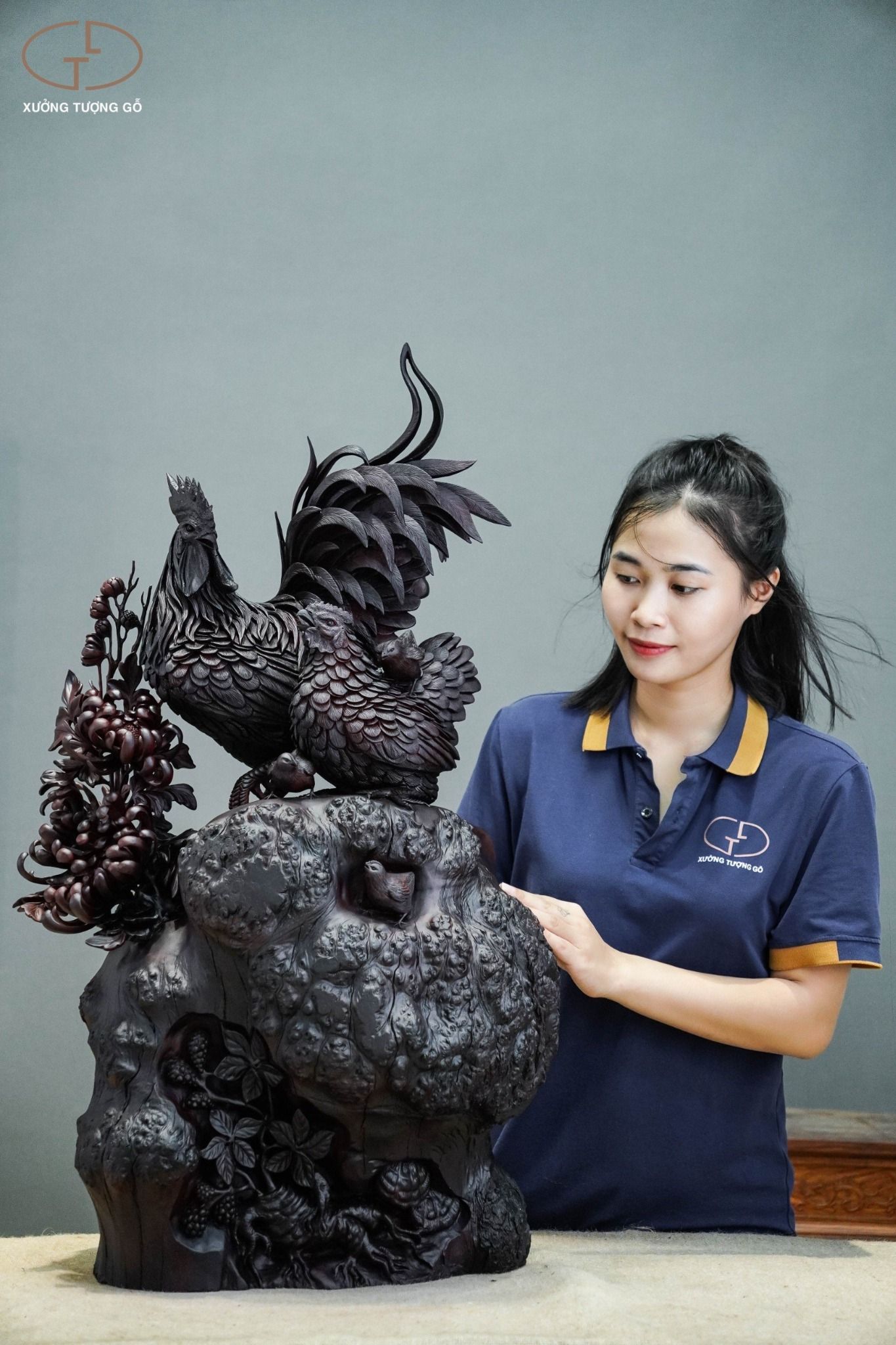 Ý nghĩa tượng gỗ gia đình gà: